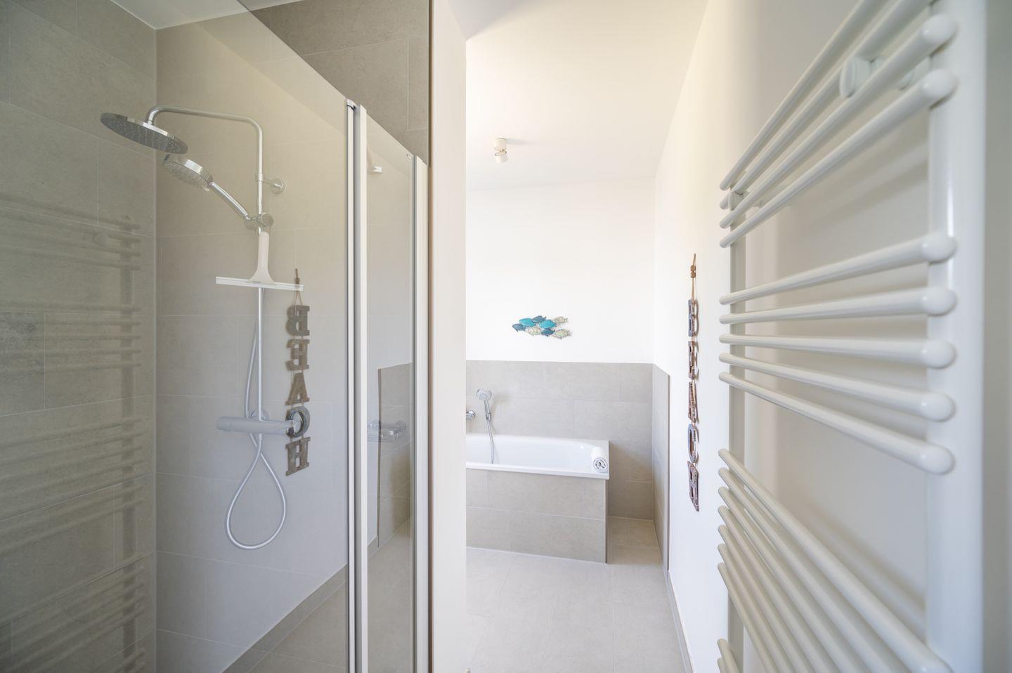 Das moderne Bad mit Dusche und Badewanne ermöglicht einen perfekten Start in den Tag.