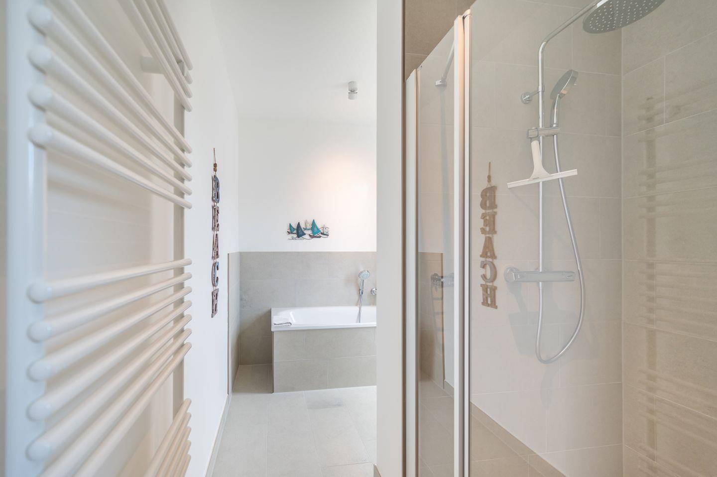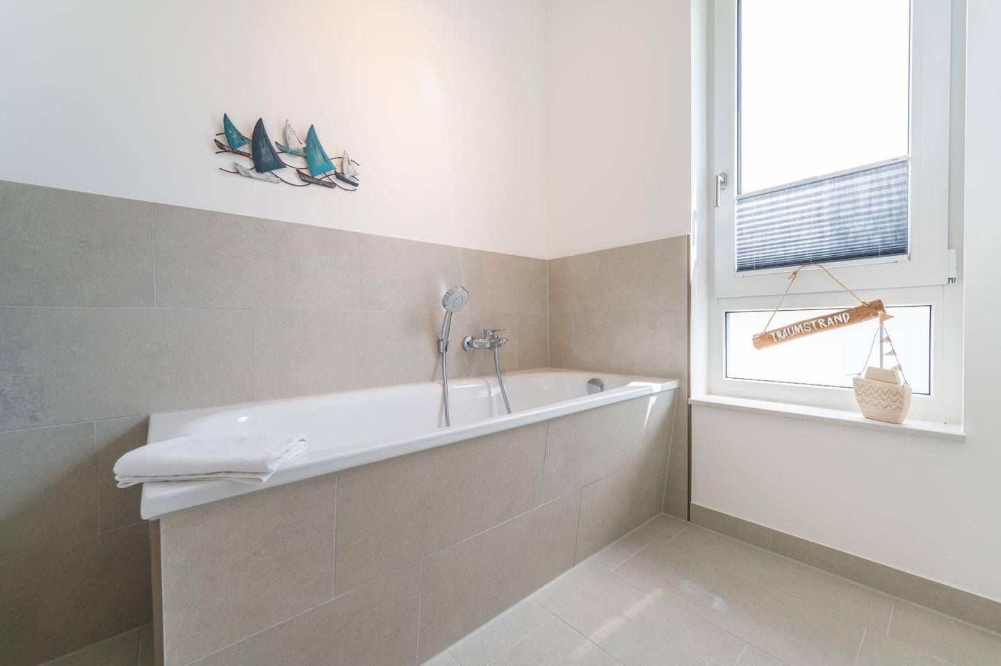 Das moderne Bad mit Dusche und Badewanne ermöglicht einen perfekten Start in den Tag.