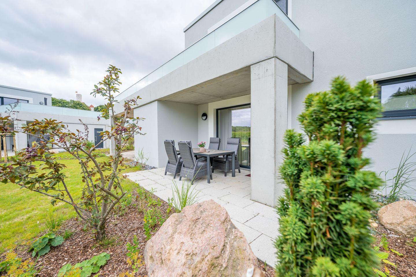 Modernes 2-Zimmer-Apartment mit Terrasse und Blick auf Schloss Ranzow in Lohme.