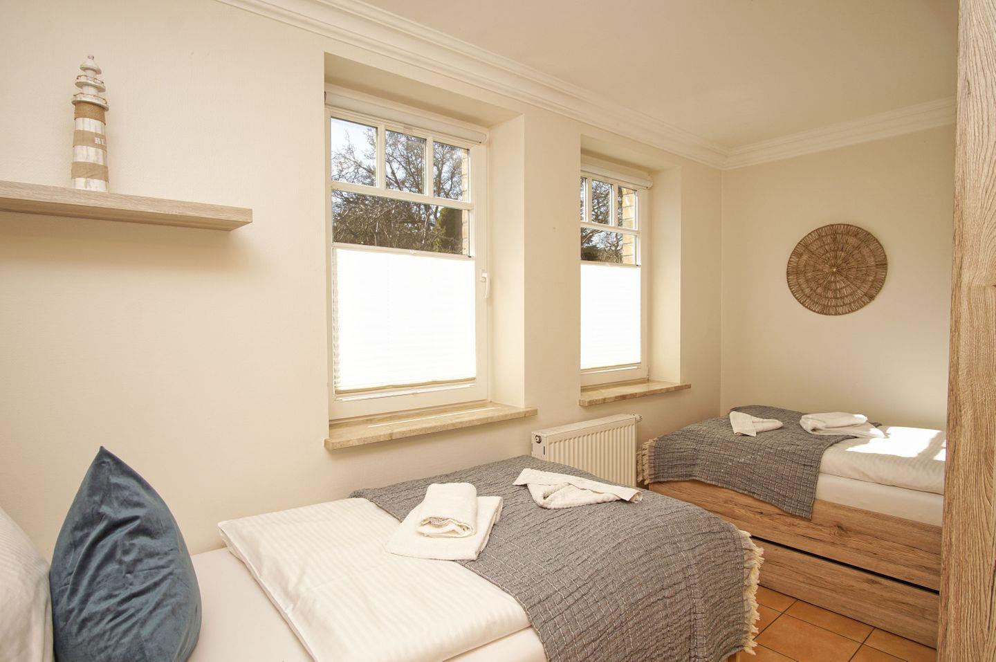SCHLAFEN // ein Schlafzimmer mit bequemem Doppelbettbett, zweites mit zwei Einzelbetten ++