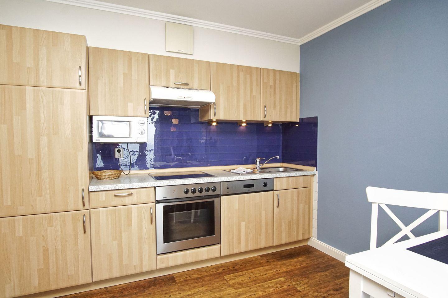 KÜCHE // offen Küche, 4-Platten Ceranherd, Spülmaschine, Kühlschrank mit Gefrierfach, Backofen, Kaffeemaschine, reichlich Besteck, Geschirr und Küchenutensilien ++