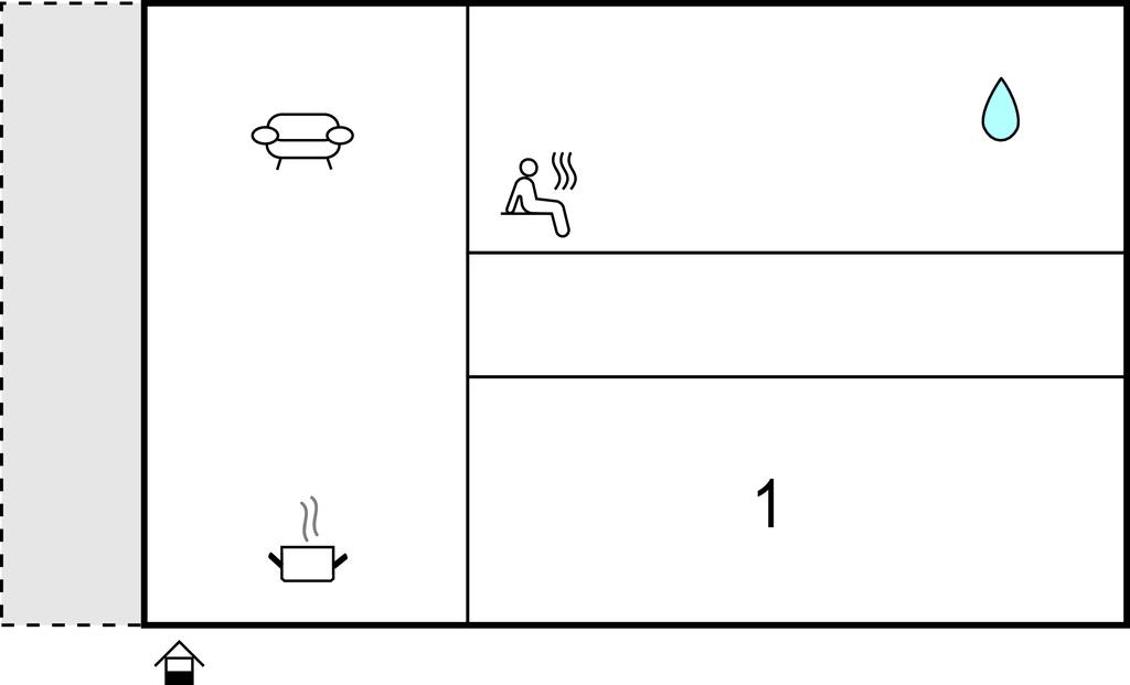 Badezimmer 5m2 (nr. 1) - WC. Warmes und kaltes Wasser. Dusche