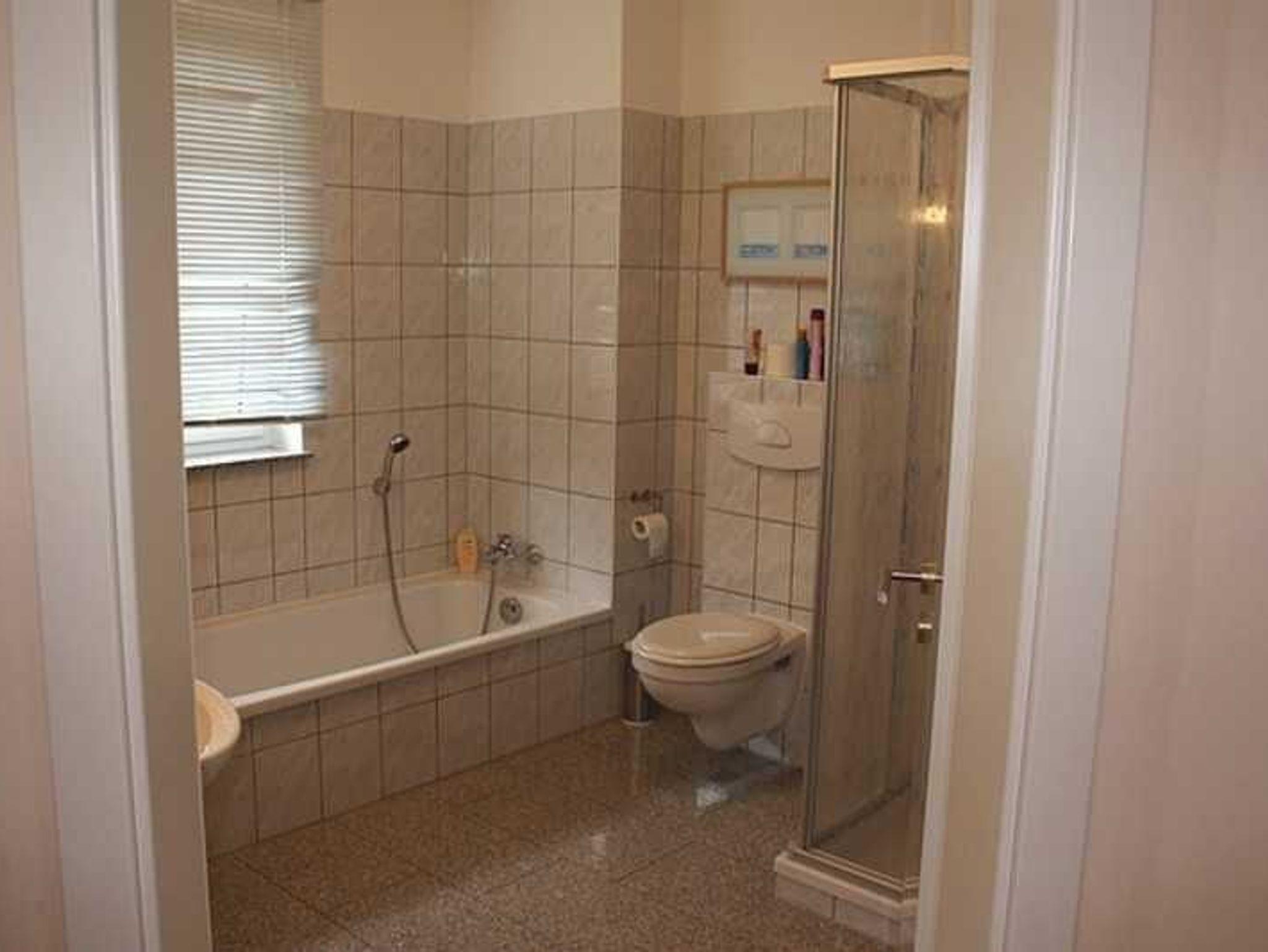 1 komfortables Bad/WC mit Badewanne und Dusche;