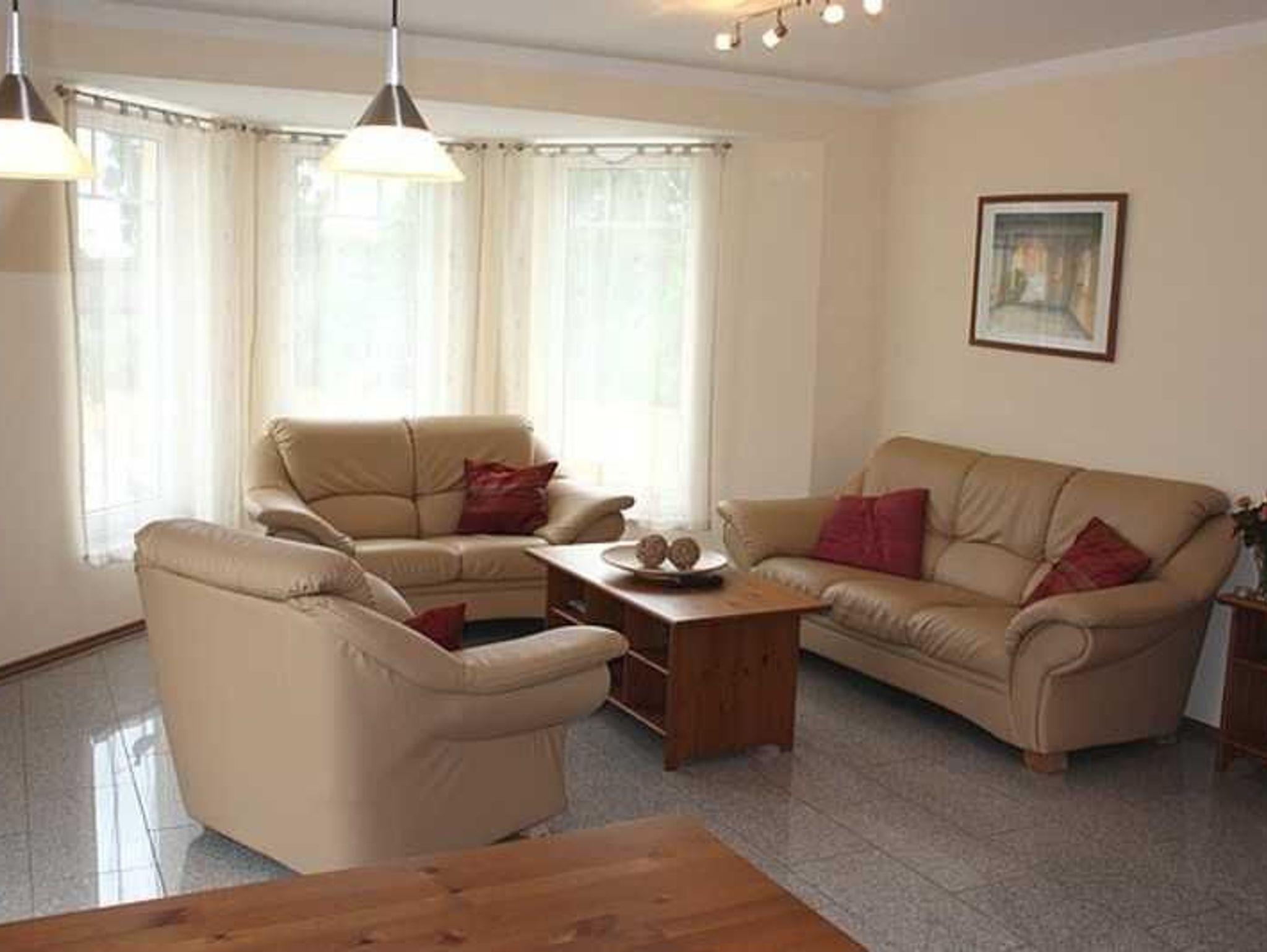 Die Ferienwohnung im Erdgeschoß besitzt 1 großen Wohnraum mit komplett ausgestatteter Küchenzeile, Essplatz, Sitzbereich;