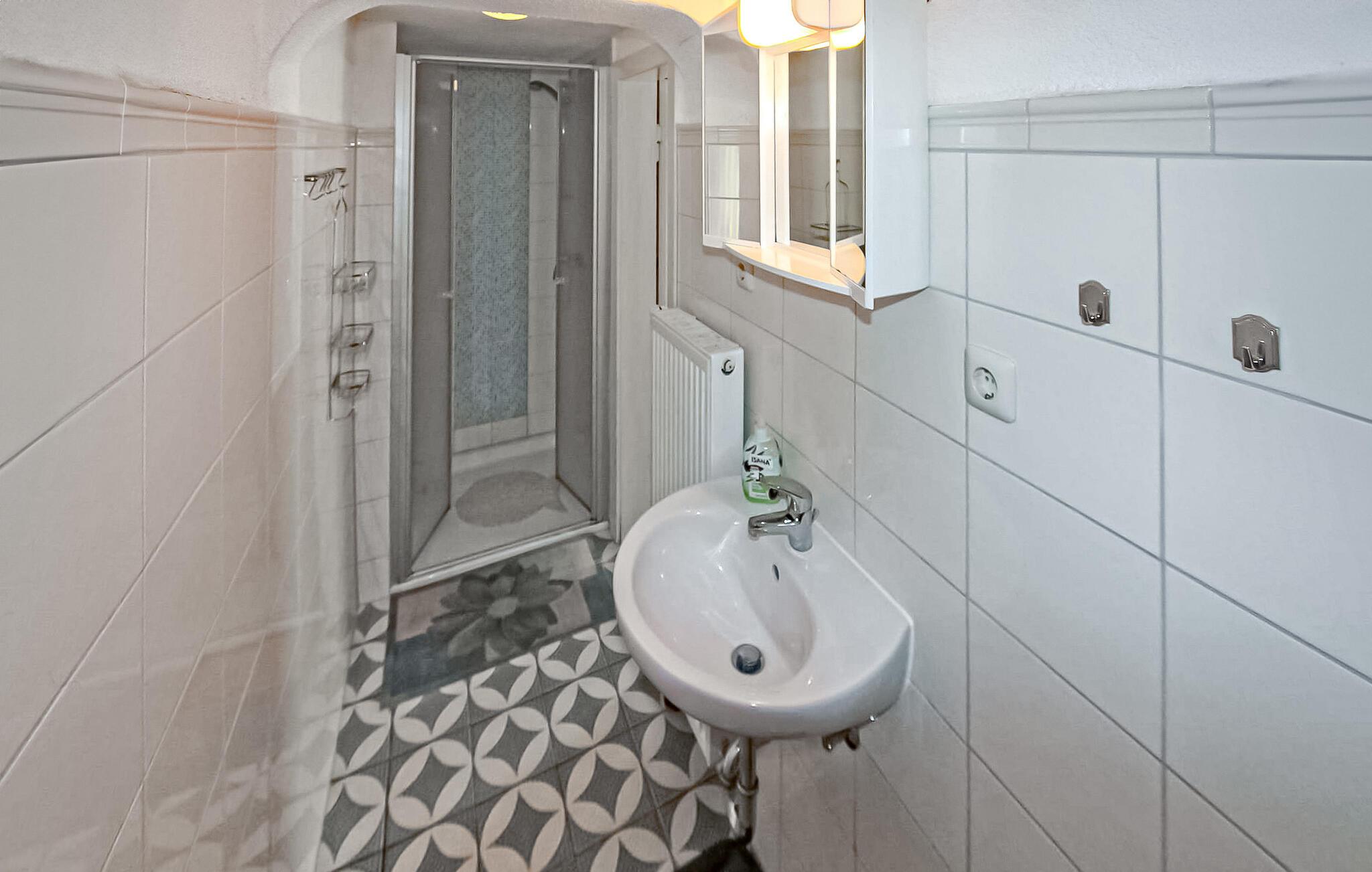 Badezimmer (nr. 1) - WC. Warmes und kaltes Wasser. Dusche