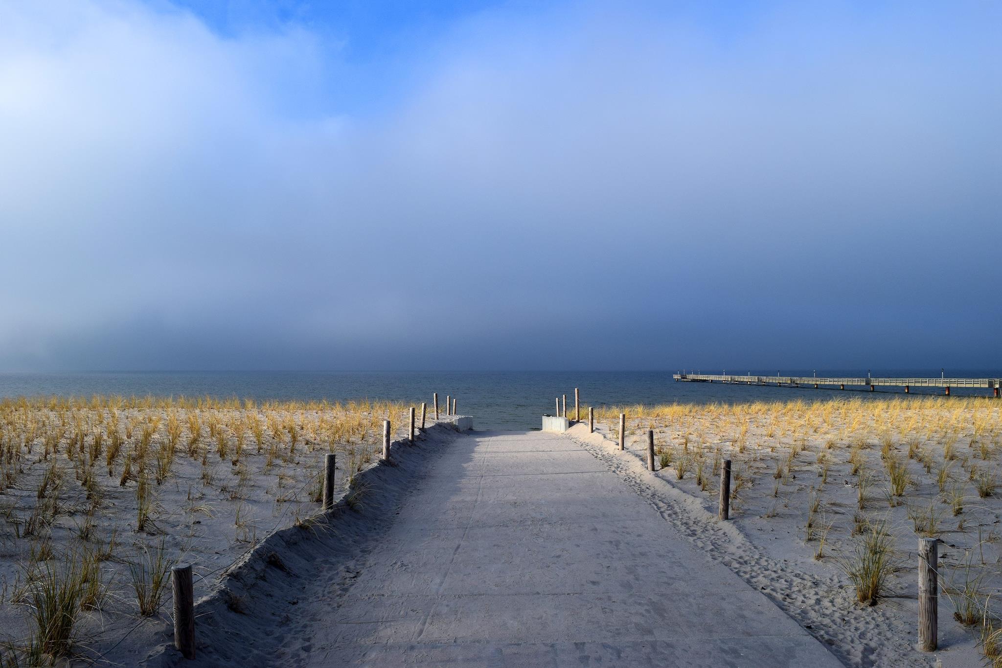 Moderne Ferienwohnung in Lubmin mit großem Balkon und Blick auf die Ostsee und Rügen.
