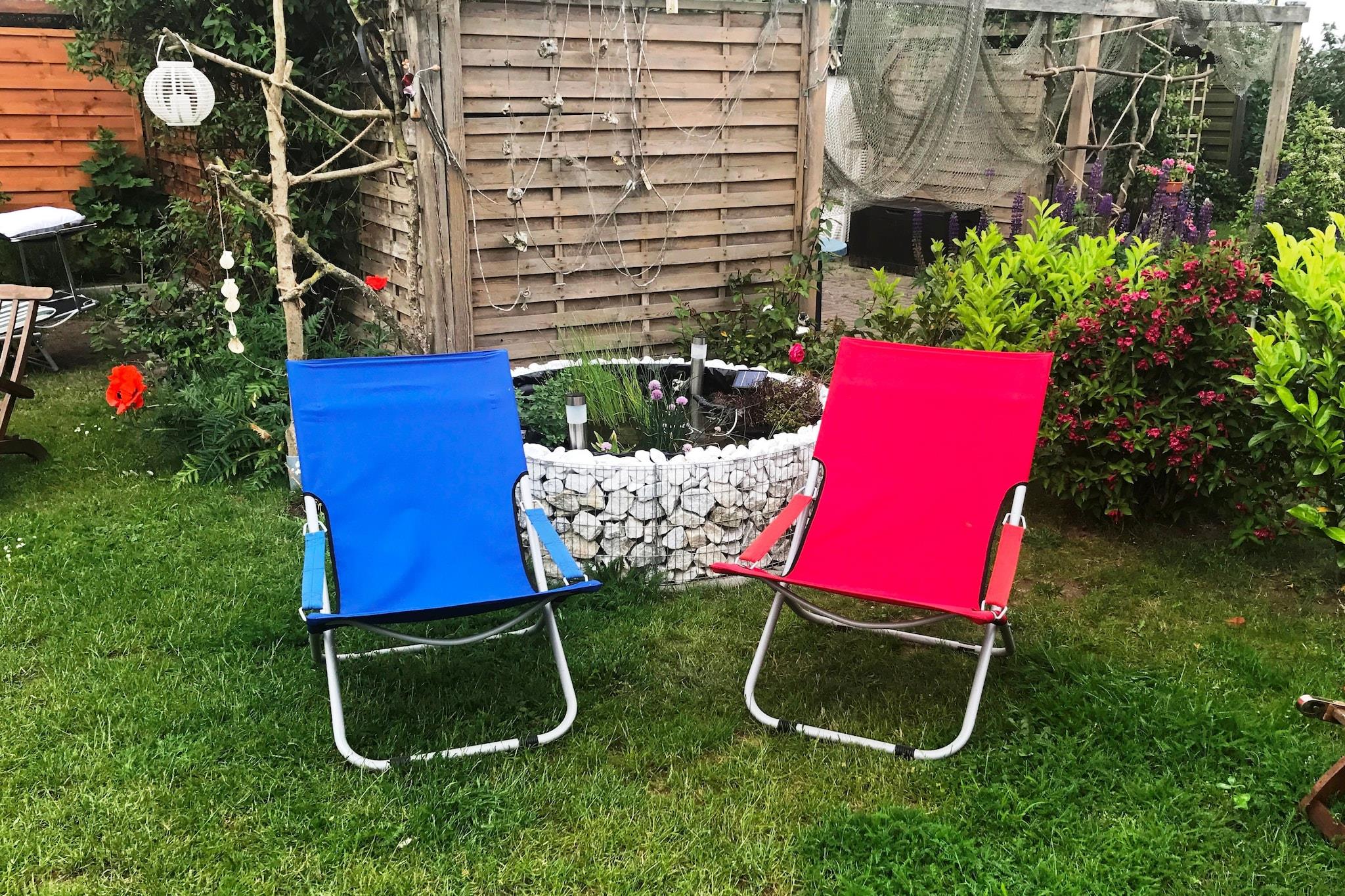 In der 1. Etage: (offene Küche(Esstisch(2 Personen), Kochplatte(2 Kochplatten, Ceranfeld), Wasserkocher, Toaster, Kaffeemaschine, Spülmaschine, Kühlschrank(+ Gefrierfach)), Wohn/Esszimmer(TV(Satellit), DVD-Spieler, CD-Spieler), Schlafzimmer(Schlafcouch 1 Pers.(90 x 200 cm), Doppelbett(Boxspring, 180 x 200 cm)), Badezimmer(Dusche, Waschbecken, Toilette), Flur, Balkon, Heizung) Garten, Gartenmöbel, Grill, Parkplatz, Parkplatz, Sonnenschirm, Handtücher/Bettwäsche (extra Gebühr)