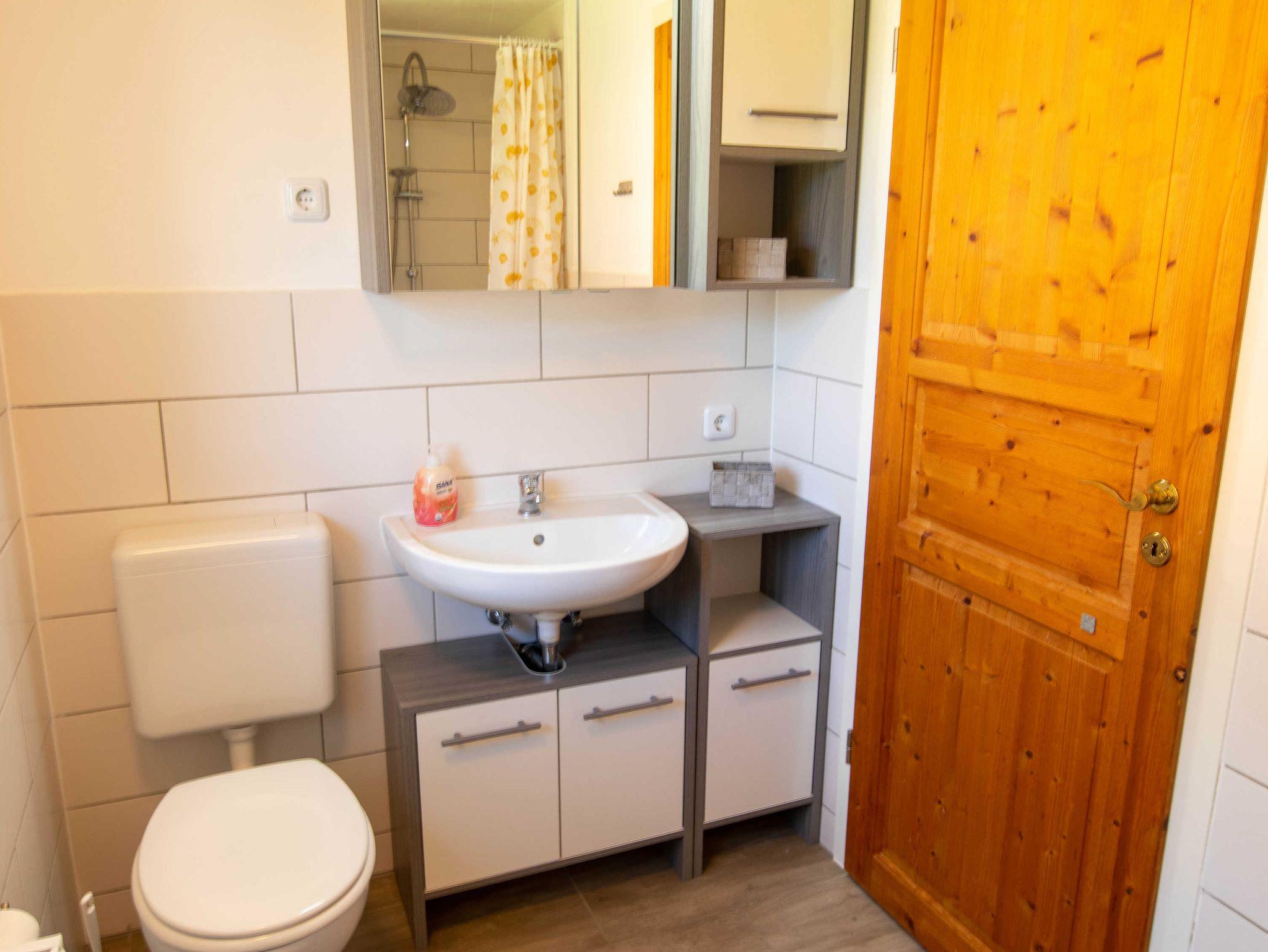 Die Wohnung verfügt über ein Badezimmer mit Dusche sowie ein zusätzliches, sparates WC und ein Waschtrockner.