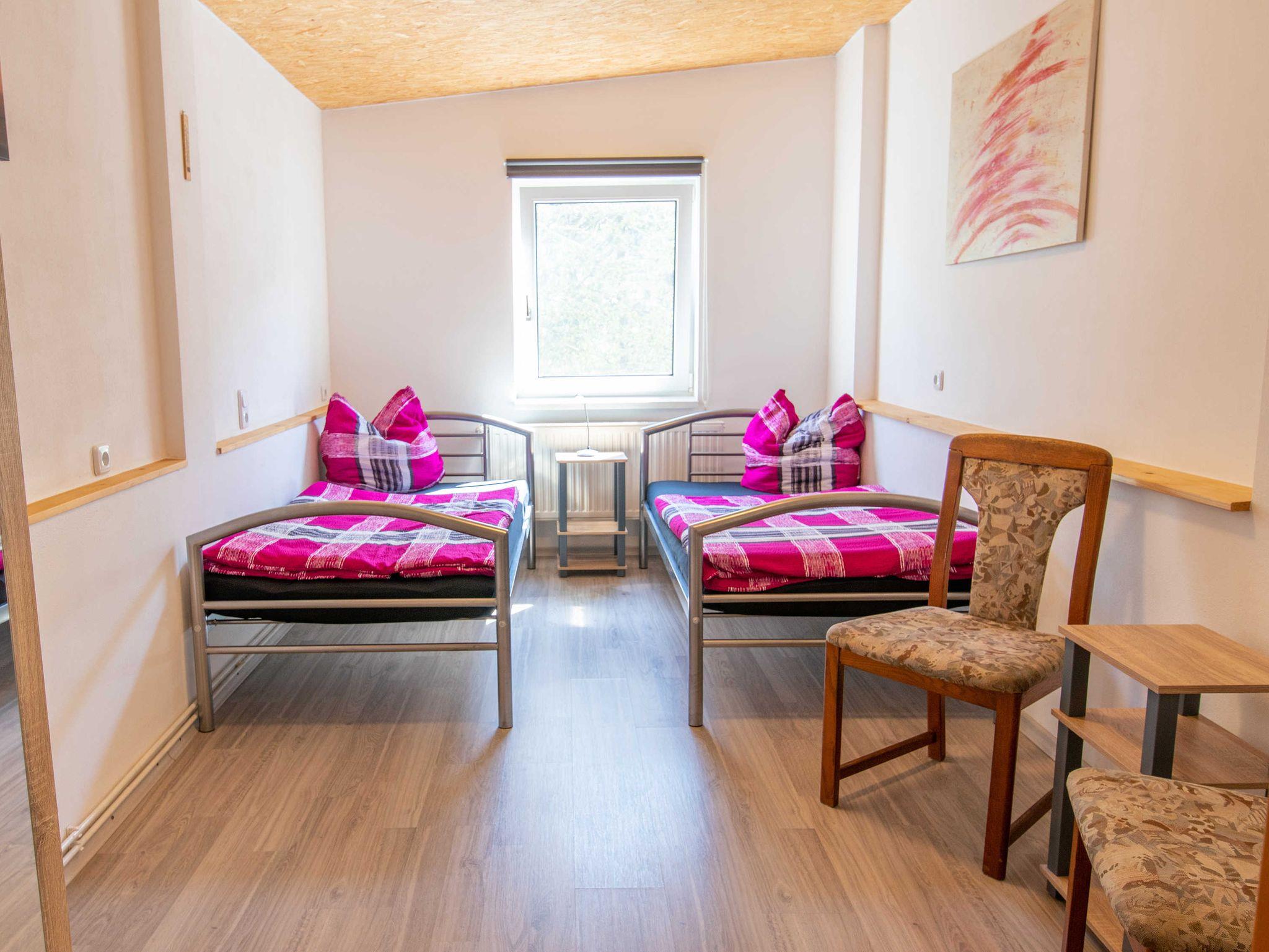 Die Wohnung ist über einen ebenerdigen Eingang zu erreichen und verfügt über drei Zimmer. Die beiden Schlafzimmer sind mit je zwei Einzelbetten (90x200cm) ausgestattet, in einem Schlafzimmer sind diese zu einem Doppelbett zusammengestellt. Der dritte Raum ist eine Wohnküche mit Kaffeemaschine, Mikrowelle, Wasserkocher, Kühlschrank, Herd mit Backofen. Ein Esstisch bietet Platz für vier Personen und in den angrenzenden Sitzgruppe mit TV kann man die Abende ausklingen lassen.