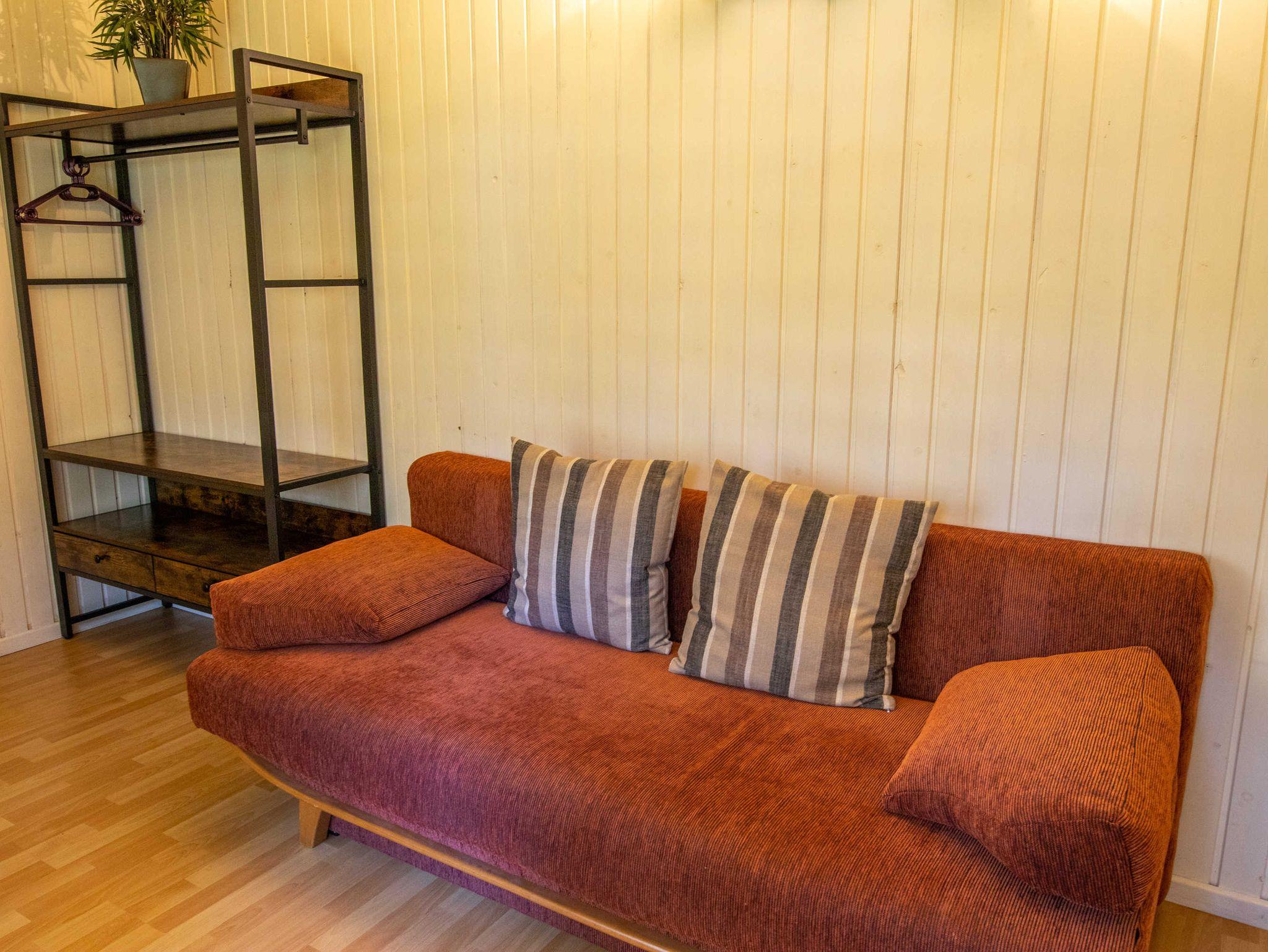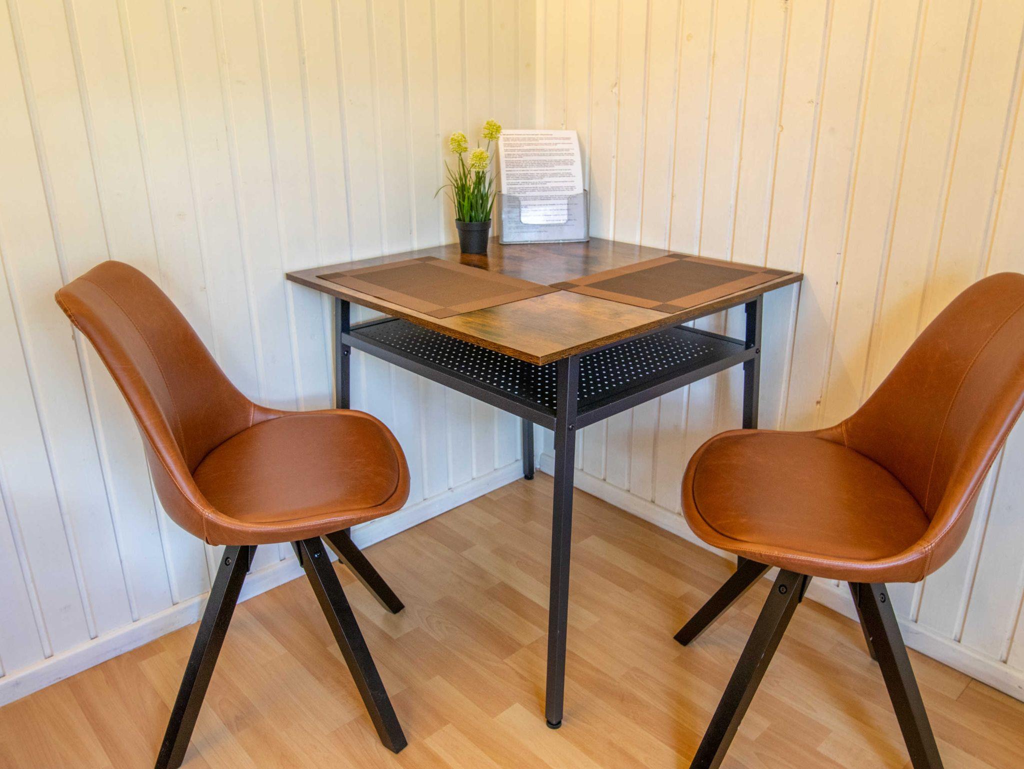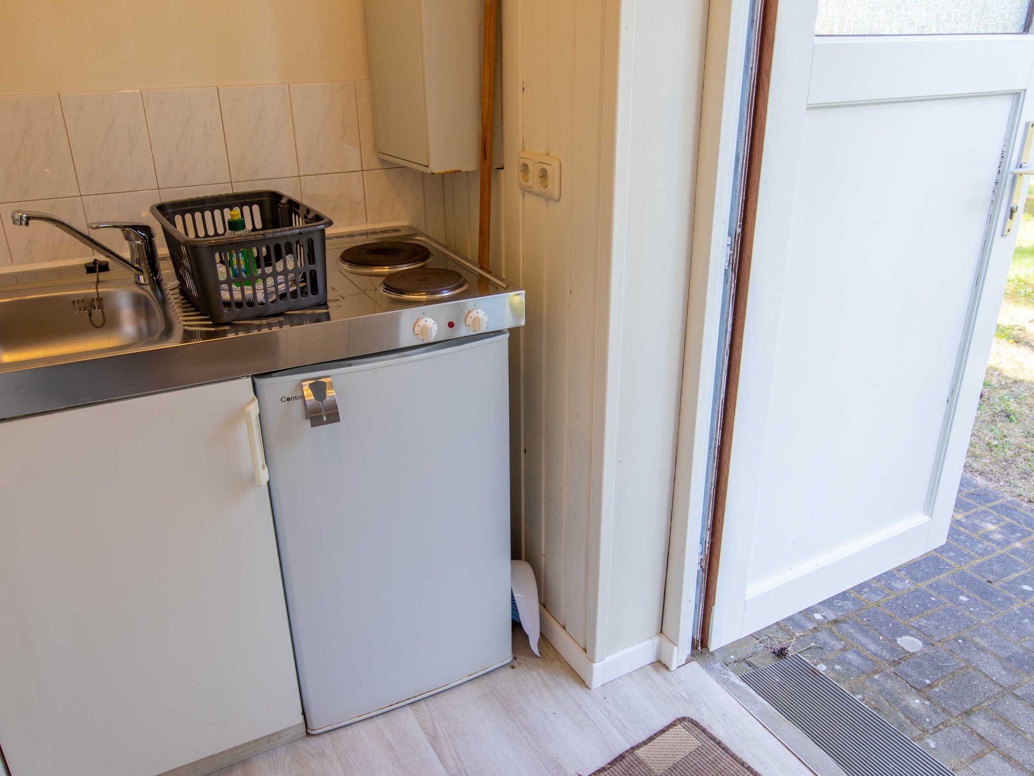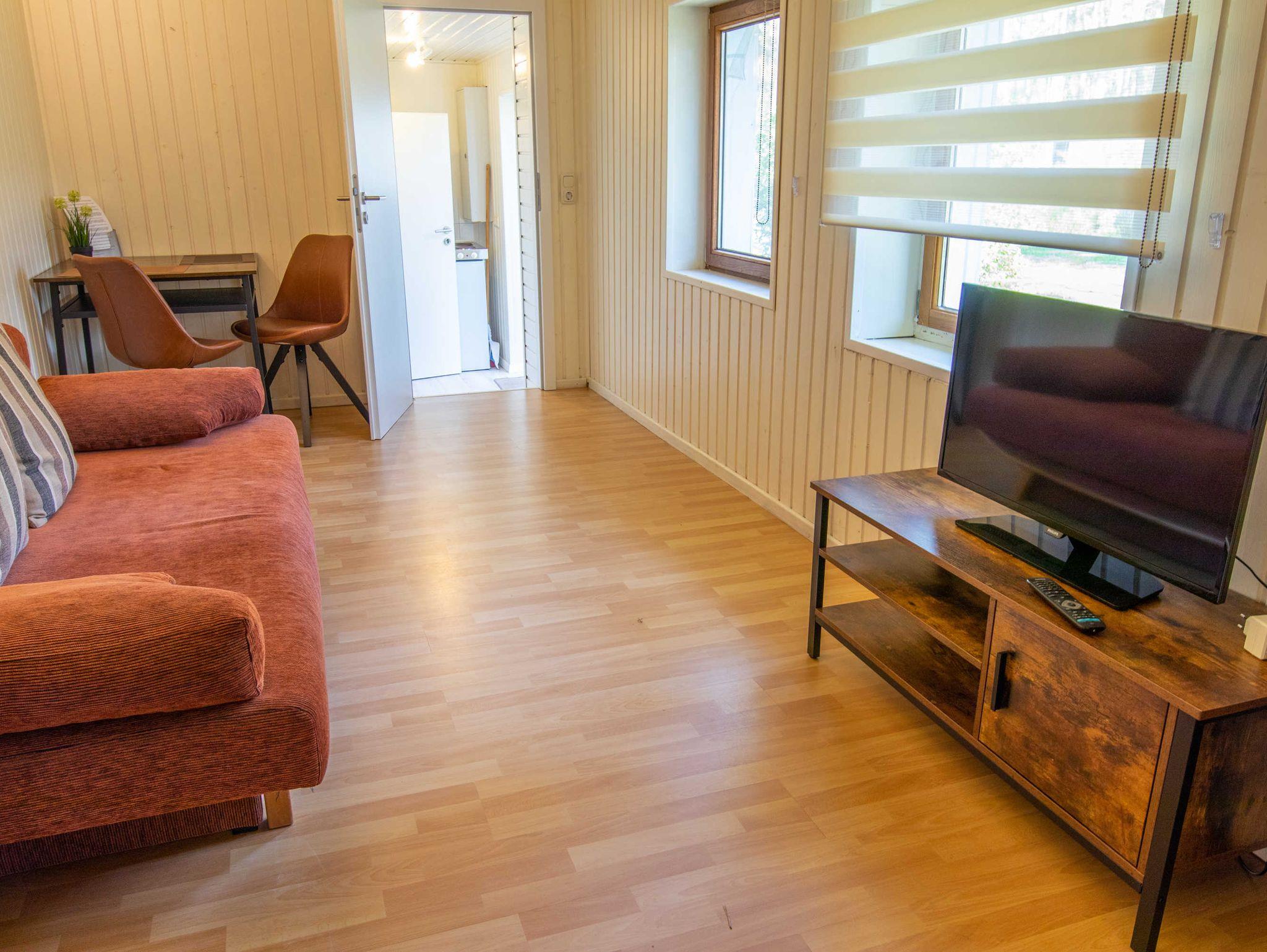 Die ca. 25 m² große Ferienwohnung befindet sich auf der Waldseite der Anlage in einem Doppelhäuschen mit Terrasse. Die Wohnung verfügt über ein Schlafzimmer mit Doppelbett, ein Wohnzimmer mit Schlafcouch, die als Aufbettung für zwei weitere Personen dienen kann, eine kleine Küchenzeile mit Kühlschrank im Eingangsbereich sowie ein Bad mit Dusche und WC. Vor dem Häuschen steht Ihnen eine möblierte Terrasse zur Verfügung. Die Ferienwohnung eignet sich für bis zu 4 Personen. Zusätzlich kann ein Kinderbett für ein Kleinkind (bis 3 Jahre) aufgestellt werden. Kinderbett, Hochstuhl, Wäschepaket sowie ein Parkplatz sind inklusive.