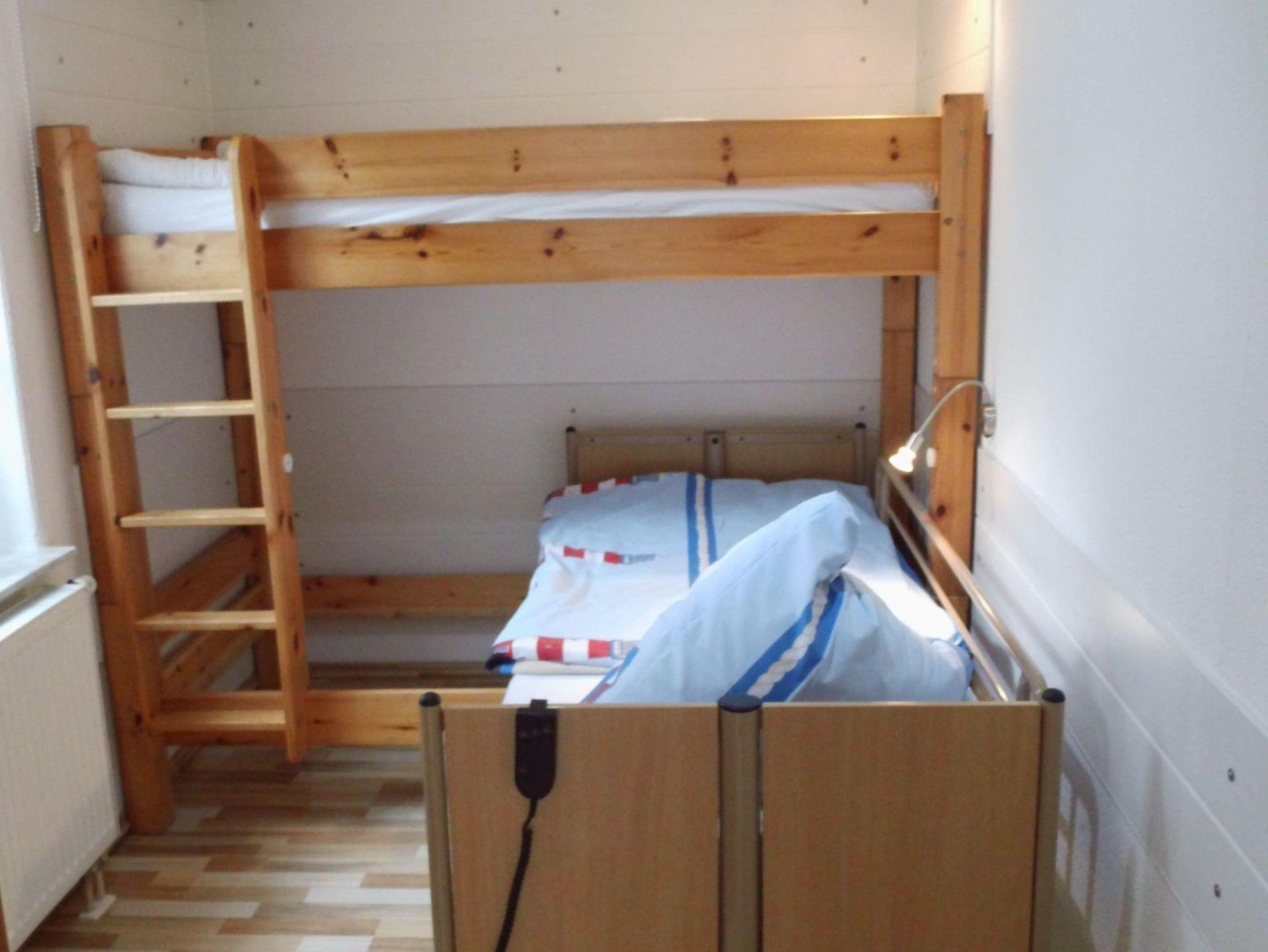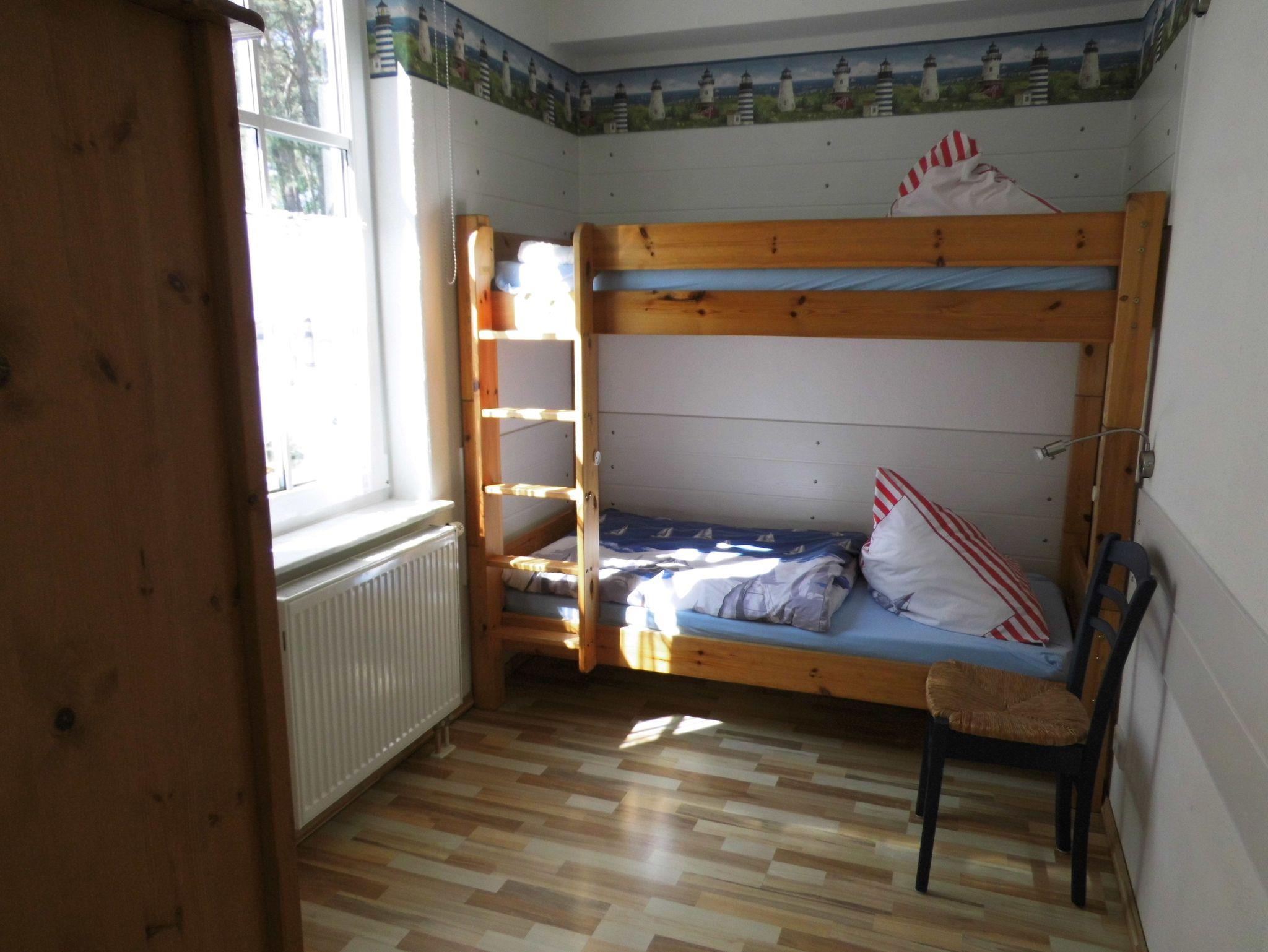 Dieser Schlafraum ist ausgestattet mit einem Etagenbett (195cm x 90cm), Leselampen & Bücherregalen (& Büchern :-) !) und einem Kleiderschrank.
