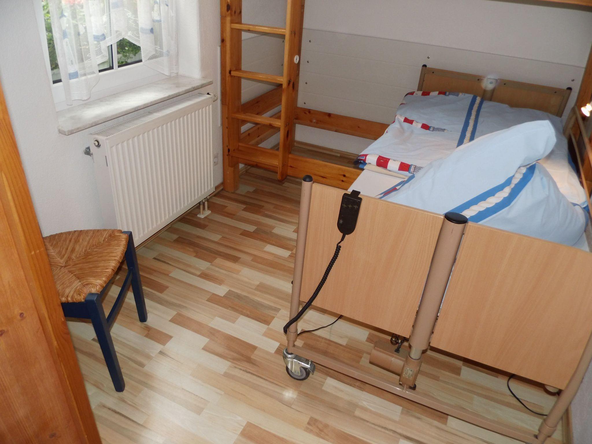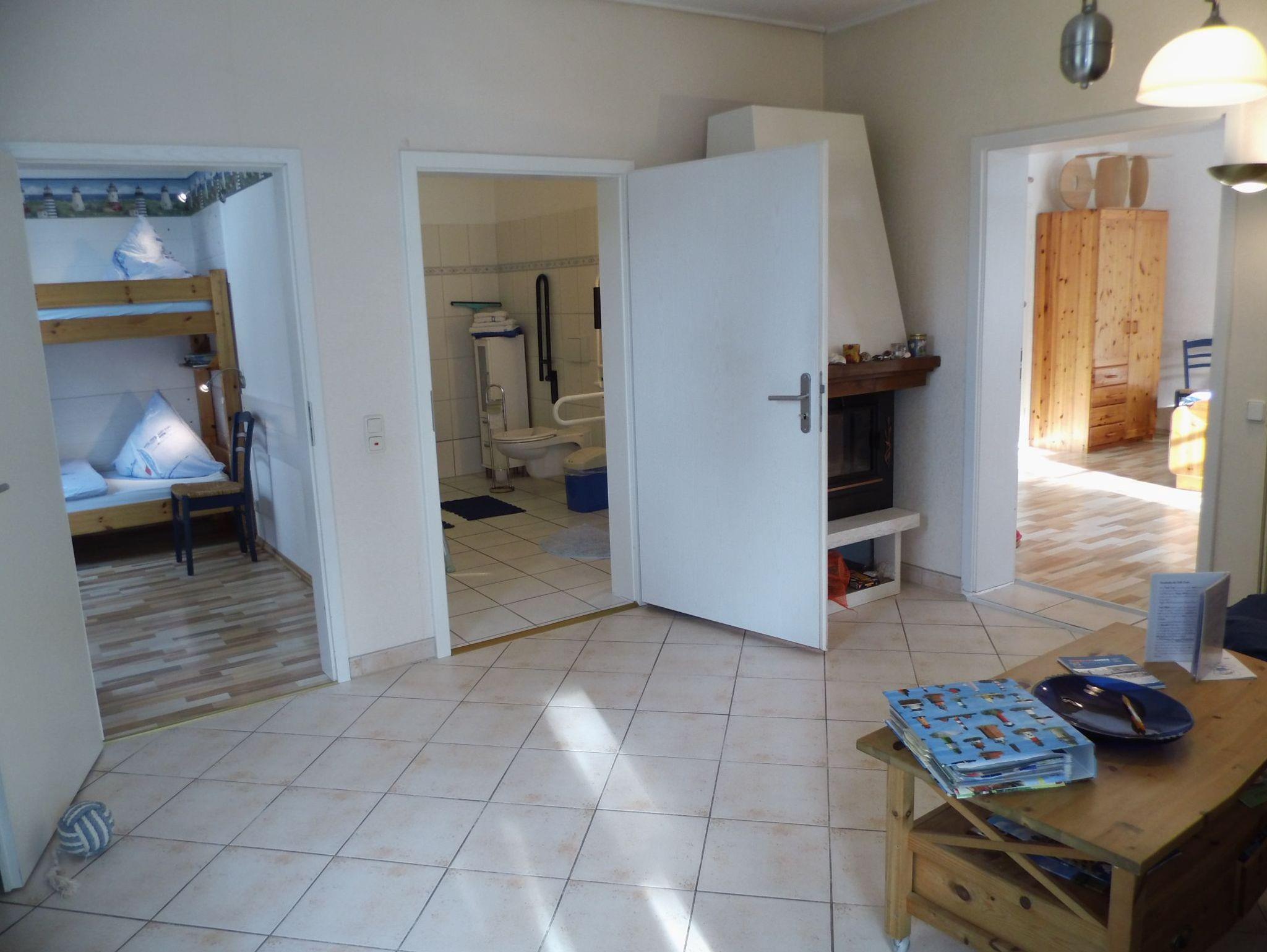 Diese rollstuhlgerechte Ferienwohnung entstand 2005. Sie besteht aus einem Schlafzimmer mit Doppelbett, einer Wohn - Essküche mit Kamin und ausziehbarer Schlafcouch, einem weiteren Zimmer mit Etagenbett, einem Wintergarten und einem rollstuhlgerechten Duschbad. Alle Betten sind allergikergercht ausgestattet. Die Böden sind alle mit Laminat /Fliesen ausgelegt, gerne auch für nur eine Nacht buchbar => 25,00 Euro Aufpreis!.