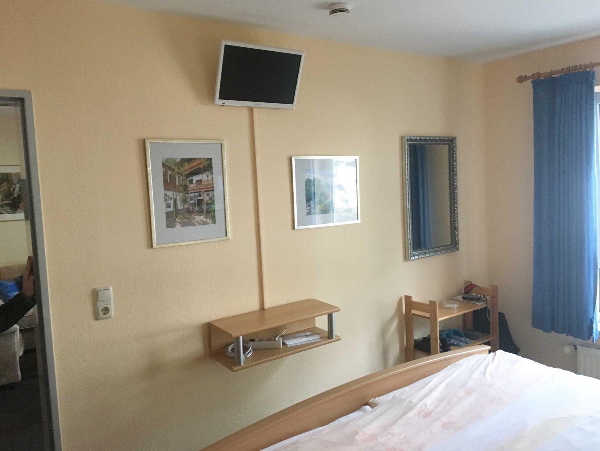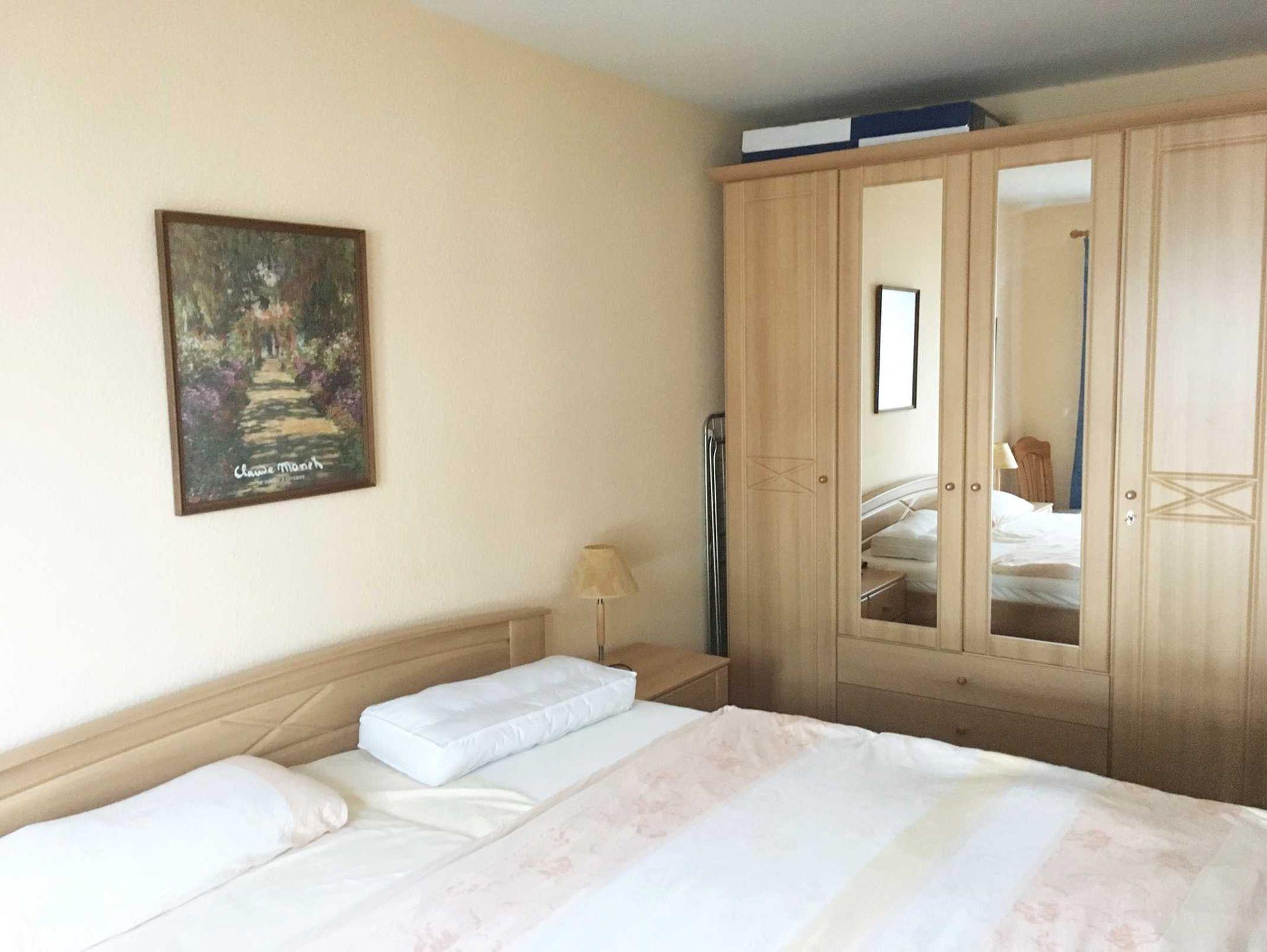 Doppelbett 1,80 x 2,00 m, 1 Kleiderschrank, Stuhl, Flachbild- TV