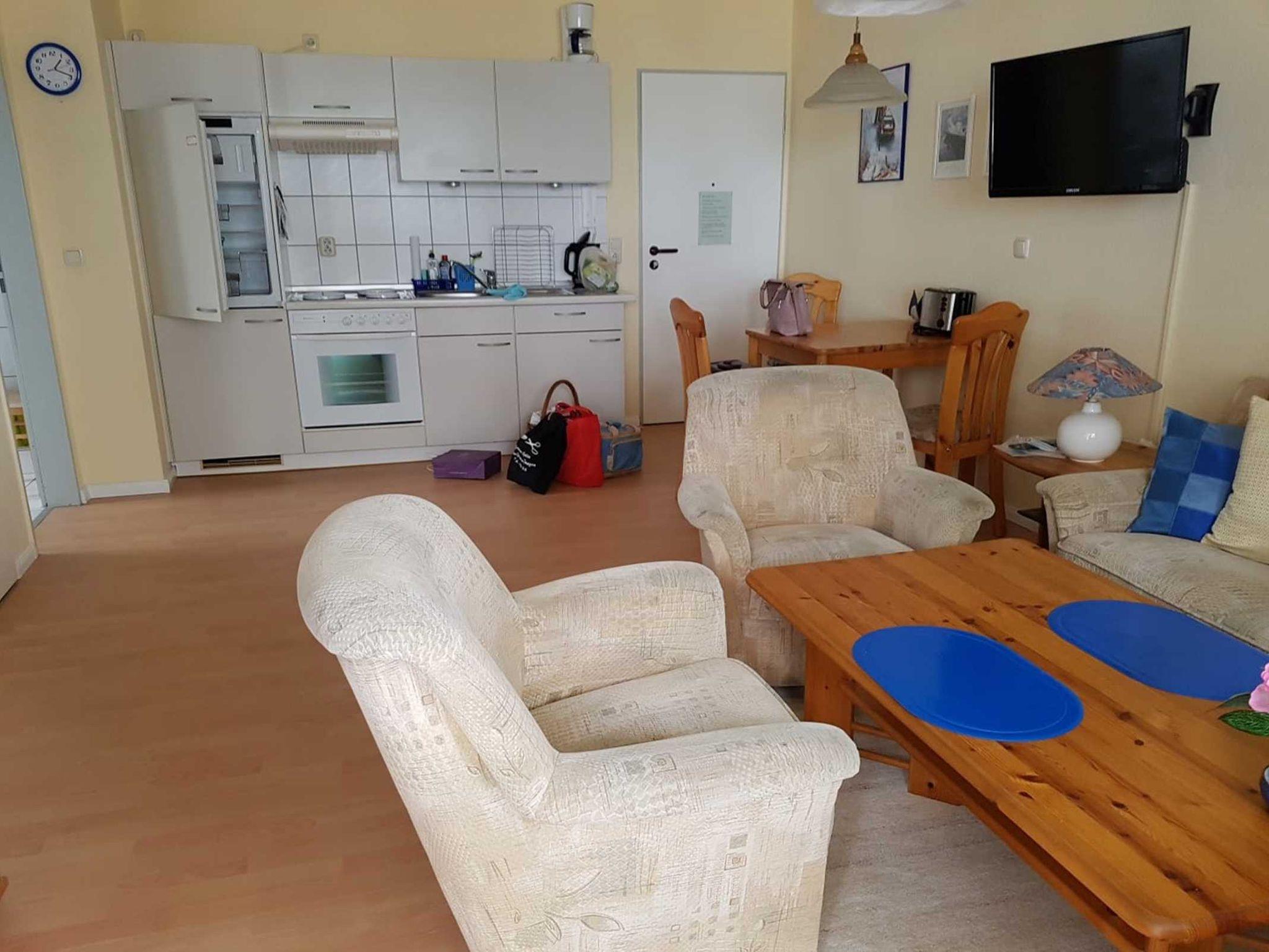 Die Ferienwohnung 12 befindet sich in der Ferienanlage Blaumuschel in der 1. Obergeschoss und verfügt über direkten Meerblick. Sie ist geschmackvoll und modern eingerichtet und bietet außerdem einen Balkon.