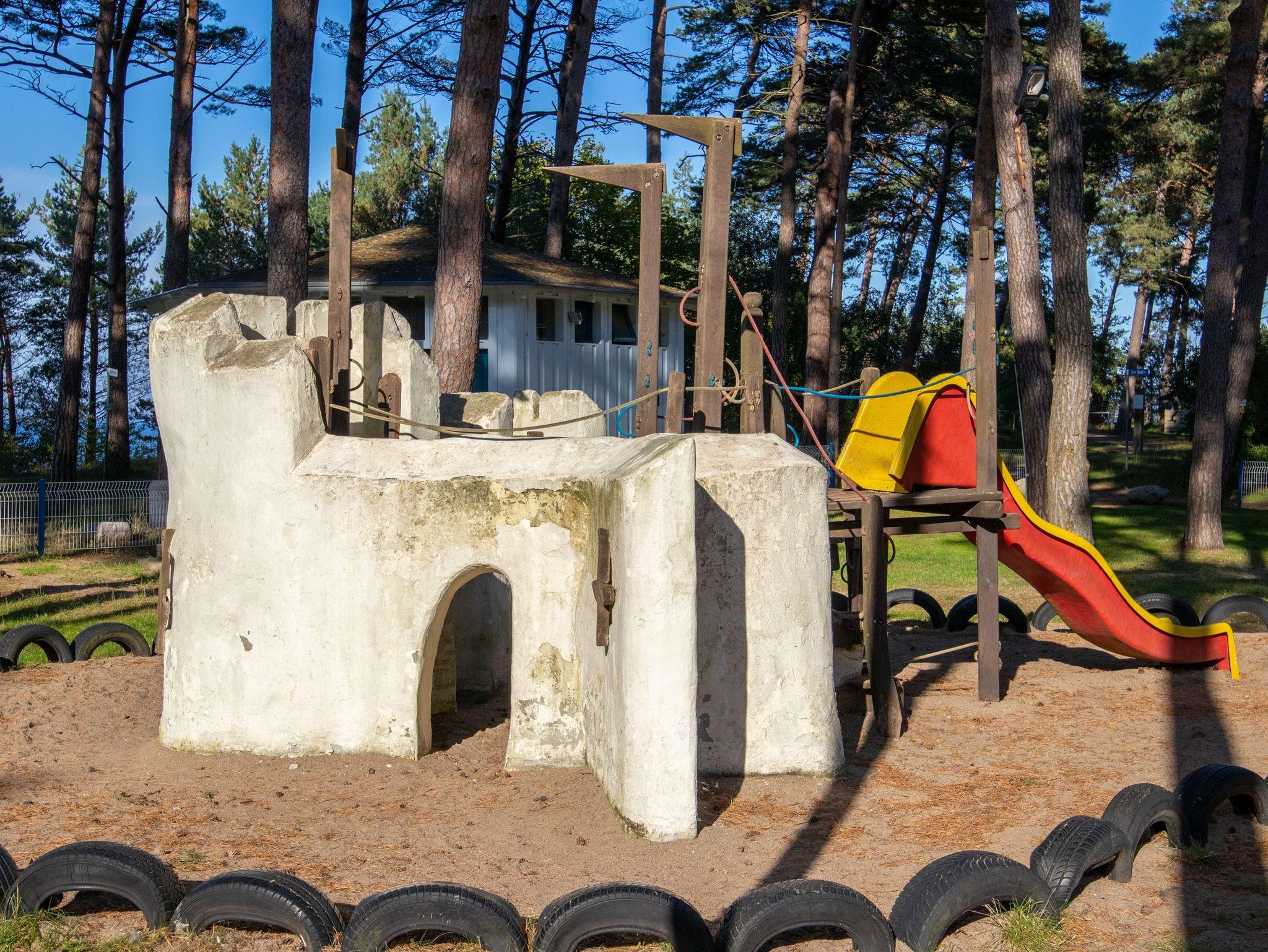 Auf unserem Gelände lädt eine Ritterburg Kinder zu fantasievollen Spielen ein.