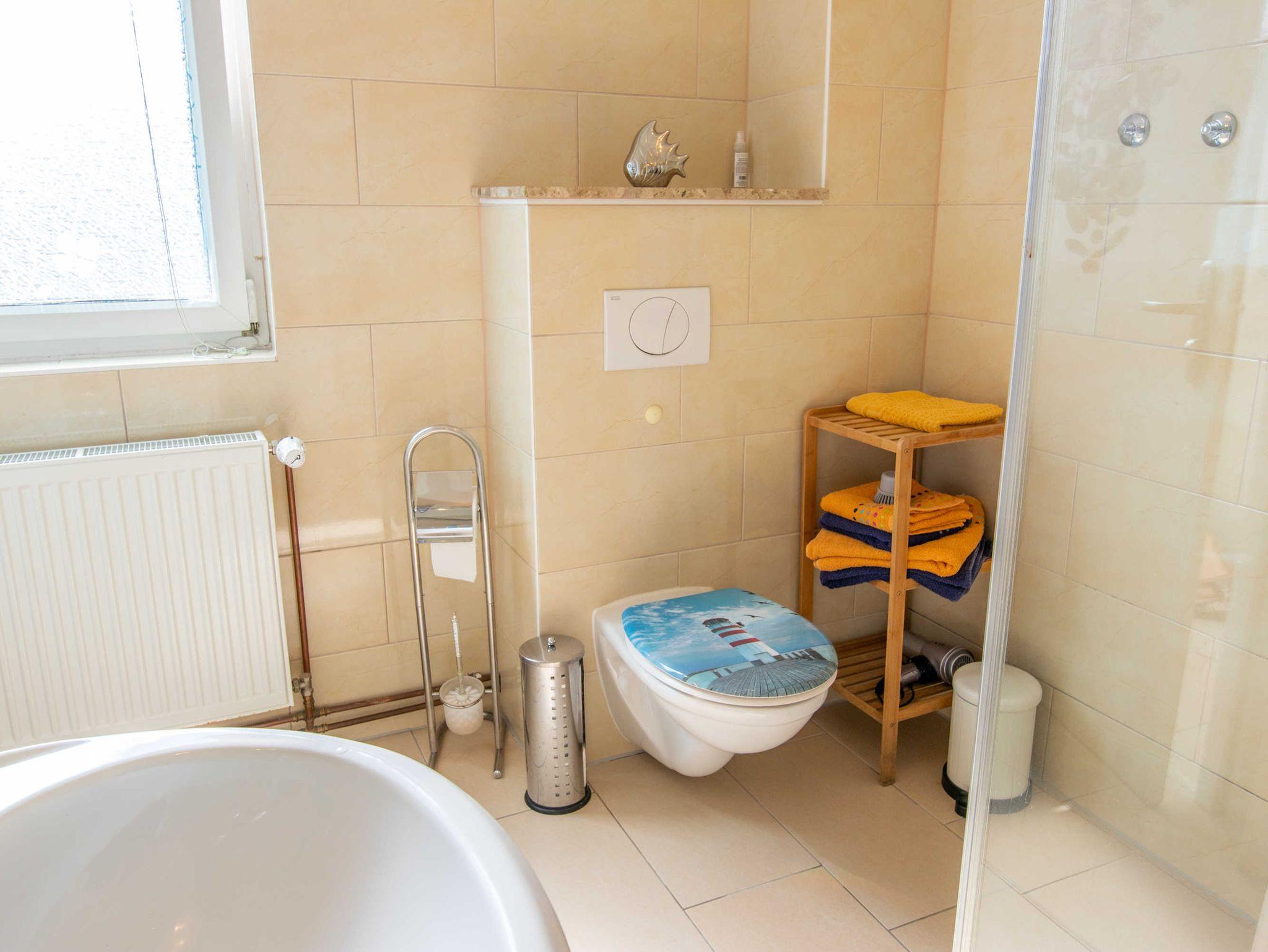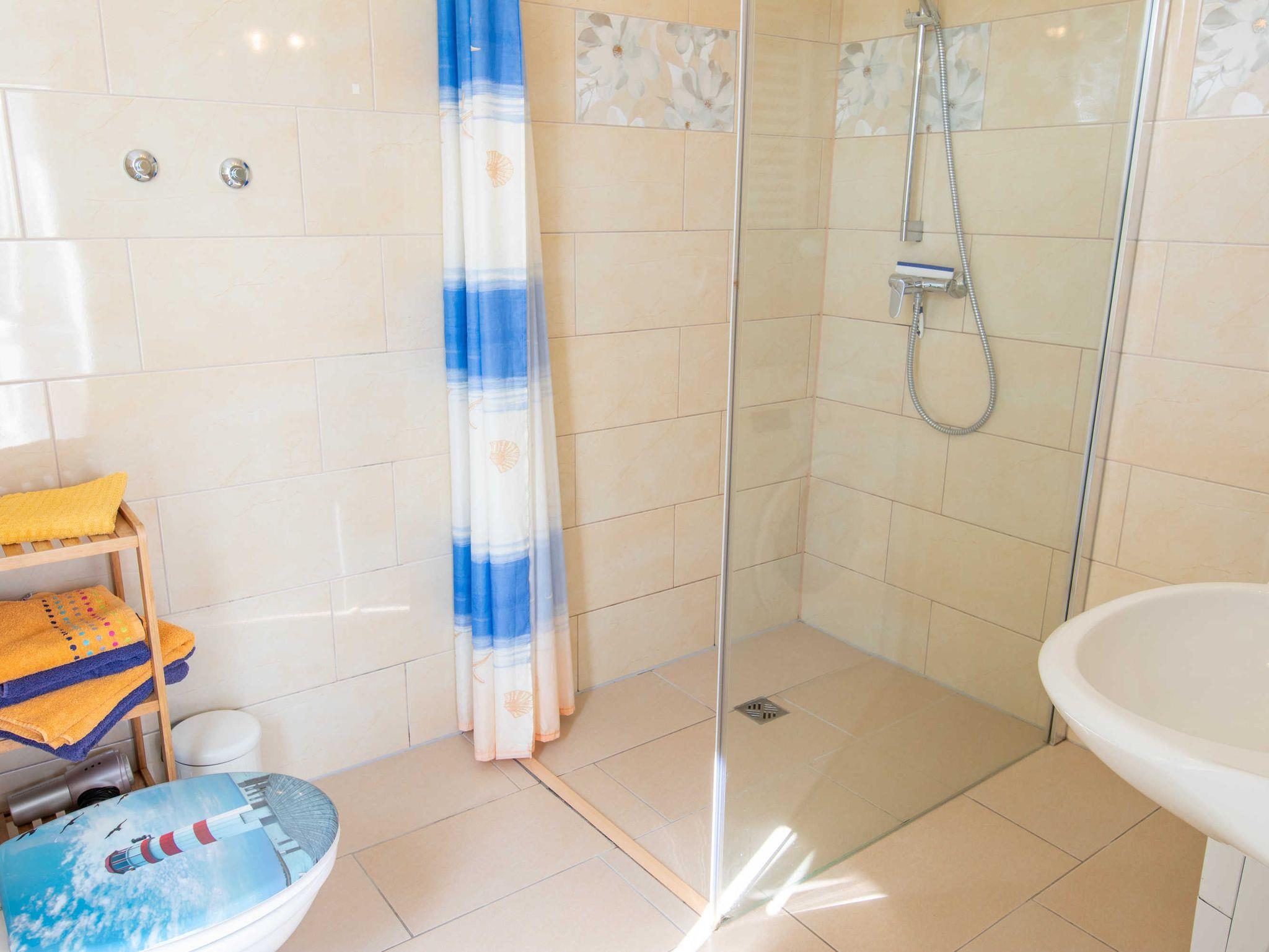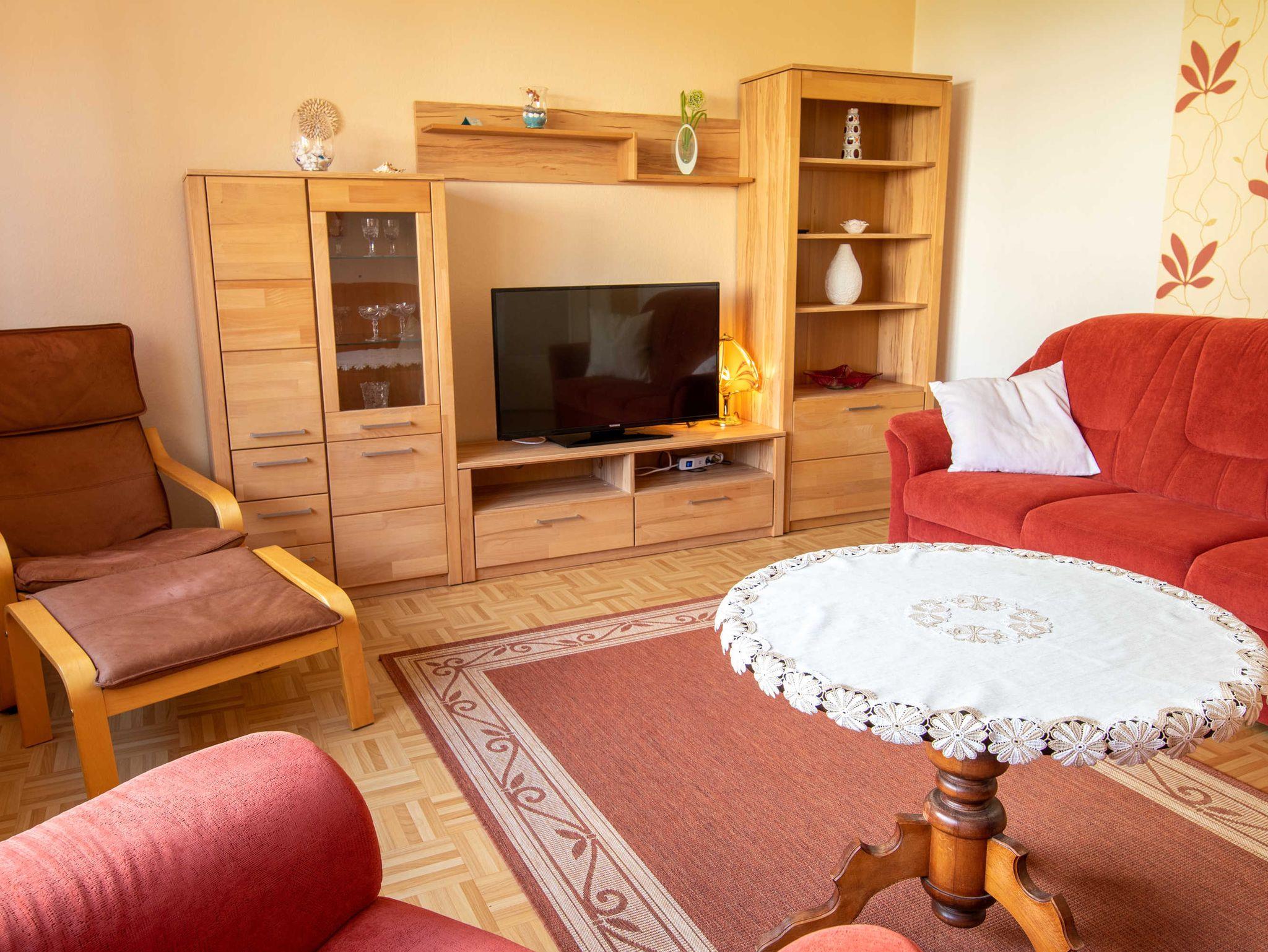 Die Ferienwohnung verfügt über einen Wohnraum mit Sitzecke und TV, ein Schlafzimmer mit Doppelbett und Einzelbett, ein Kinderzimmer mit zwei Einzelbetten, ein Küche mit Gasherd und Sitzmöglichkeit sowie ein Bad mit Dusche und WC.