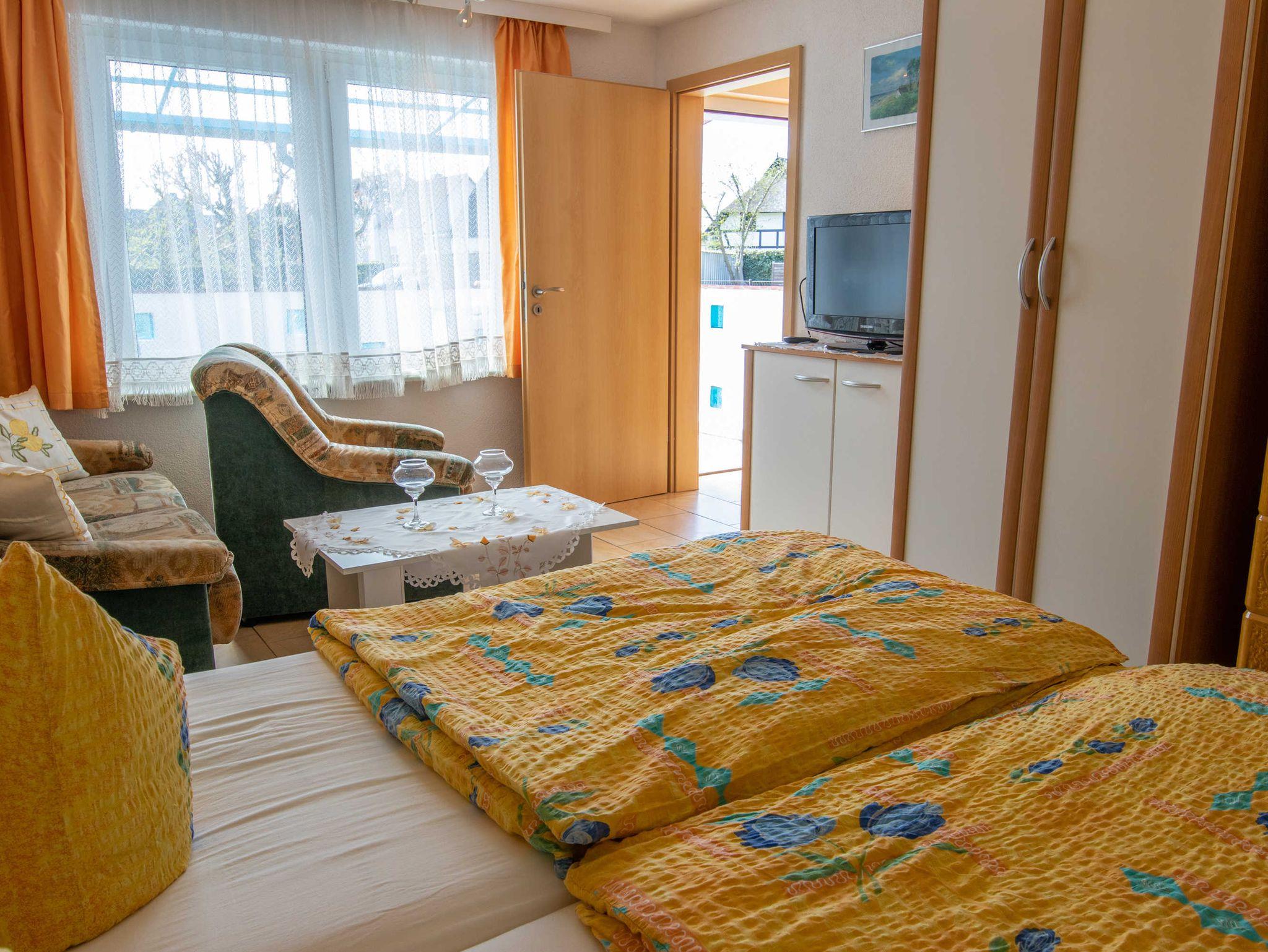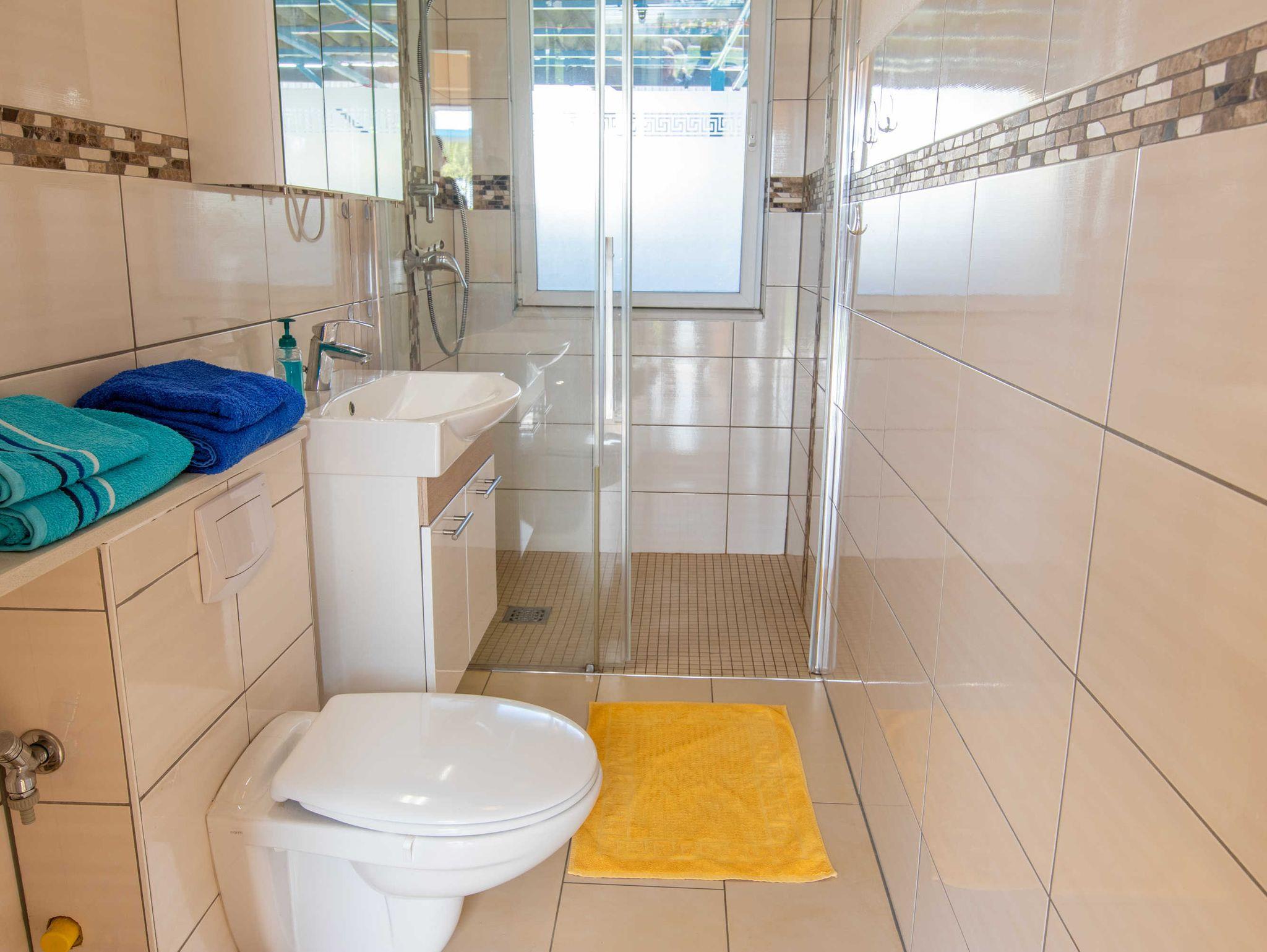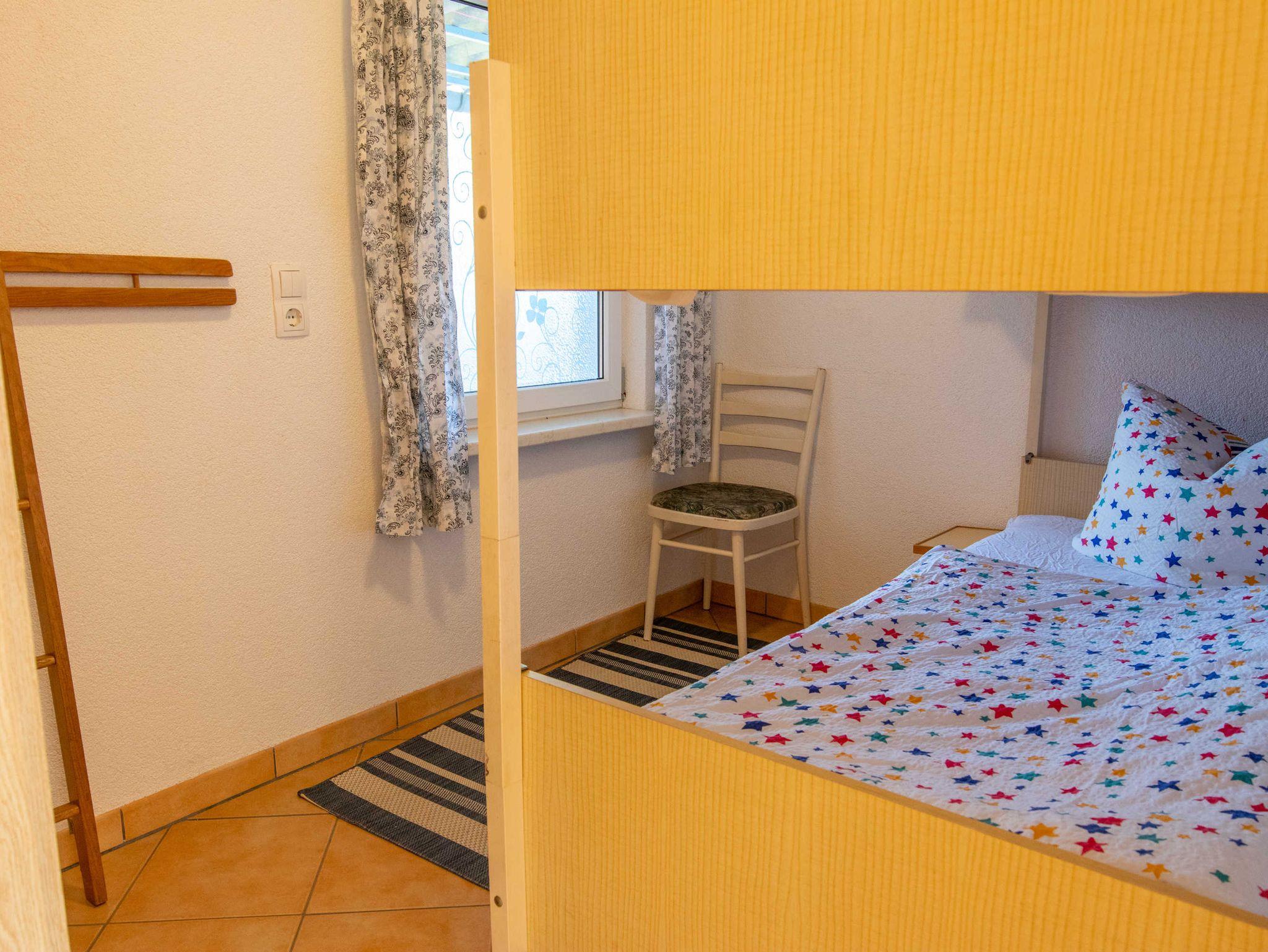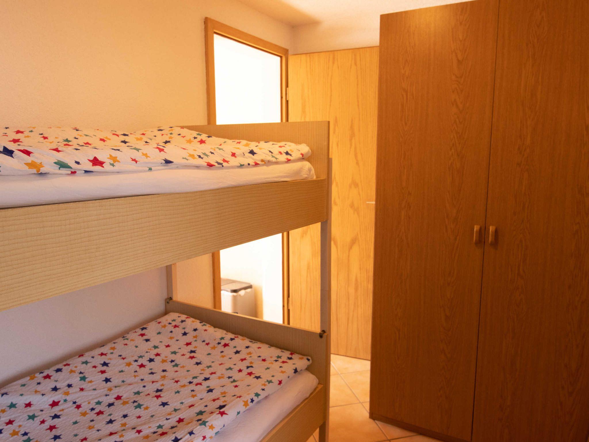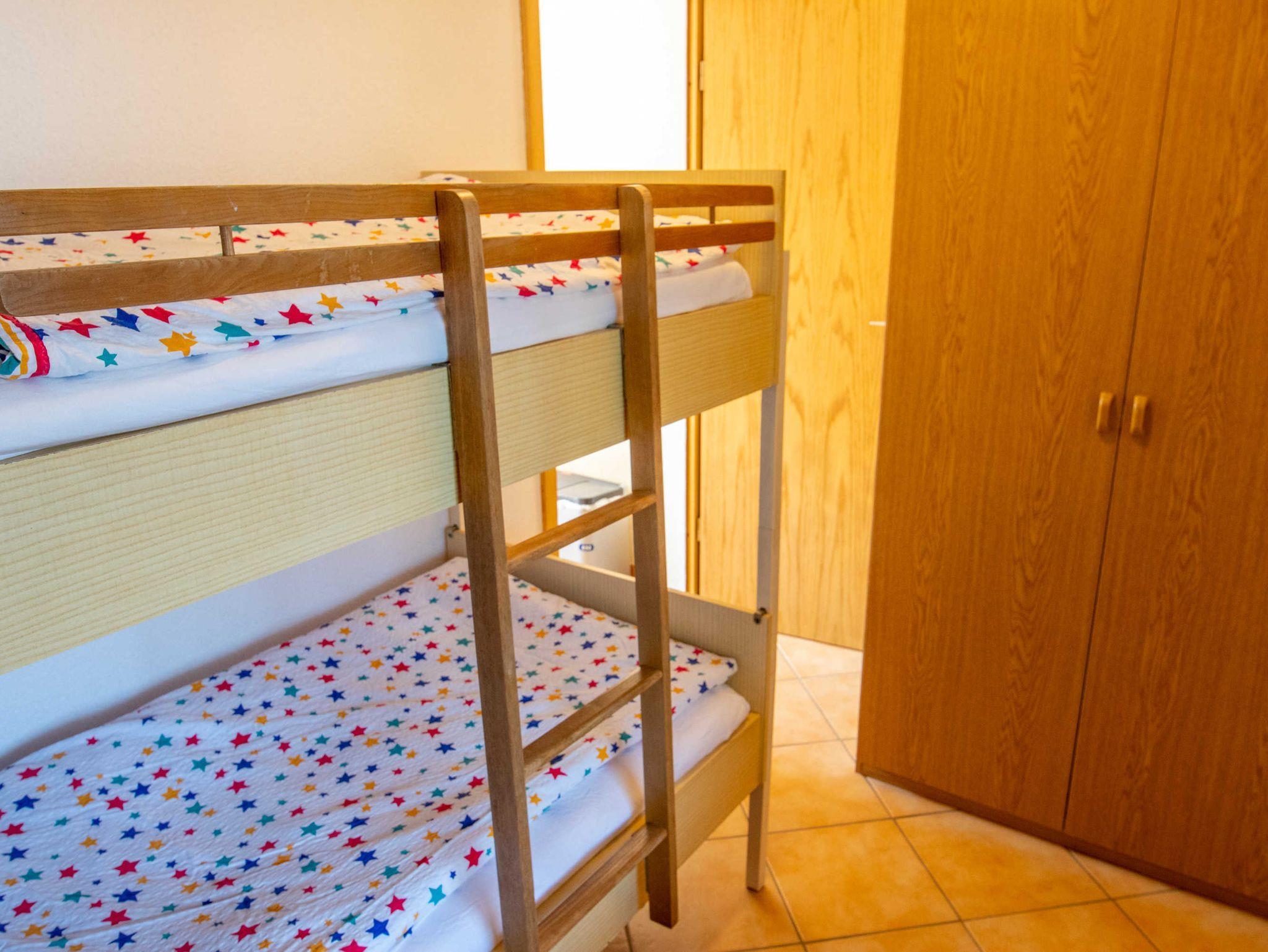 Der Bungalow verfügt über einen Wohn-/Schlafraum mit Sitzecke, TV und Doppelbett, ein Kinderzimmer mit Etagenbett, eine Küche mit Sitzgelegenheit, Geschirrspüler, Kühl- und Gefrierschrank sowie ein Bad mit Dusche und WC.
