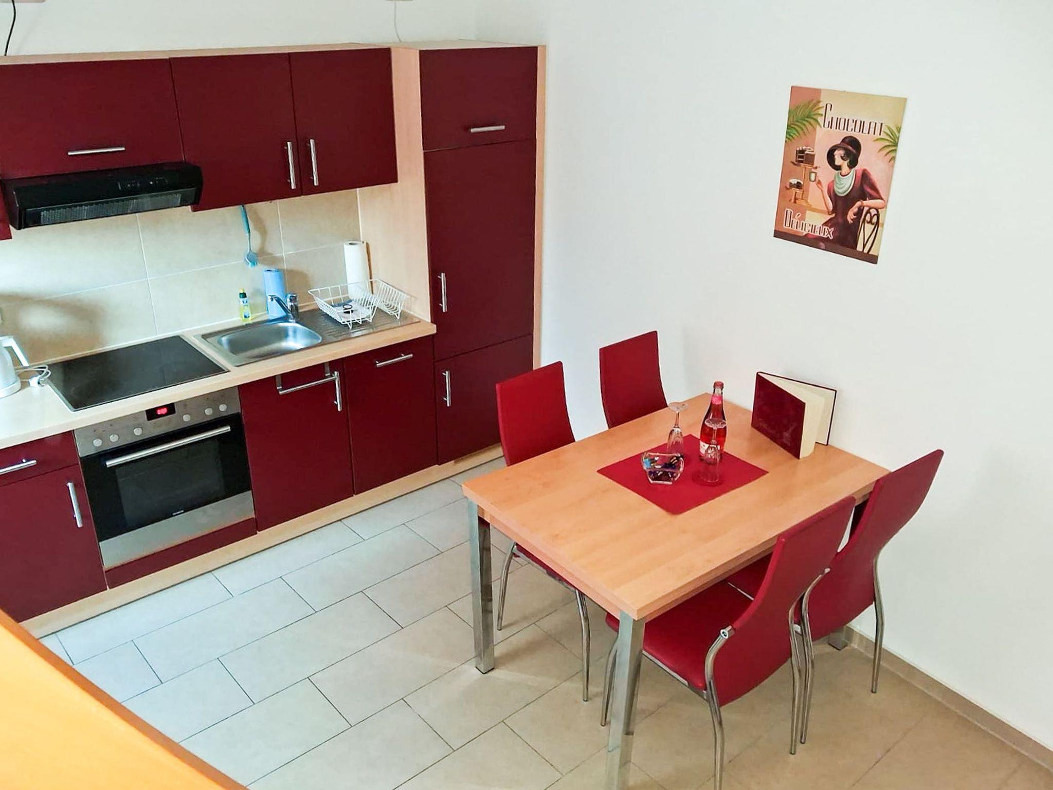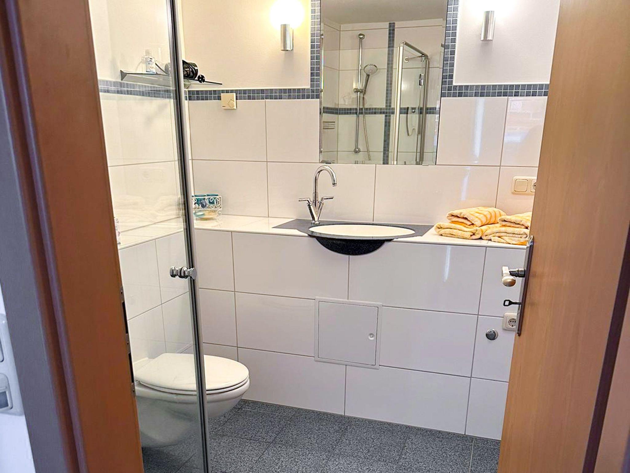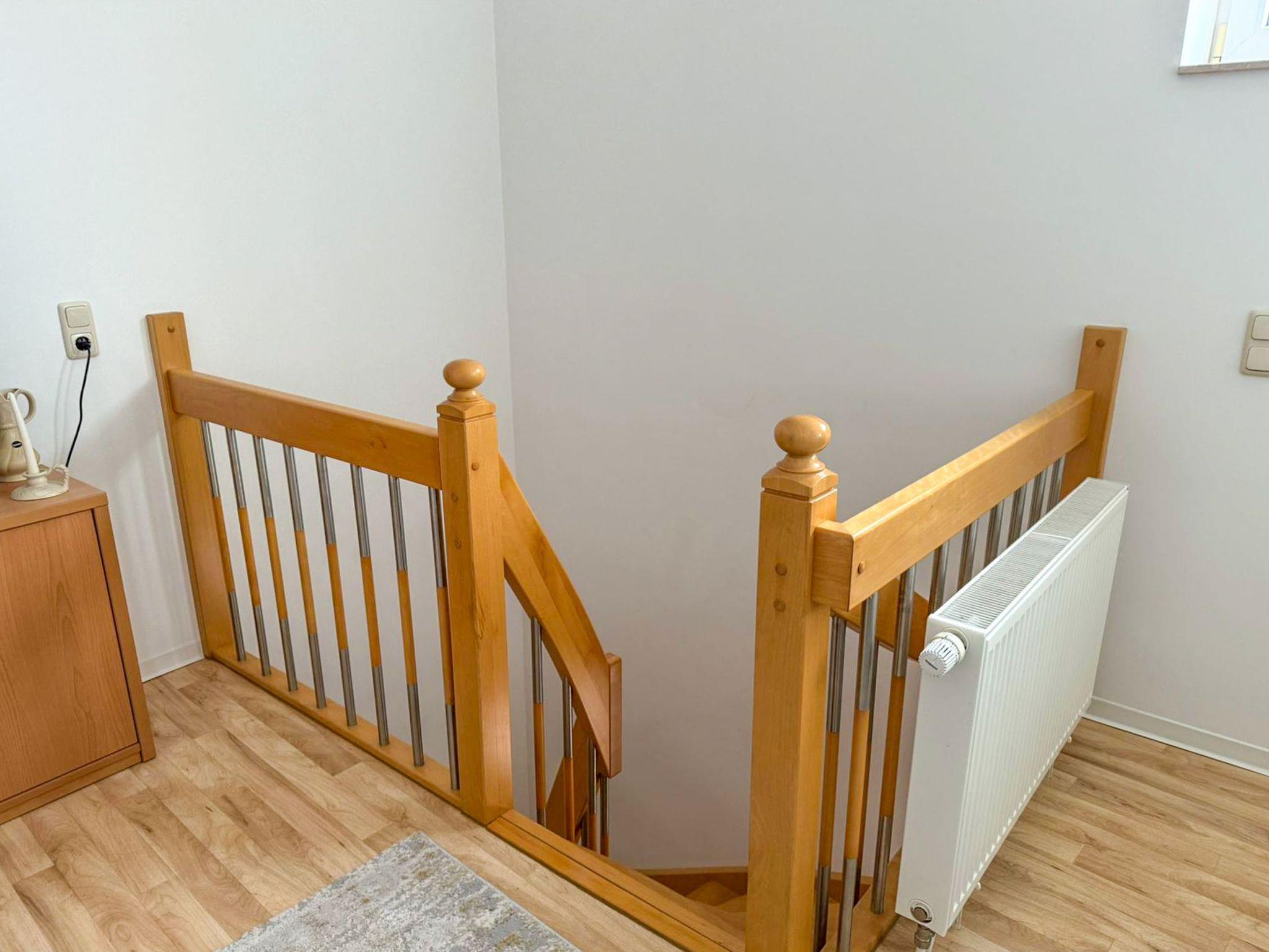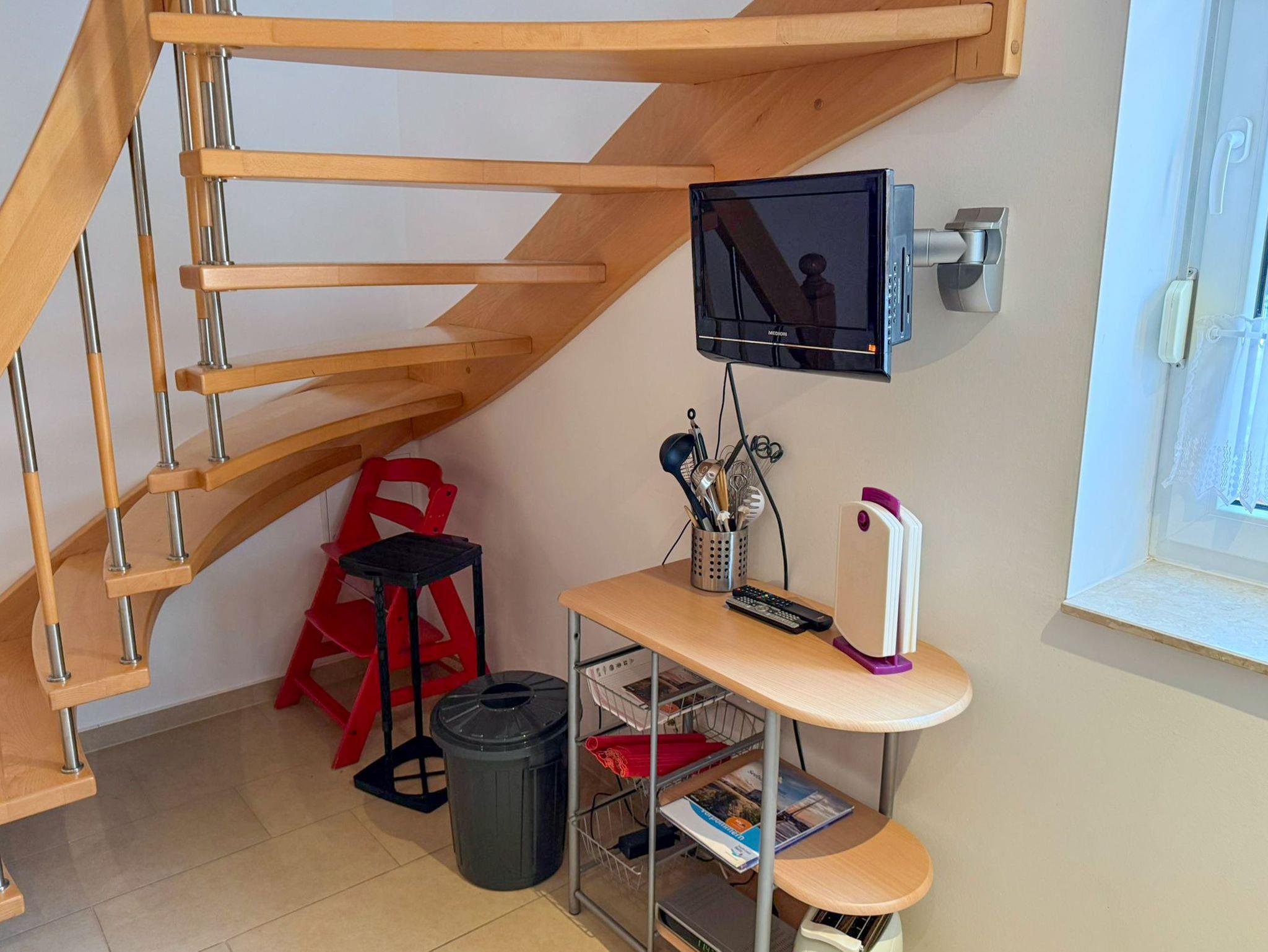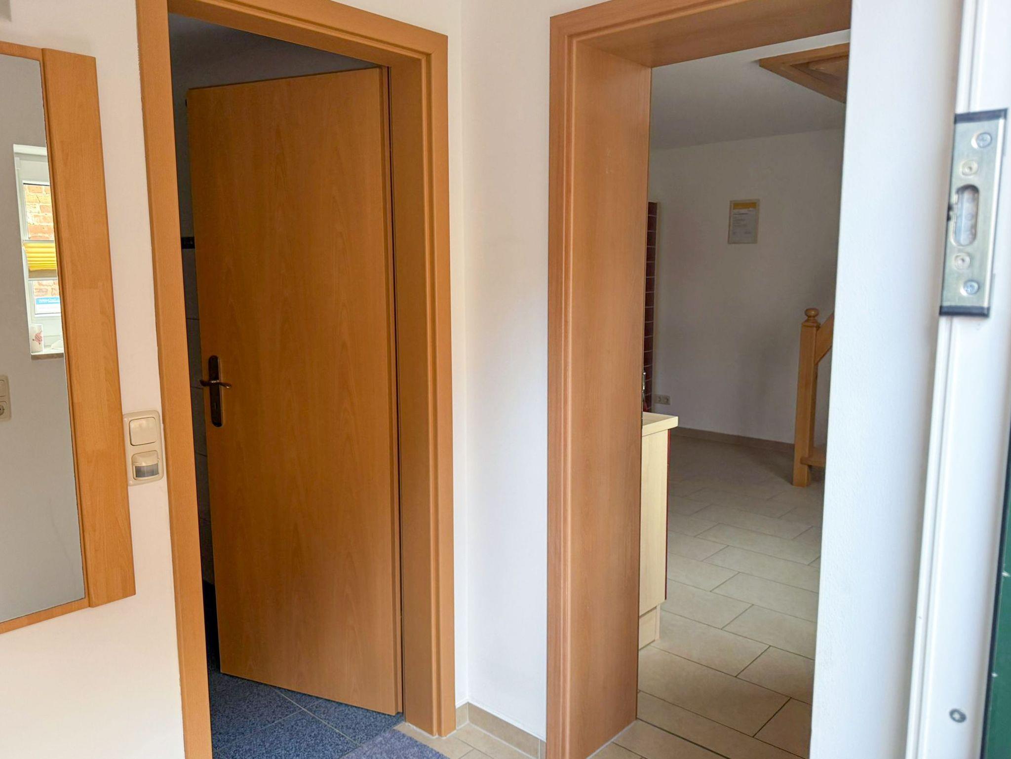 In der Ferienwohnung Zum Schwalbennest verteilen sich die Wohnbereiche maisonetteartig über mehrere Ebenen uaf insgesamt 73 m² und sind über kurze Treppen miteinander verbunden. Im Erdgeschoss findest du das Badezimmer mit WC und ebenerdiger Dusche. Gleich daneben liegt die offene Küche mit Küchenzeile, Herd, Spülmaschine, Backofen und Mikrowelle sowie Küchenhelfern für den täglichen Bedarf. Ein Esstisch steht direkt im Küchenbereich, außerdem gibt es hier einen TV, praktisch für gemeinsame Mahlzeiten oder einen ruhigen Start in den Tag. Über die Treppe in der Küche gelangst du in den Wohnbereich mit Sofa und TV, ideal zum Abschalten nach Strand und Ausflug. Ein paar Stufen weiter erreichst du den offenen Schlafbereich mit Doppelbett (180x200) und Kleiderschrank. Dahinter befindet sich ein separates Schlafzimmer mit zwei Einzelbetten (90x200) und TV. Für eine weitere Person kann ein Zustellbett (80x200) aufgestellt werden. Draußen kannst du Terrasse und Sitzecke auf dem Grundstück nutzen, der Grill steht ebenfalls bereit. Ein Parkplatz ist vorhanden, sodass die Anreise unkompliziert bleibt.
