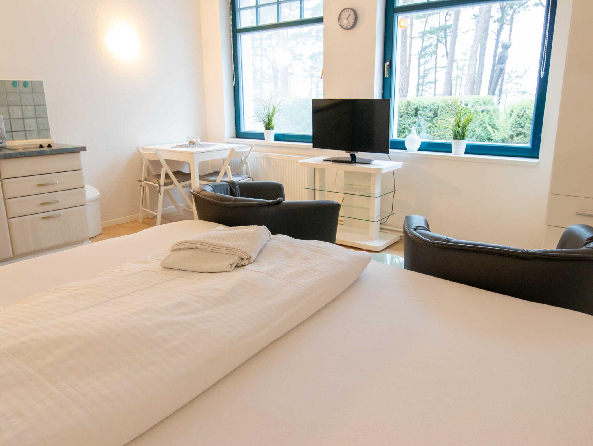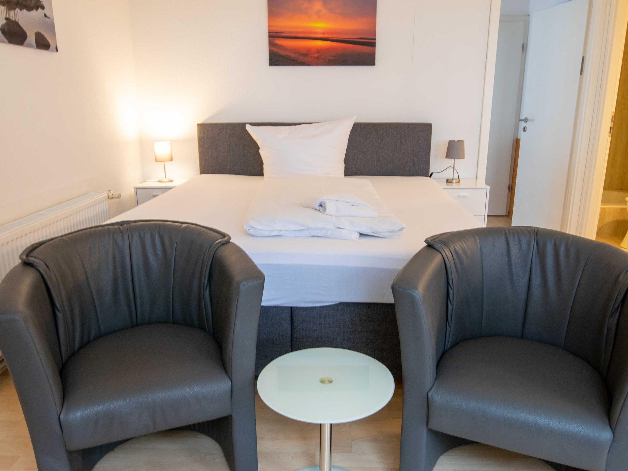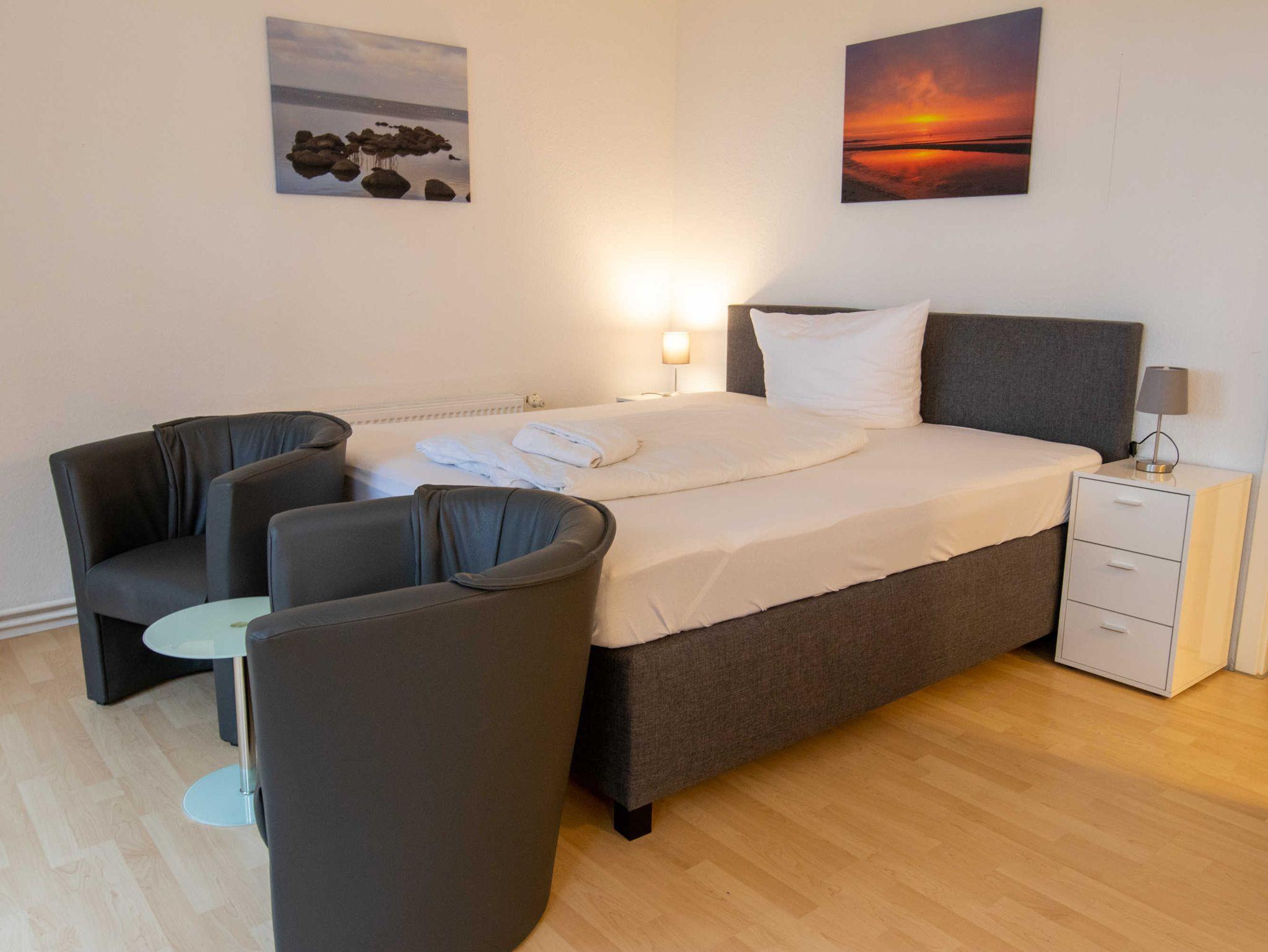 Erleben Sie erholsame Tage in einem gemütlichen Doppelzimmer mit Meerblick direkt am Greifswalder Bodden.