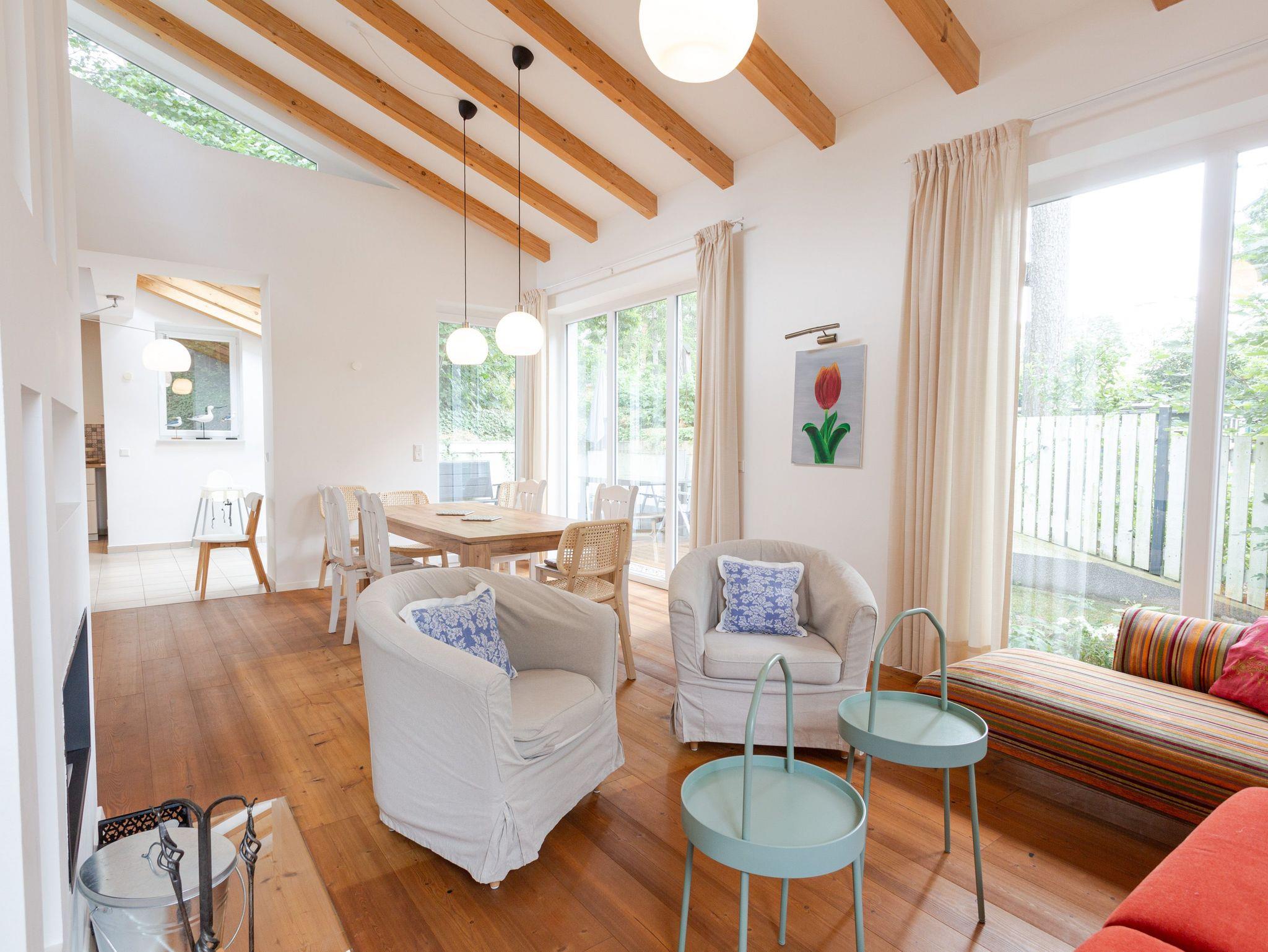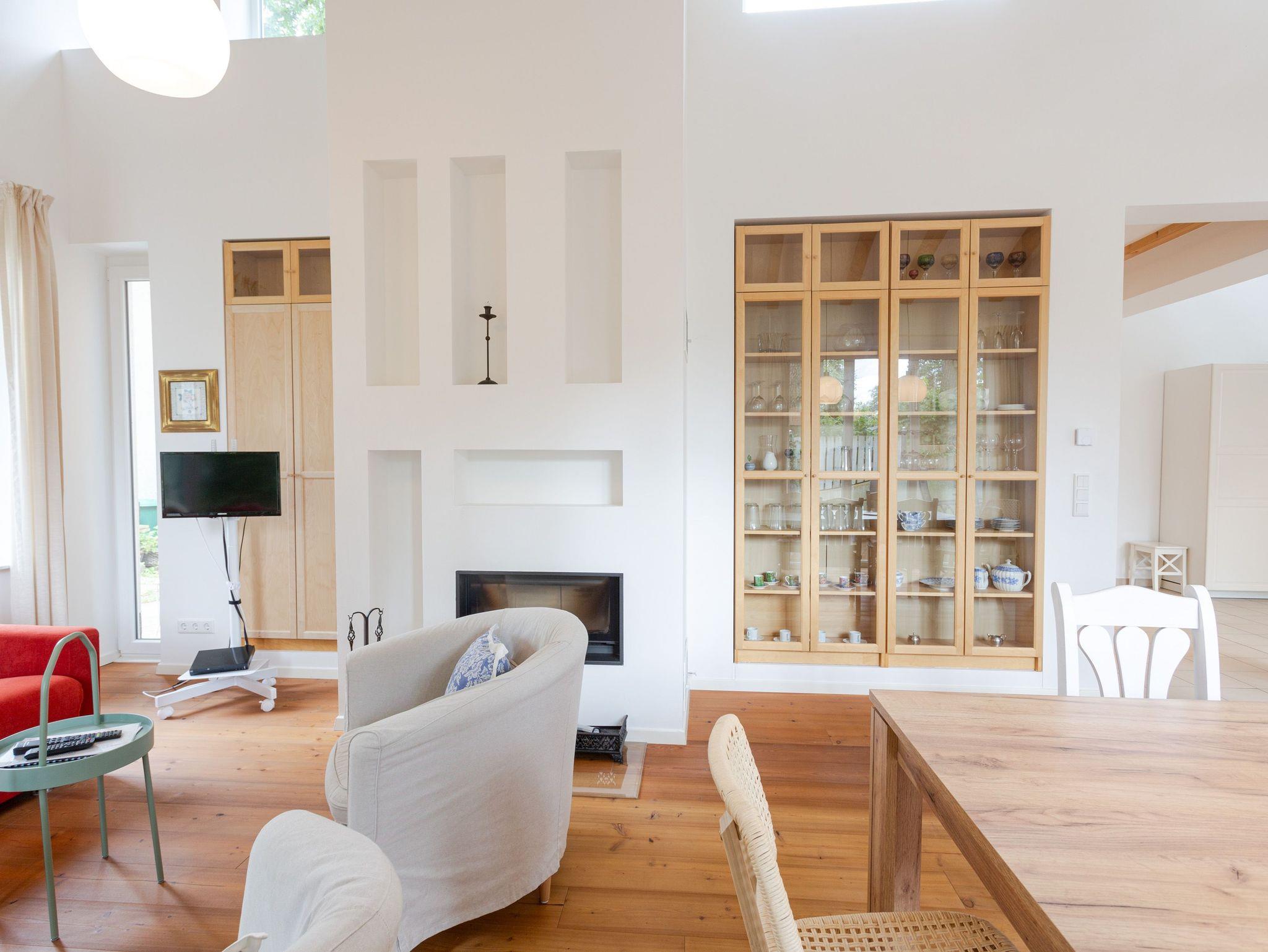 Erlebe einen erholsamen Urlaub im Ferienhaus nur 300 Meter vom Strand entfernt. Dieses charmante, ebenerdige Ferienhaus bietet auf 132 m² Platz für bis zu 8 Personen und eignet sich perfekt für Familien oder Gruppen von Freunden. Das Haus verfügt über drei behagliche Schlafzimmer, zwei mit Doppelbetten (180x200) und eines mit zwei Einzelbetten (100x200), die dir erholsame Nächte garantieren. Das großzügige Wohnzimmer lädt mit einem gemütlichen Kamin zu entspannenden Abenden ein, und das bereitgestellte Holz sorgt für wohlige Wärme. Ein Schlafsofa (165x200) bietet weiteren Schlafplatz für Gäste. Die offene, gut ausgestattete Küche verfügt über einen Herd, Ofen, Kaffeemaschine, Mikrowelle und Spülmaschine, sodass du mühelos gemeinsame Mahlzeiten zubereiten kannst. Am Esstisch finden alle bequem Platz. Für deinen Komfort gibt es zwei moderne Bäder: eines mit Dusche und WC und das andere mit Dusche und Badewanne. Ein zusätzliches Gäste-WC ist ebenfalls vorhanden. Dank des Waschtrockners sind auch längere Aufenthalte unkompliziert.Das Ferienhaus ist eingeschränkt rollstuhlgeeignet, sodass sich alle Gäste wohlfühlen können. Im Außenbereich kannst du auf der Terrasse und im Garten die frische Seeluft genießen. Entspanne in den Sitzgelegenheiten, nutze den Grill für gesellige Abende und lasse die Seele baumeln.