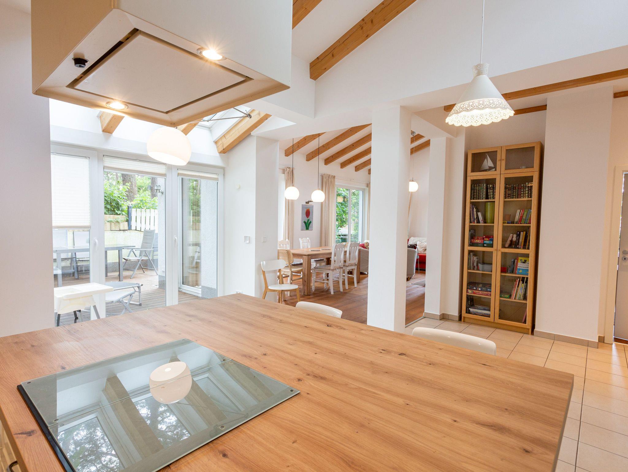 Willkommen in Ejas Haus am Meer im idyllischen Seebad Lubmin am Greifswalder Bodden, nur 300 Meter vom Strand entfernt. Dieses großzügige, ebenerdige Ferienhaus bietet auf 132 m² ausreichend Platz für bis zu 8 Personen und ist ideal für einen erholsamen Urlaub mit Familie oder Freunden. Das Ferienhaus verfügt über drei gemütliche Schlafzimmer, die erholsamen Schlaf versprechen. Das geräumige Wohnzimmer mit einem Kamin lädt zu gemütlichen Abenden ein und bietet zusätzlich ein Schlafsofa für weitere Gäste. Die große, offene Küche ist vollständig ausgestattet und lässt keine Wünsche offen ? hier könnt ihr gemeinsam kochen und am Esstisch Platz nehmen. Zwei moderne Bäder und ein zusätzliches Gäste-WC sorgen für ausreichend Komfort. Ein Waschtrockner steht ebenfalls zur Verfügung, sodass ihr auch längere Aufenthalte bequem gestalten könnt. Der Außenbereich des Hauses ist perfekt für entspannte Tage im Freien. Auf der Terrasse und im Sitzbereich im Garten könnt ihr die frische Seeluft genießen und die Seele baumeln lassen. Der Garten steht euch zur Nutzung offen und ein Grill ist ebenfalls vorhanden, sodass gemütlichen Grillabenden nichts im Wege steht.