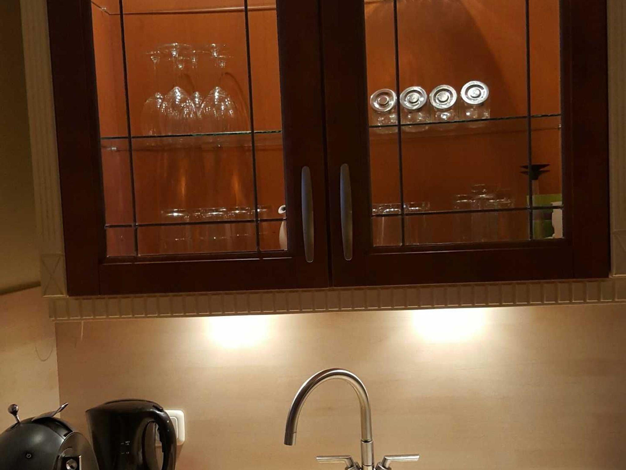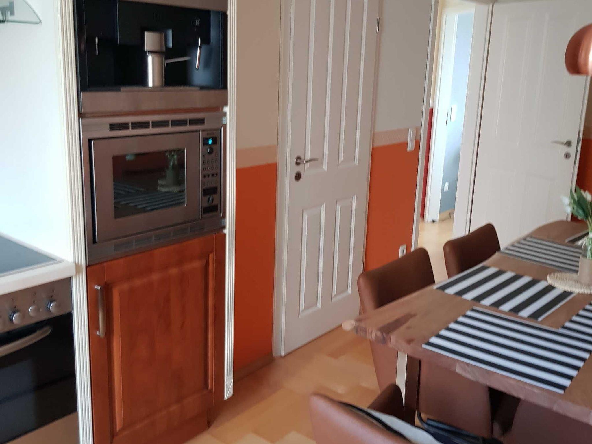 Die Küche ist ausgestattet mit: Spüle, Geschirrspüler, Mikrowelle, Herd, Backofen, Gefrierschrank, Kühlschrank, Getränkekühlschrank, Kaffeemaschiene.