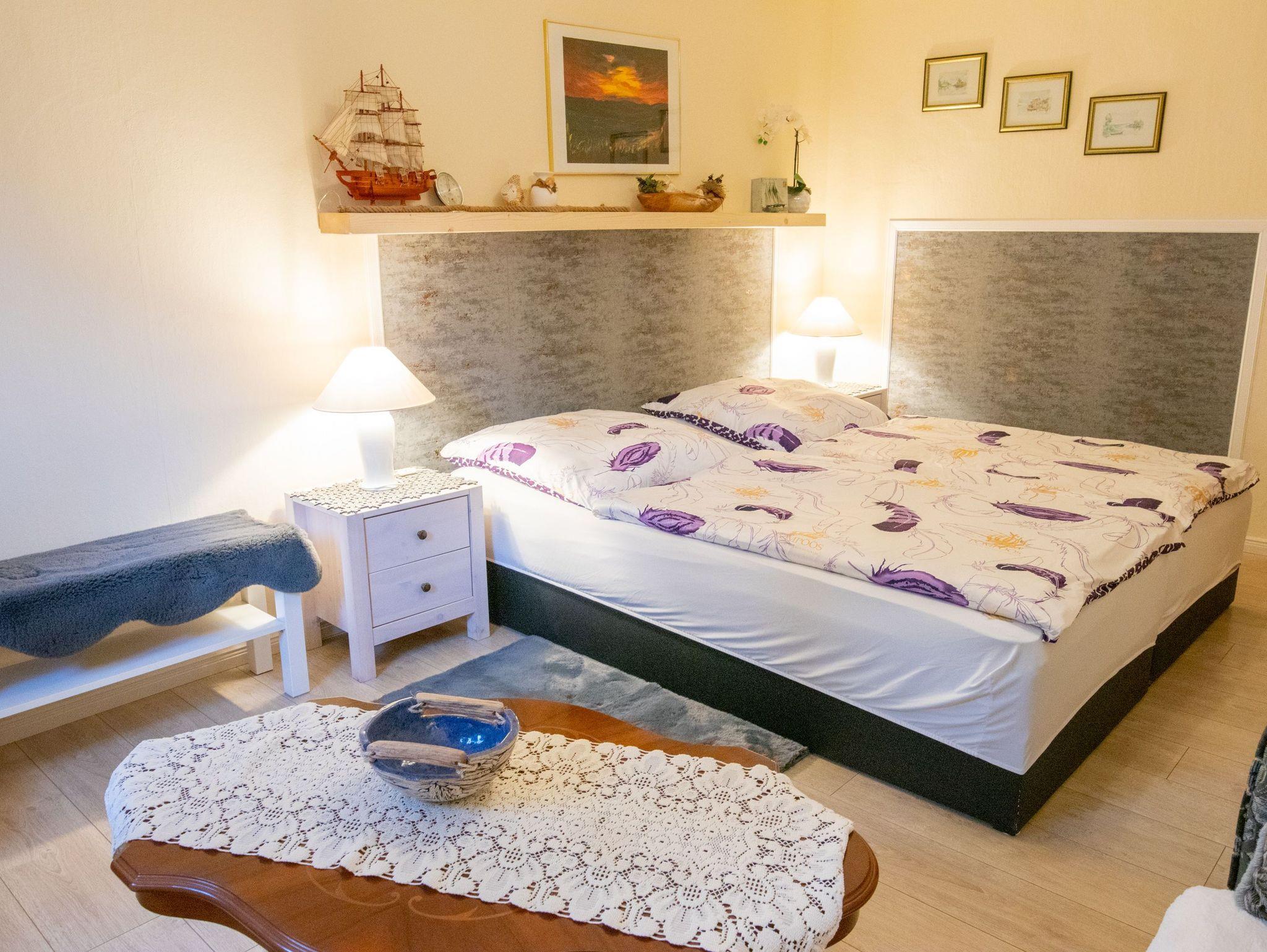in Ortsrandlage direkt am Küstenwald. Zum Strand sind es nur 400 Meter. Die 2-Zimmer-Wohnung verfügt über eine separate Küche mit Sitzecke und Esstisch für 3 Personen, ein Schlafzimmer mit zwei Schlafmöglichkeiten (90x200, getrennt stellbar), ein Zimmer mit Sofa, Schlafsofa (140x200), sowie ein Bad mit Dusche und WC. Der separate Eingang ist über eine Terrasse mit Gartenmöbeln und Grill erreichbar. Auf dem Grundstuck befindet sich ein PKW-Stellplatz, Fahrräder können ebenfalls untergestellt werden. Da sich auf dem Hof ein unbewachter, nicht umzäunter Teich befindet, können wir Buchungen mit Kleinkindern leider nicht realisieren.