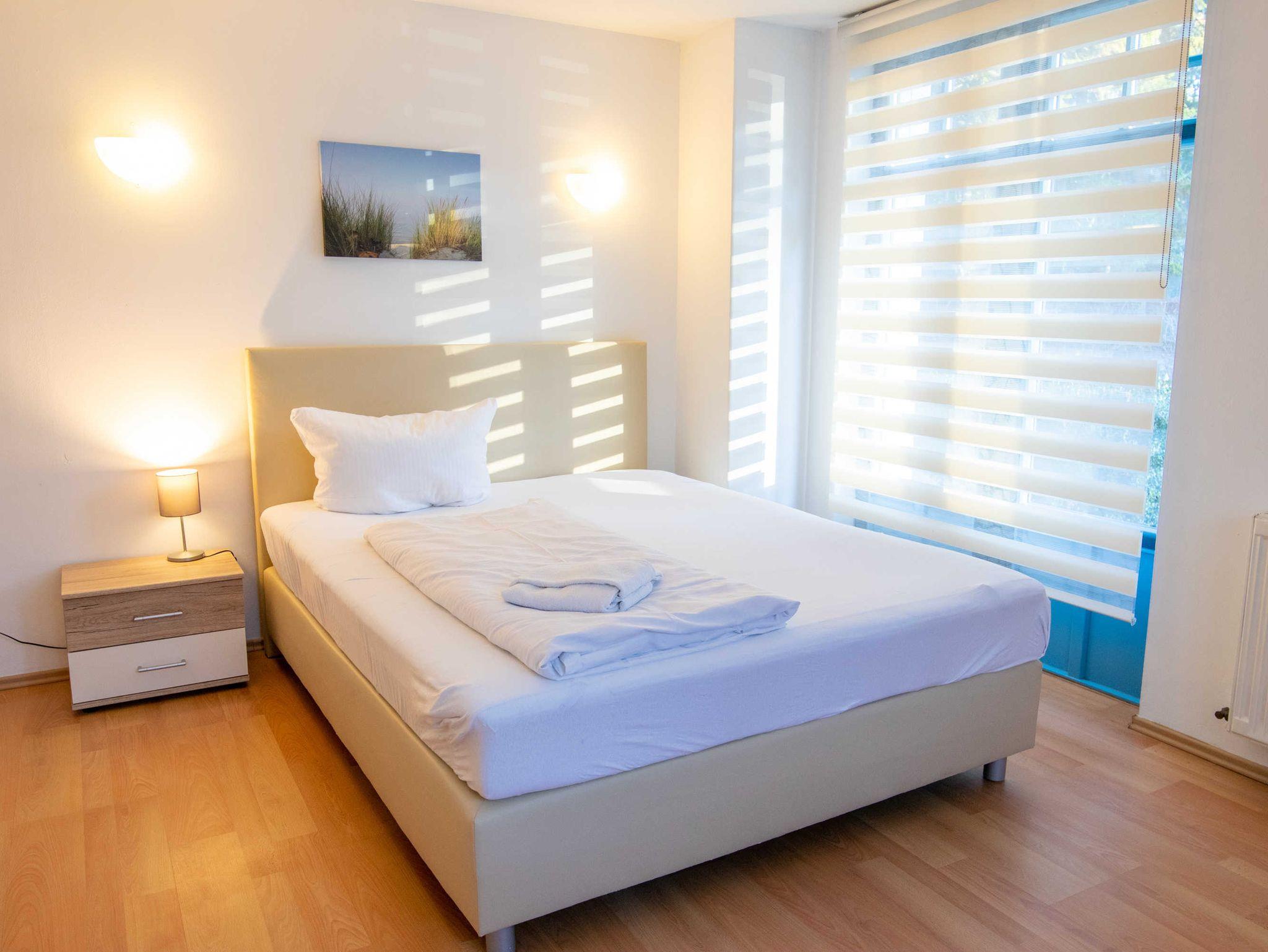 Gemütliches Doppelzimmer in familienfreundlicher Ferienanlage direkt am Greifswalder Bodden mit Strandnaher Lage und Meerblick.