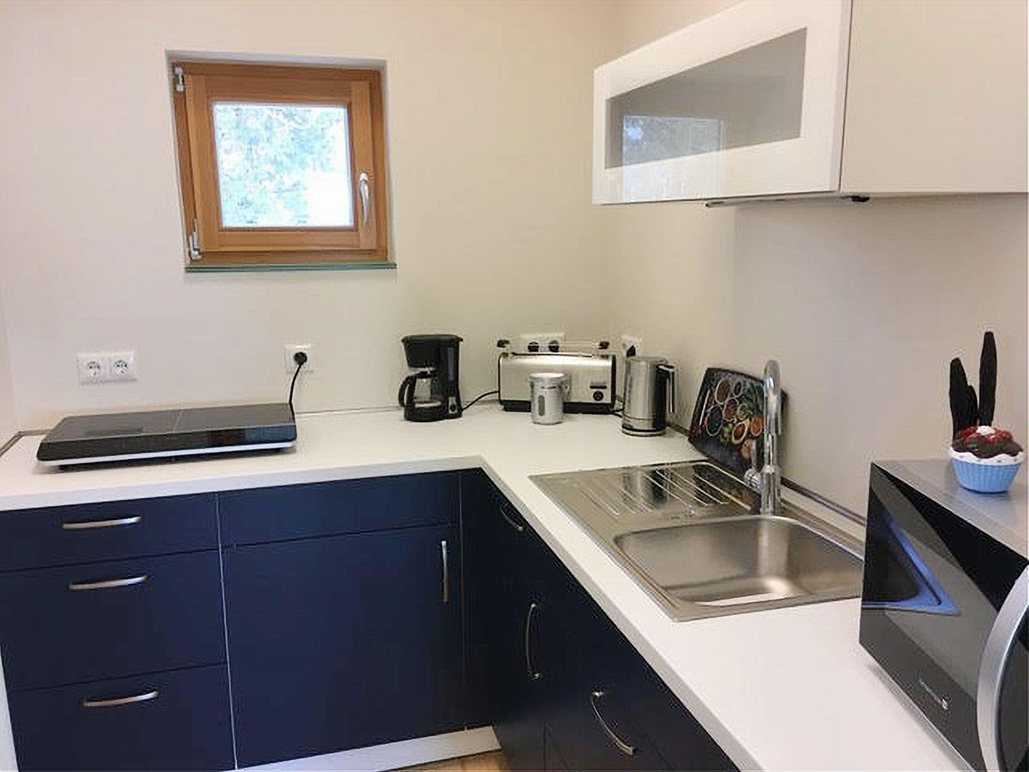 mit Geschirrspüler, 2 Induktionsplatten, Mikrowelle mit Grill, Kühlschrank mit Gefrierfach, Kaffeemaschine,Toaster & Wasserkocher