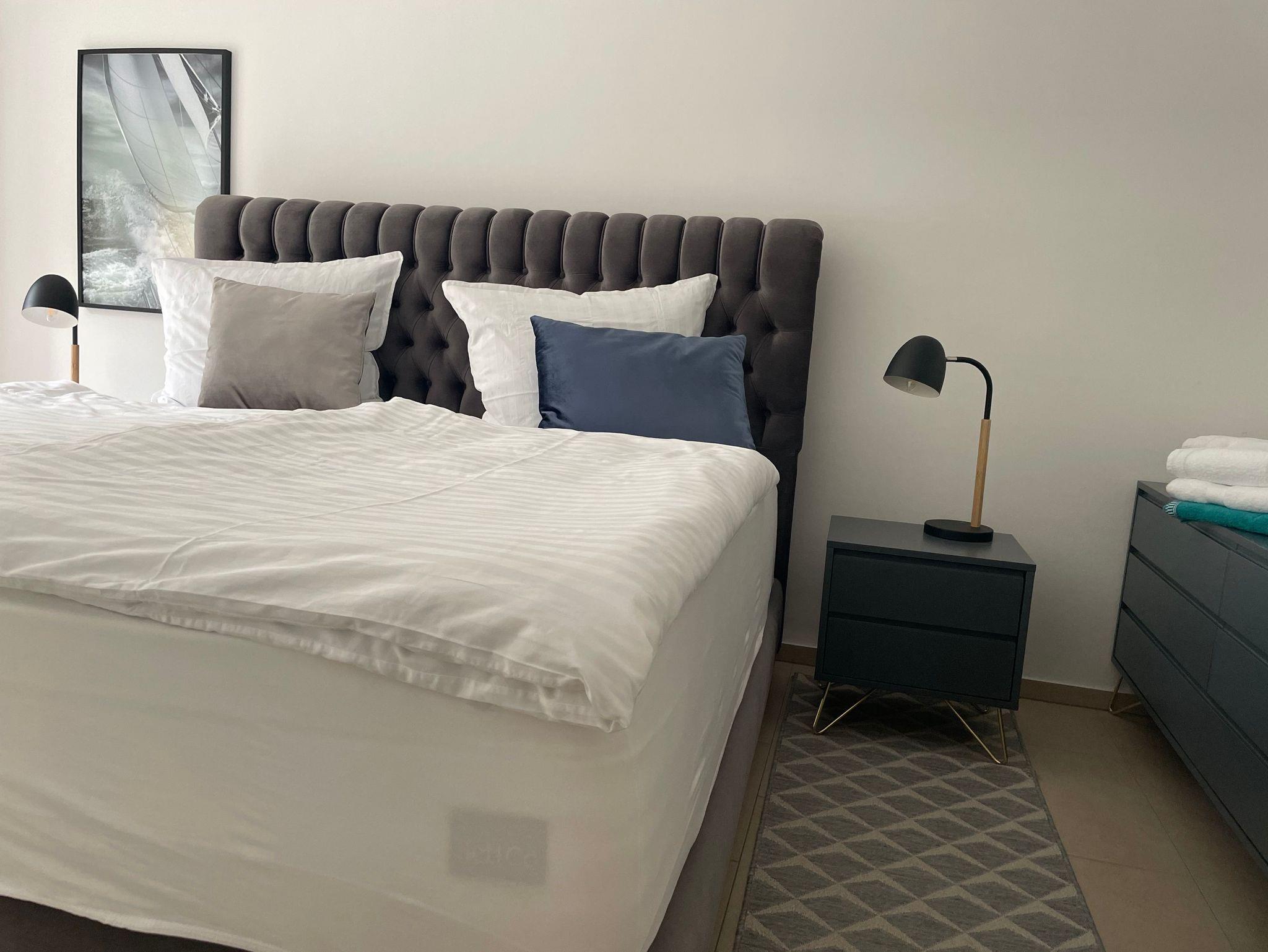 Schlafraum mit einem Boxspringbett der Marke BettCo 2,00 x 2,00 m