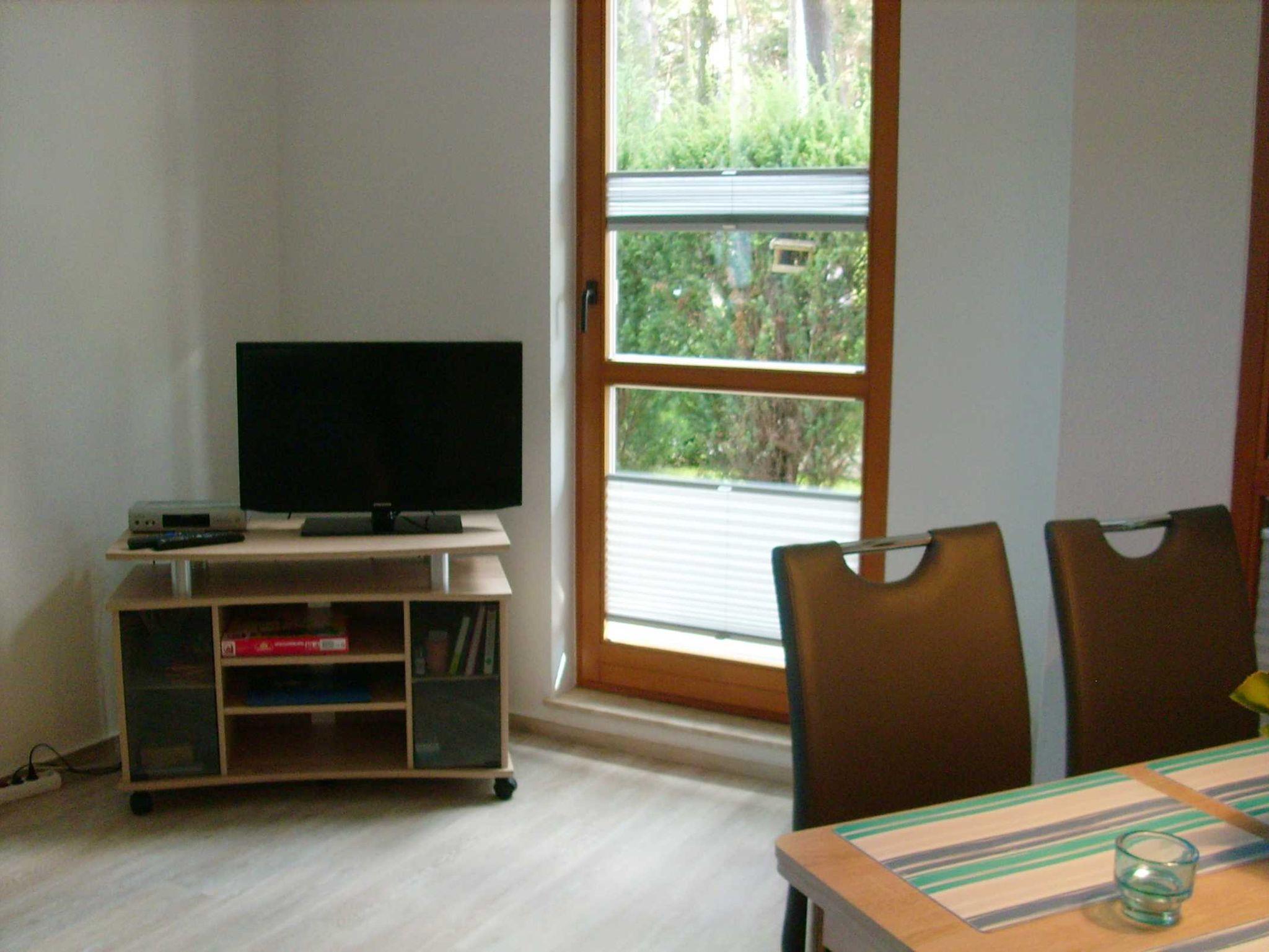 Couch und Flachbild- TV, Radio, Essplatz mit 4 Stühlen, Zugang zur Terrasse
