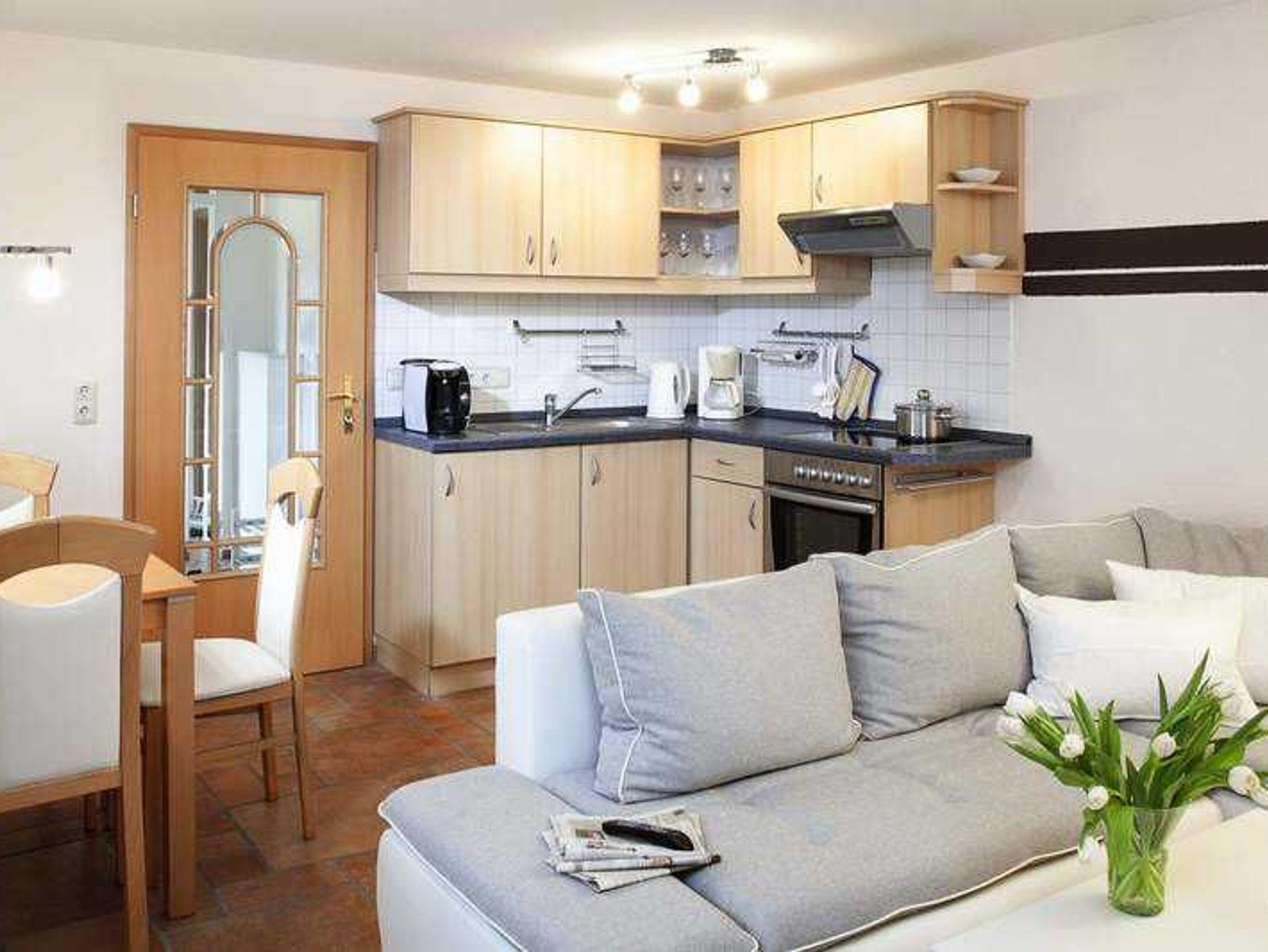 Das komfortabel und modern eingerichtete Ferienhaus „Strandperle“ bietet beste Voraussetzungen für einen entspannten Urlaub an der Ostsee. Im gemütlichen Wohnzimmer lädt eine bequeme Sitzecke mit Flachbild-TV zum Verweilen ein. Für Familien steht eine Schlafcouch zur Verfügung, die sich für eine Aufbettung eines Kindes (bis 14 Jahre) eignet. Die offene Küchenzeile mit Backofen, Kühlschrank und Esstisch ist vollständig ausgestattet und ideal für gemeinsame Mahlzeiten.