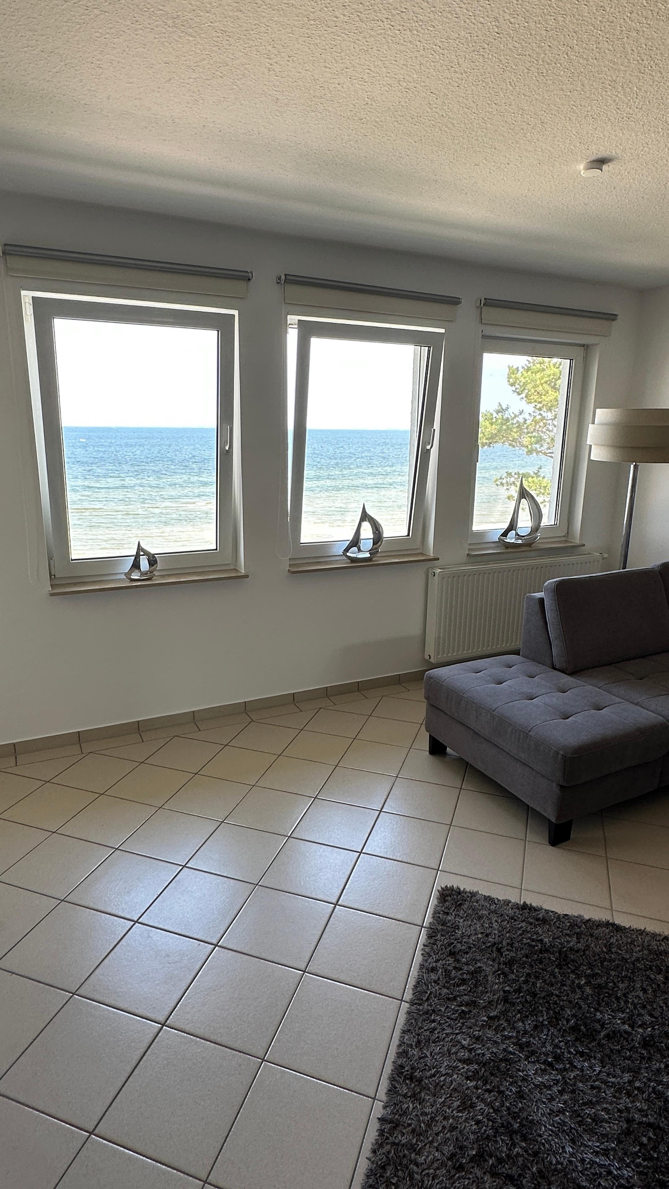 Sie haben vom Wohnzimmer und vom Schlafzimmer einen unverbaubaren Blick auf die Ostsee. Die Wohnung ist direkt von der Tiefgarage mit einem Fahrstuhl erreichbar. Sie befindet sich im 2. OG, Mitte rechts. Auf den Fotos sehen Sie die traumhafte Lage.