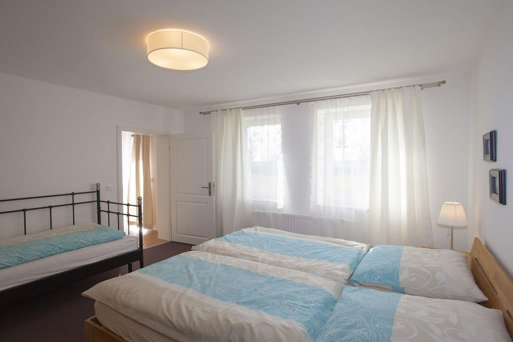 Das Haus wurde 2013/14 neu aufgebaut. Die hier vorgestellte Wohnung Dreischläfer lädt insbesondere Paare mit Kind zu einem erholsamen Urlaub auf der schönen Ferieninsel Rügen ein. Eine vollwertige Küche, ein Schlafzimmer mit Doppelbett und Einzelbett sowie ein grosszügiges Bad lassen keine Wünsche offen. Am Abend laden bequeme Polstermöbel zu einem gemütlichen Fernsehabend ein. Eine grosse, nach Süden gelegene Sonnenterasse garantiert Erholung pur.