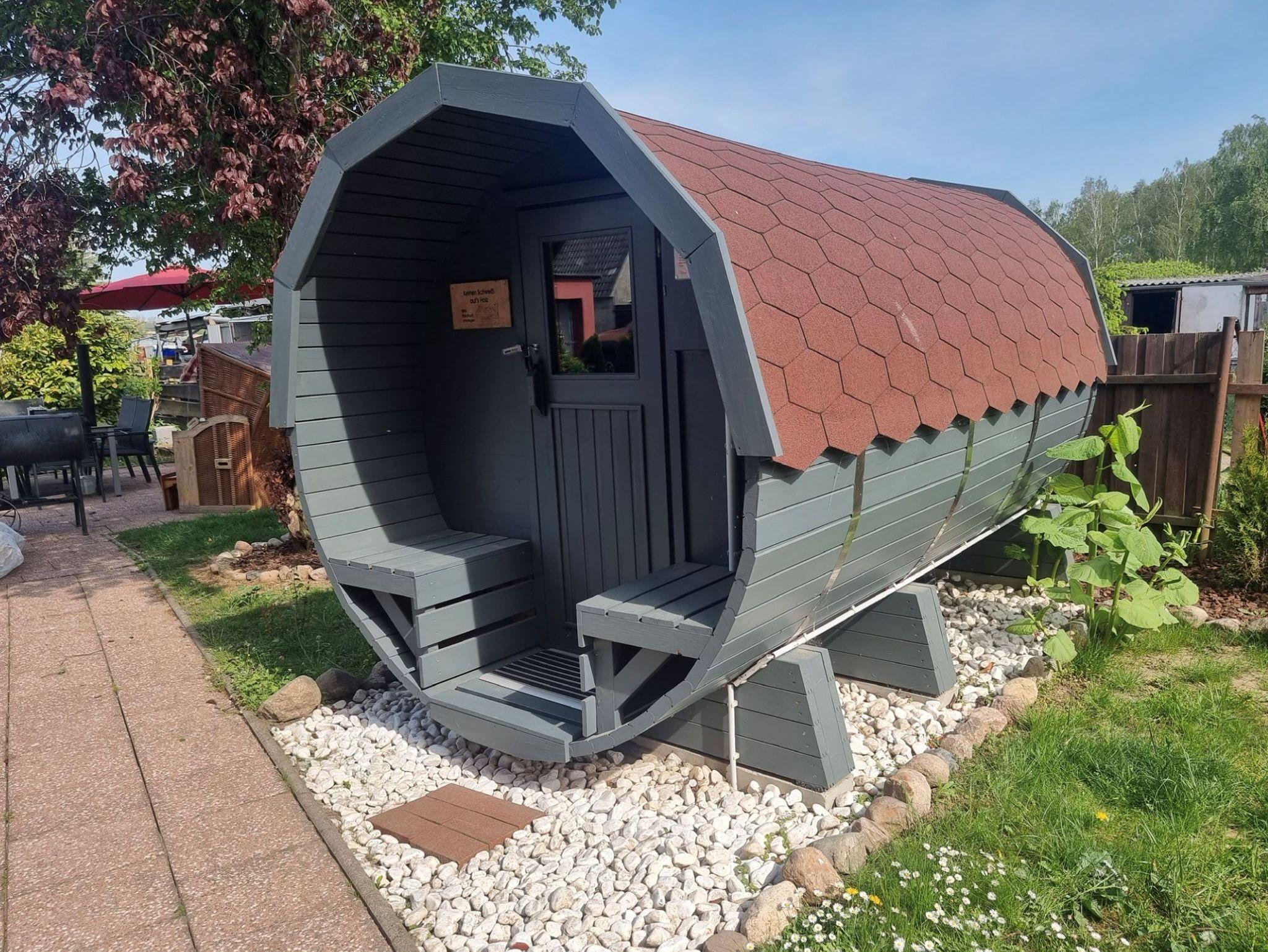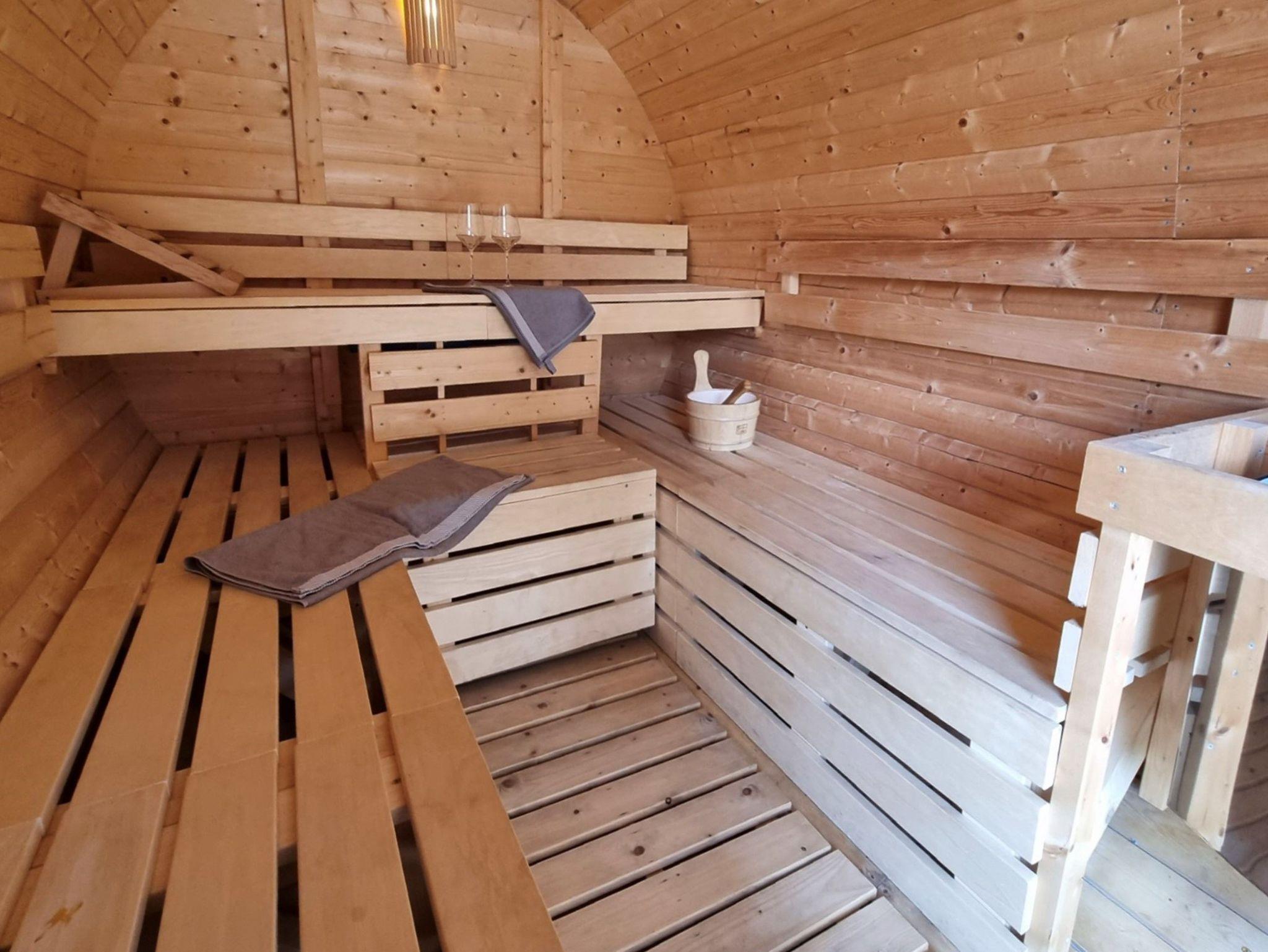 Die Gartenfass-Sauna (geeignet für bis zu 8 Pers.) kann optional für 18,00€ am Tag hinzugebucht werden.
