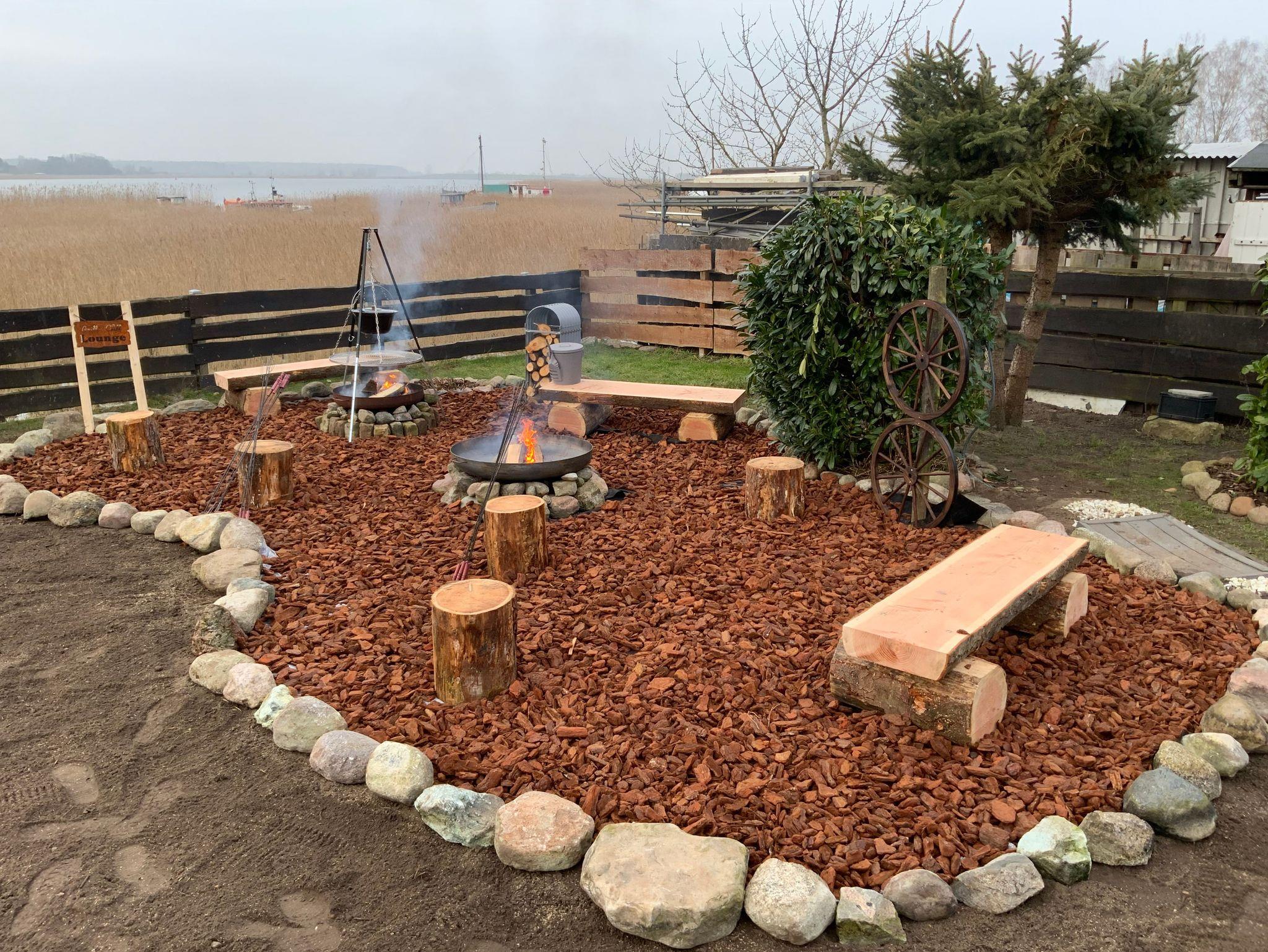 Ein weiteres Highlight ist die urige Grill- und Chill-Lounge im Garten direkt am Peene-Strom. Hier stehen Ihnen zwei Feuerschalen, Stockbrotspiesse, ein grosser Gulaschtopf und ein Grillrost zur Verfügung. Hier oder auf der danebenliegenden Terrasse können Sie Ihre gemütlichen Grillabende verbringen.