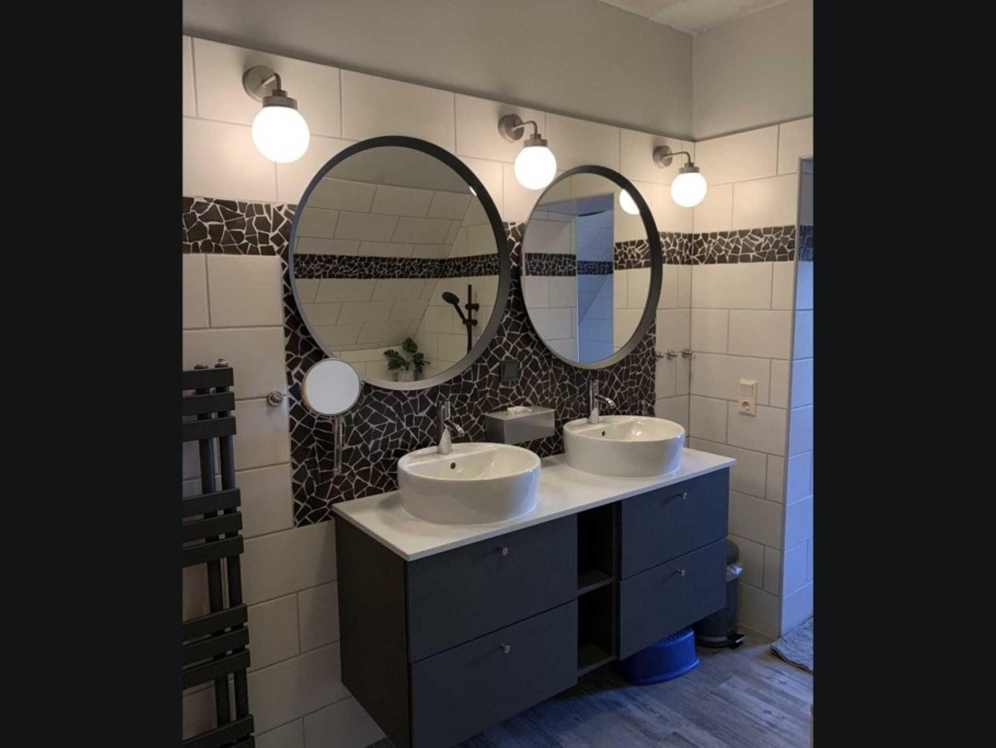 Das Haus ist hochwertig möbliert. Ihnen stehen 6 Schlafzimmer mit Betten (besonders hochwertige Matratzen/Lattenroste, 3 Schlafzimmer haben moderne Boxspringbetten), ein Zimmer (mit Schlafsofa für 2), ein großes Wohnzimmer (48qm) mit einem für 18 Pers. geeignetem Esstisch und dem anschließenden Wintergarten (45qm) mit Blick auf den Peene-Strom zur Verfügung. Direkt an den Wintergarten schließt sich eine möblierte, überdachte Terrasse an. Ein Schlafzimmer im Obergeschoss hat einen Lesebereich und das Panoramafenster mit traumhaftem Blick auf das Wasser, ein anderes Schlafzimmer im Obergeschoss verfügt über eine bezaubernde, möblierte Loggia. Das Bad im OG hat WC /Dusche und eine große Eckbadewanne. Ein Bad befindet sich im EG mit Dusche und WC. Zwei weitere Bäder mit Dusche/WC befinden sich im Souterrain. Morgendlicher Stau ist hier fast ausgeschlossen. Die Küche im EG ist nur mit Markengeräten ausgestattet: Geschirrspüler, Tiefkühlschrank, Kühlschrank, Mikrowelle, 4-Felder-Ceran-Herd, Backofen, Abzugshaube, Toaster, Wasserkocher, Kaffeemaschine und reichlich Geschirr und Besteck (übrigens befindet sich im Souterrain eine weitere, ganz ähnliche Küche). Gewürze, Essig und Speiseöl stehen Ihnen kostenfrei zur Verfügung. Im Haus befinden sich 3 Kaminöfen, in jedem Stockwerk einer. Kaminholz steht kostenfrei zur Verfügung. Das Haus ist ausgestattet mit drei Smart-TV-Flachbildschirmen (auf jeder Etage einer) und zwei HiFi-Anlagen sowie Echoplus ALEXA. WLAN Internet ist kostenlos. Beheizt wird das Haus durch eine moderne Holzpelletheizung.