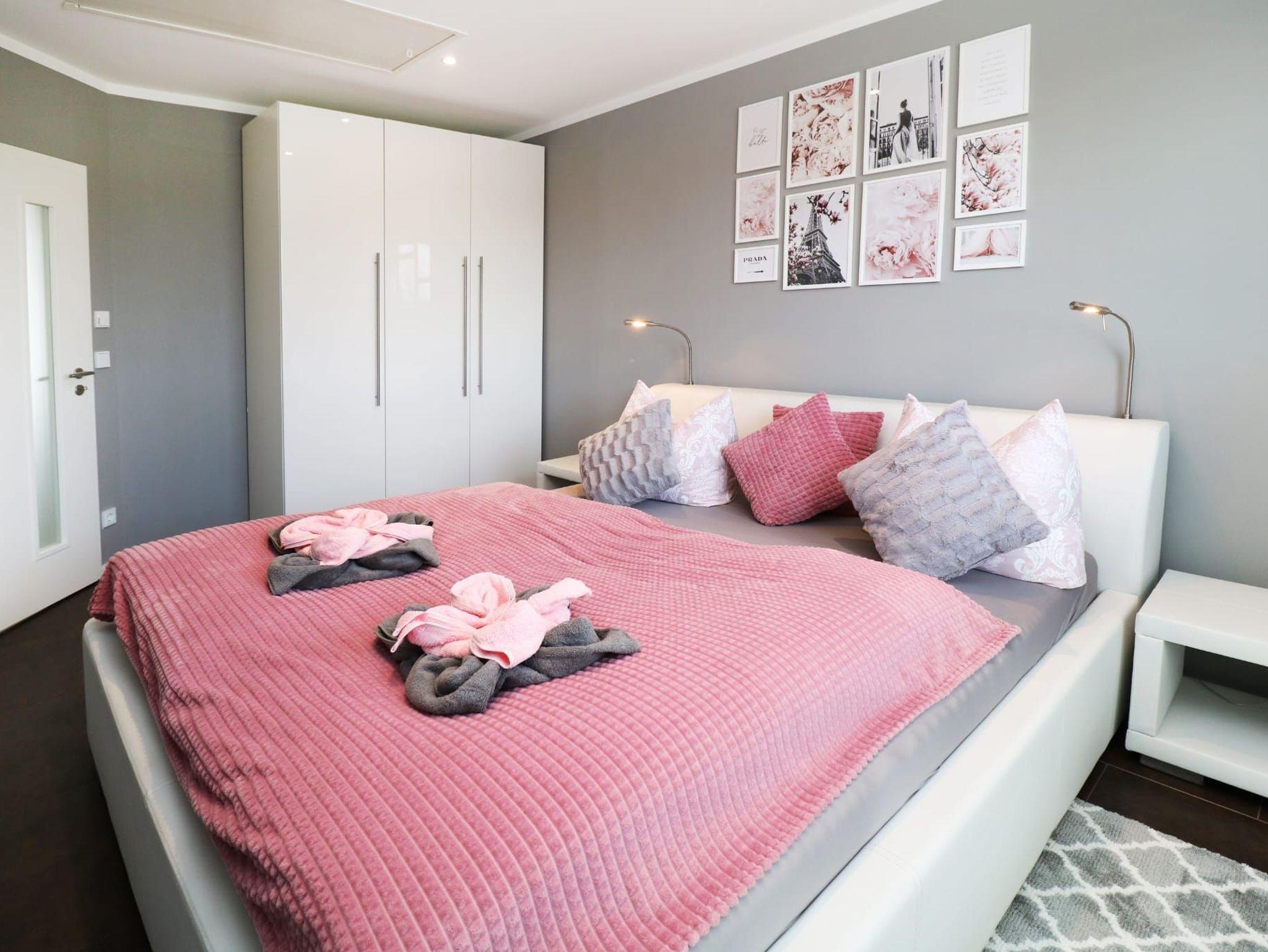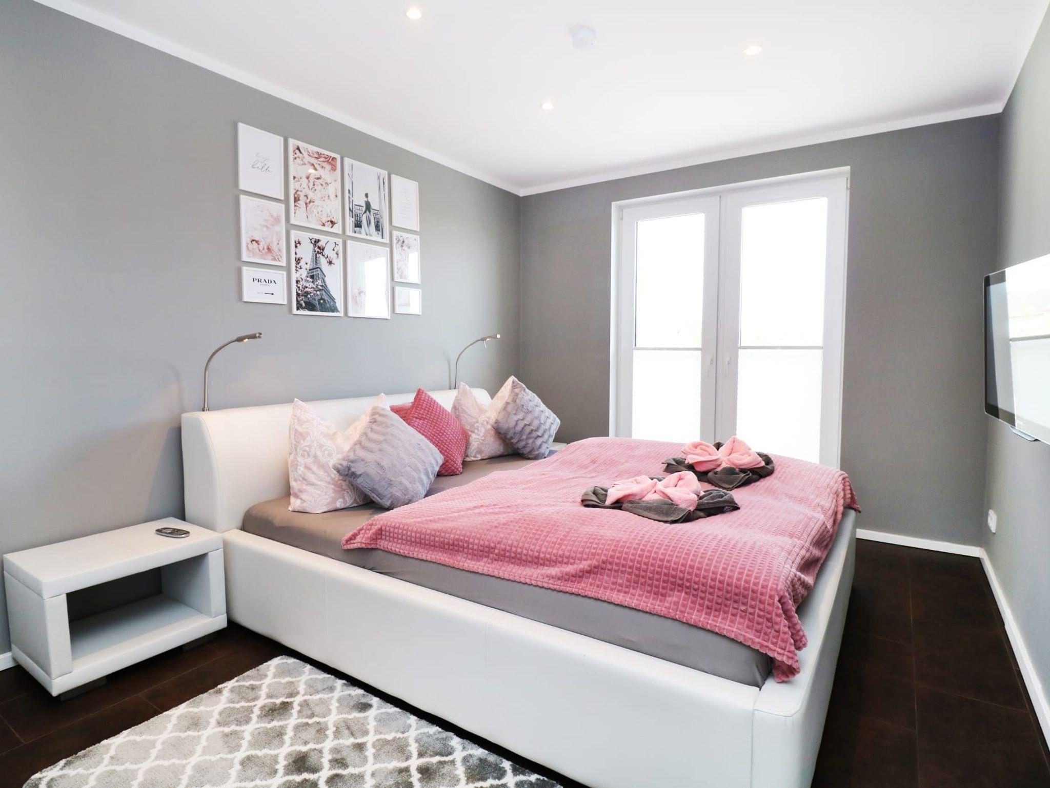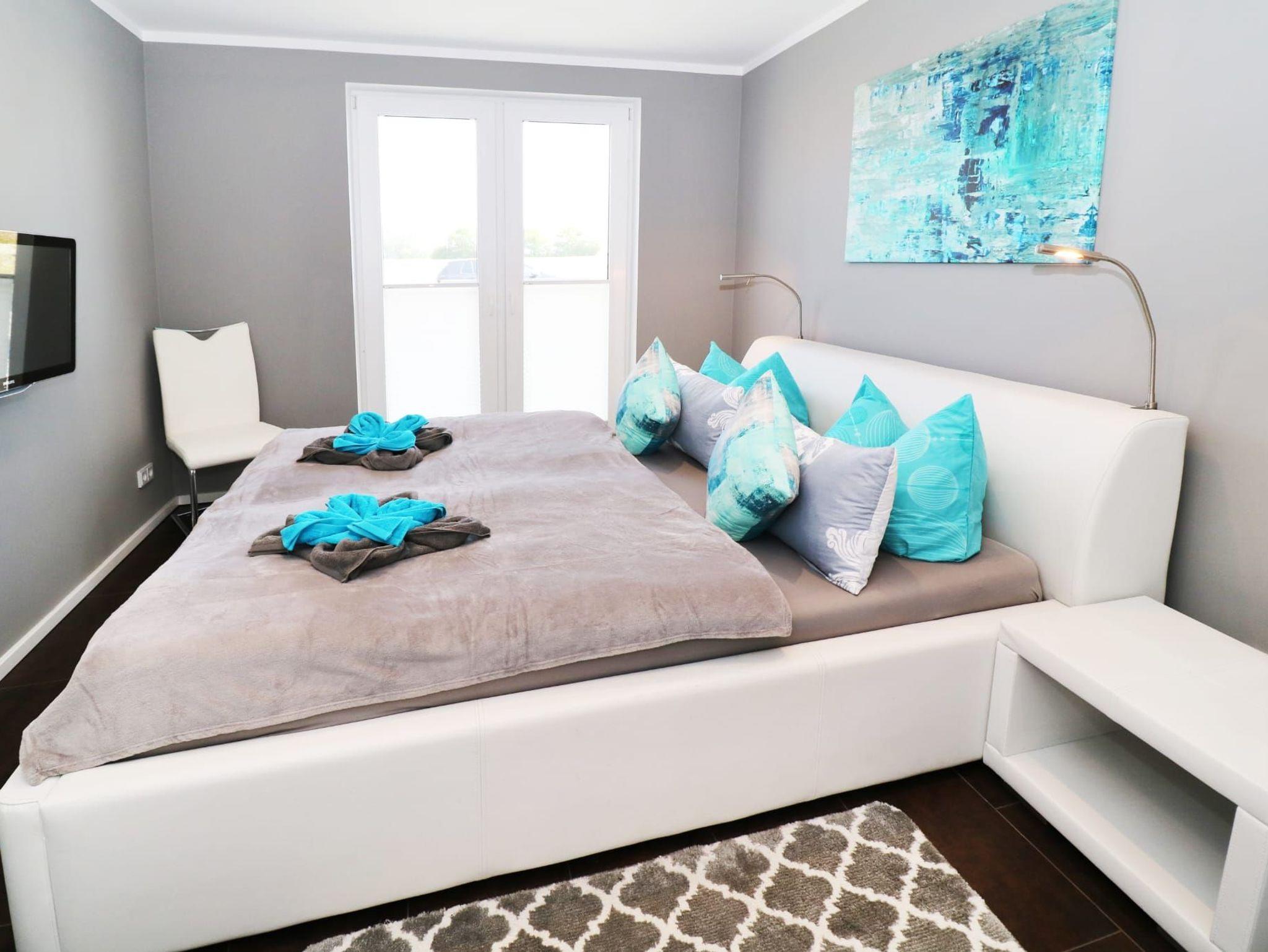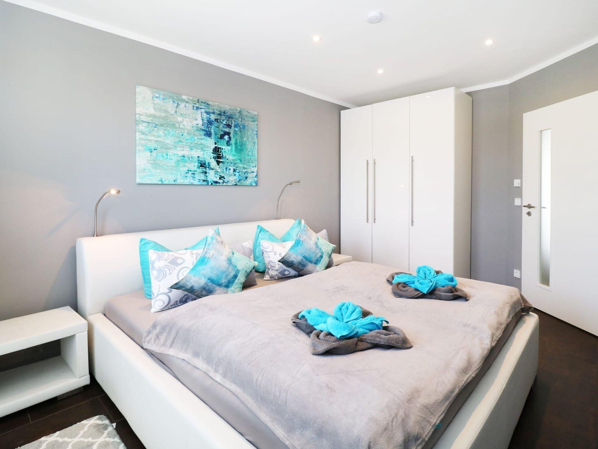 Beide separaten Schlafzimmer sind jeweils mit einem komfortablen Doppelbett, Flachbild-TV, Kleiderschrank und Verdunklungsrollos ausgestattet und bieten erholsamen Schlaf.