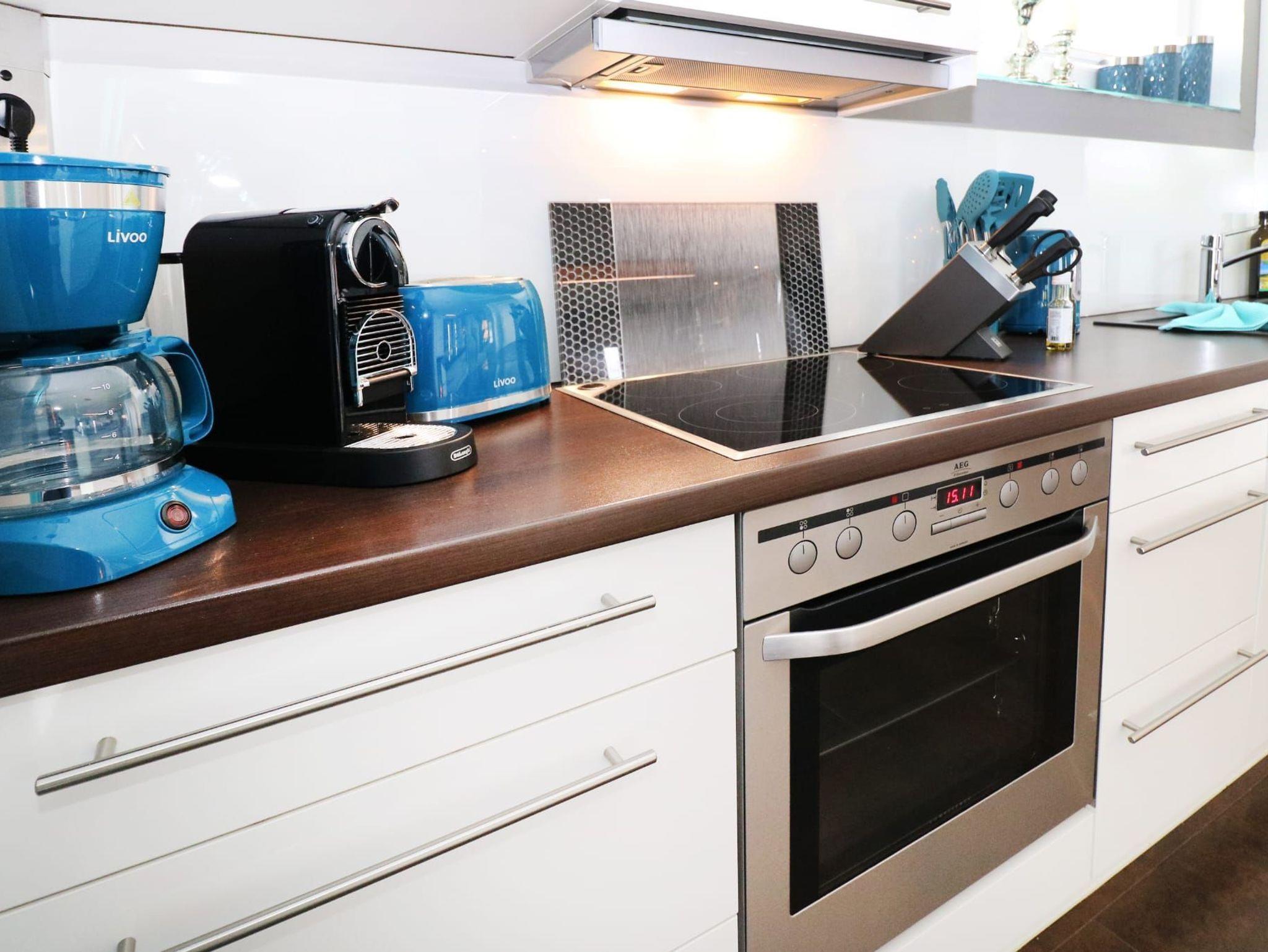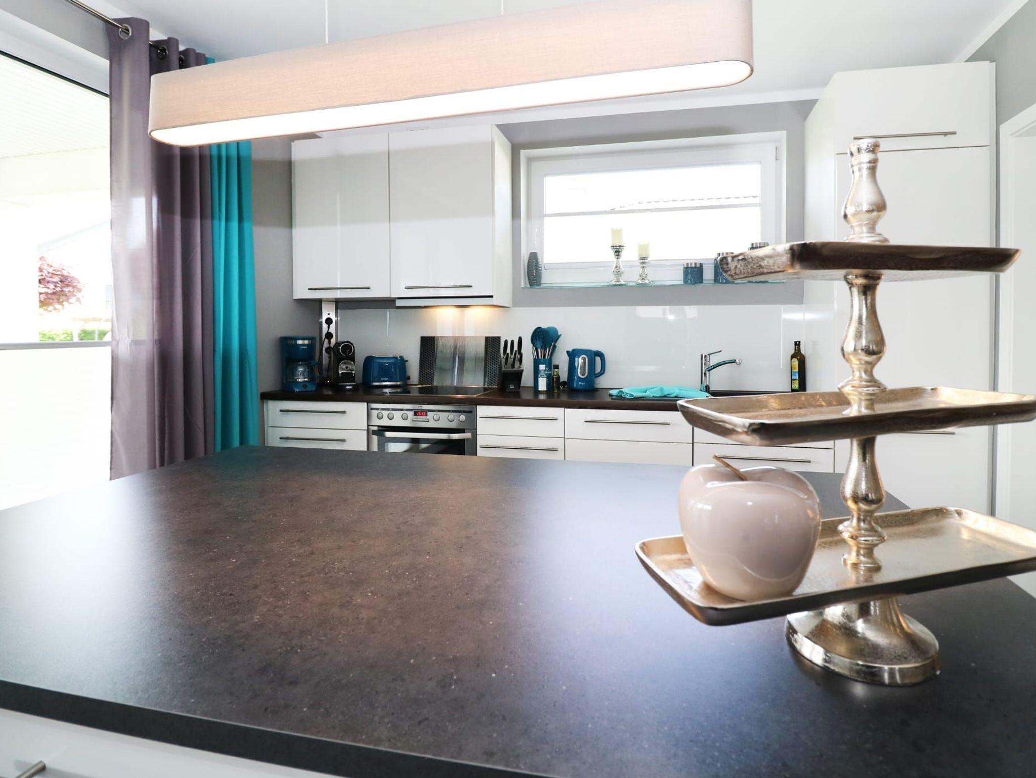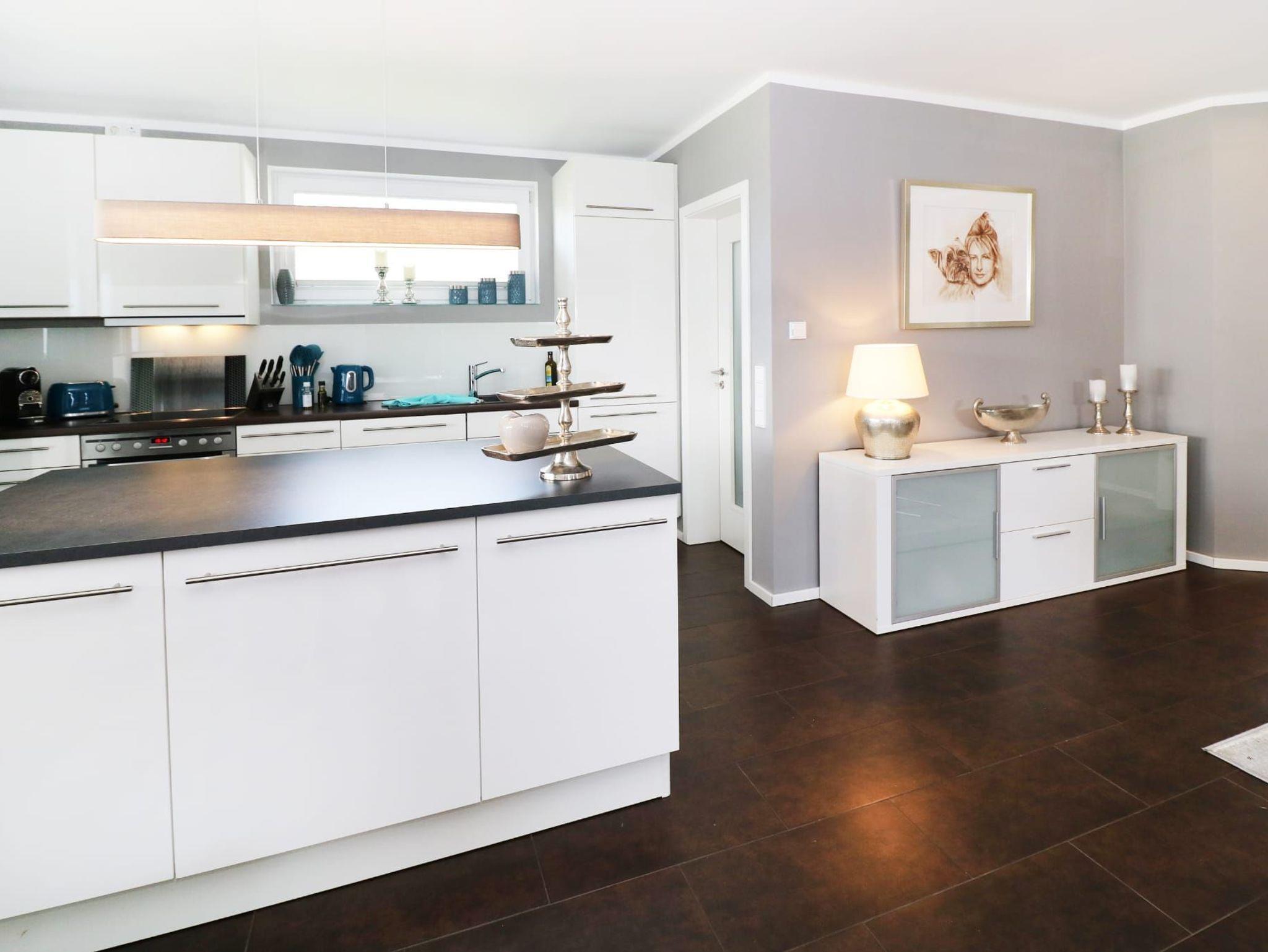 Die moderne, hochwertig ausgestattete Küche verfügt über Ceranfeld, Backofen, Kühlschrank mit Gefrierfach, zusätzlichen Tiefkühler, Geschirrspüler, Kaffeemaschine, Wasserkocher und Toaster ? perfekt für gemeinsame Kochabende.