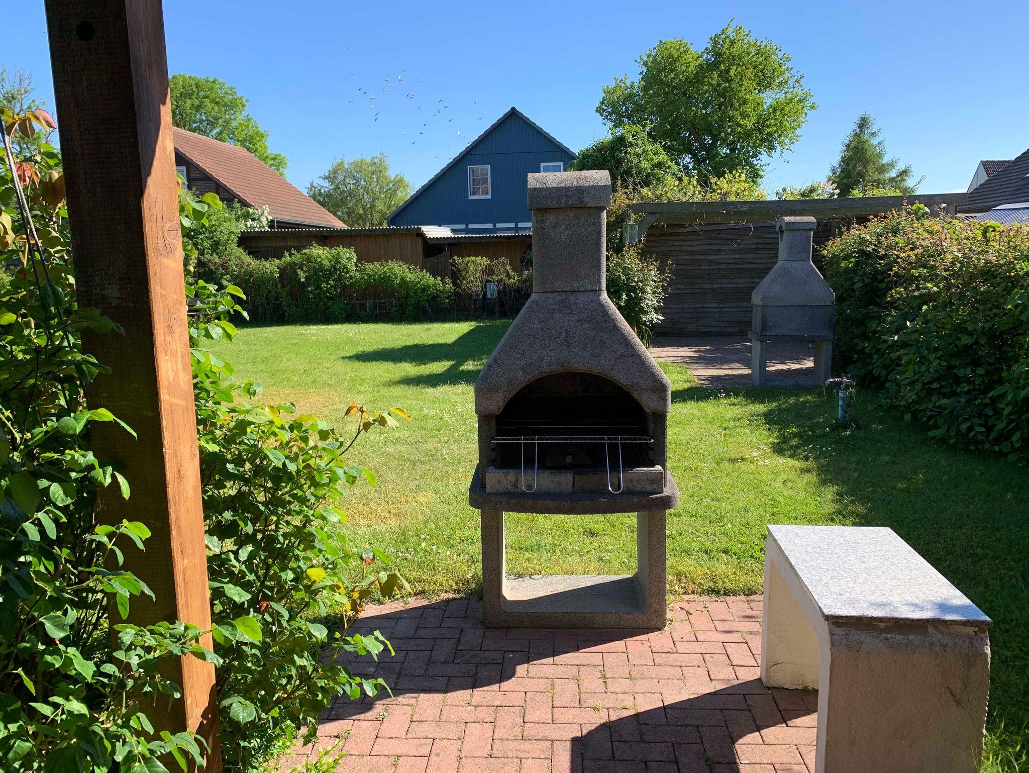 Der großzügig angelegte Garten mit jeweils zwei Grillplätzen und einem wetterfesten Unterstand, Sonnenliegen sowie einem abschließbaren Fahrradschuppen, steht allen Gästen zur Verfügung.