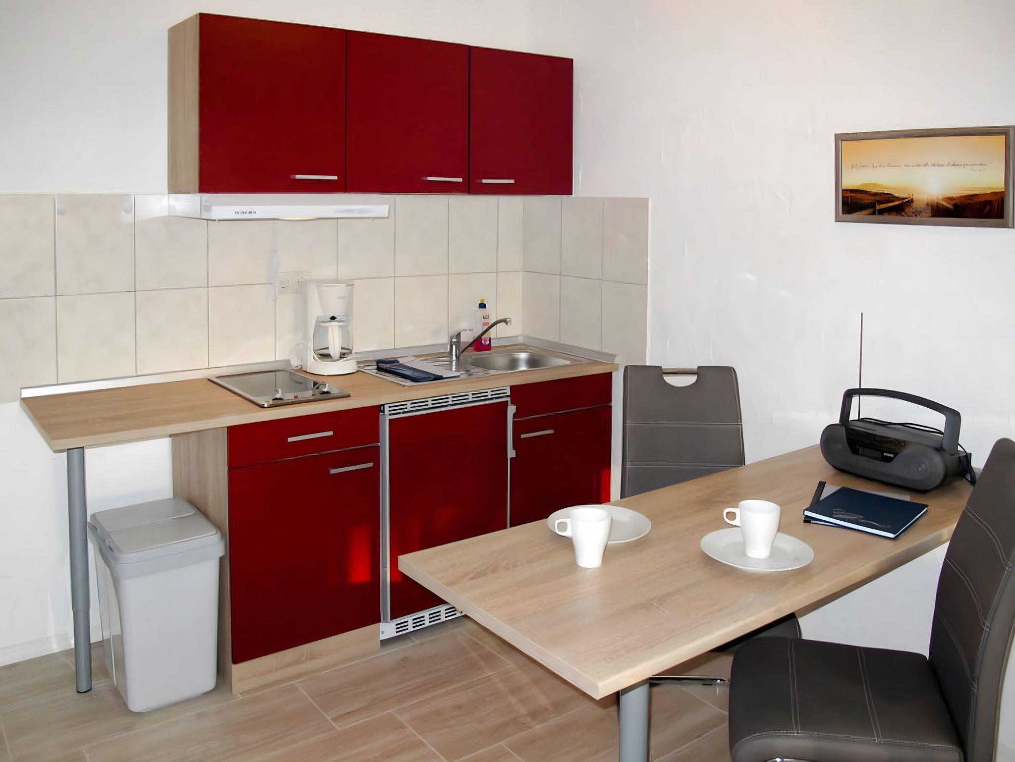 Das Appartement Wolkenlos01 begeistert mit einer einladend modernen Einrichtung und liebevoll ausgewählten Accessoires mit Bezug zur Ostsee ? ein echtes Highlight für alle, die Komfort und Stil lieben! Auf 35 m² finden 2 Personen und ein Kleinkind viel Platz zum Entspannen und Wohlfühlen. Die Wohnung überzeugt mit einem hellen, offenen Wohn-/Schlafzimmer, das mit einem gemütlichen Doppelbett und einer bequemen Sitzgelegenheit ausgestattet ist. Der abgetrennte Küchenbereich mit Essplatz bietet Ihnen alles, was Sie für eine schnelle Mahlzeit oder ein kräftigendes Frühstück brauchen ? von Kühlschrank über Cerankochfelder bis hin zu Mikrowelle, Kaffeemaschine, Wasserkocher und Toaster.