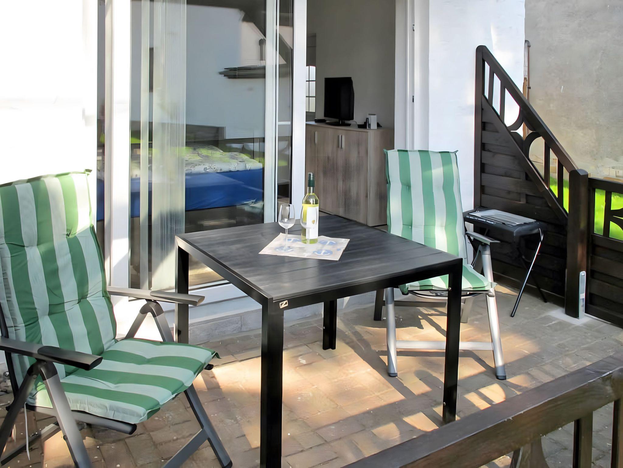Die zur Ferienwohnung gehörende Terrasse mit Gartenmöbeln ist der perfekte Ort, um einen wunderschönen Urlaubstag bei einem Glas Wein ausklingen zu lassen ? genießen Sie die Ruhe und Schönheit der Umgebung!