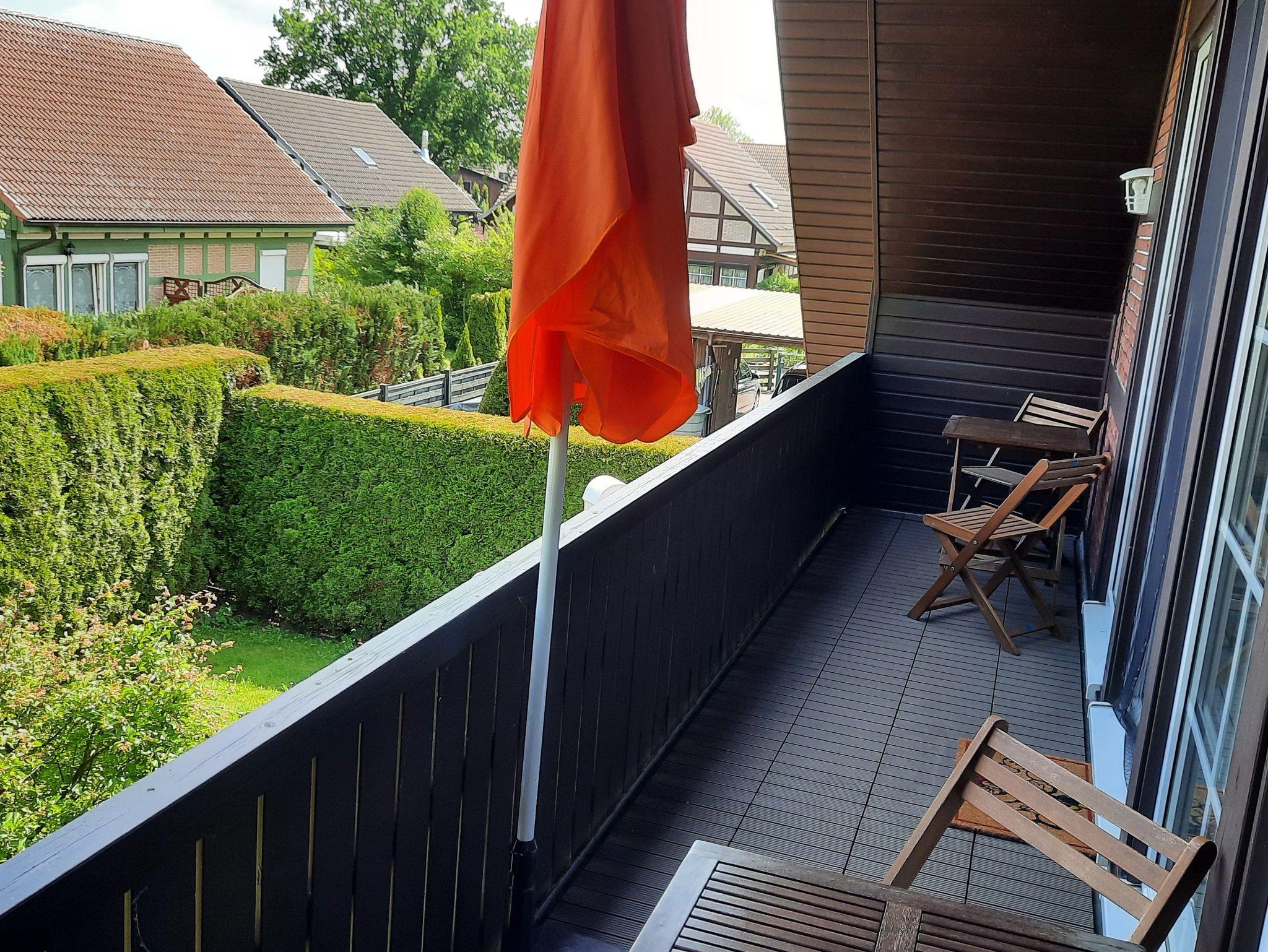 ? Obergeschosswohnung (ca. 61 m²): 2 Schlafzimmer, Bad (Dusche + Badewanne), gemütlicher Wohnn/ Essbereich, Balkon + separates Gartenabteil mit Grill. Keine Hunde erlaubt.
