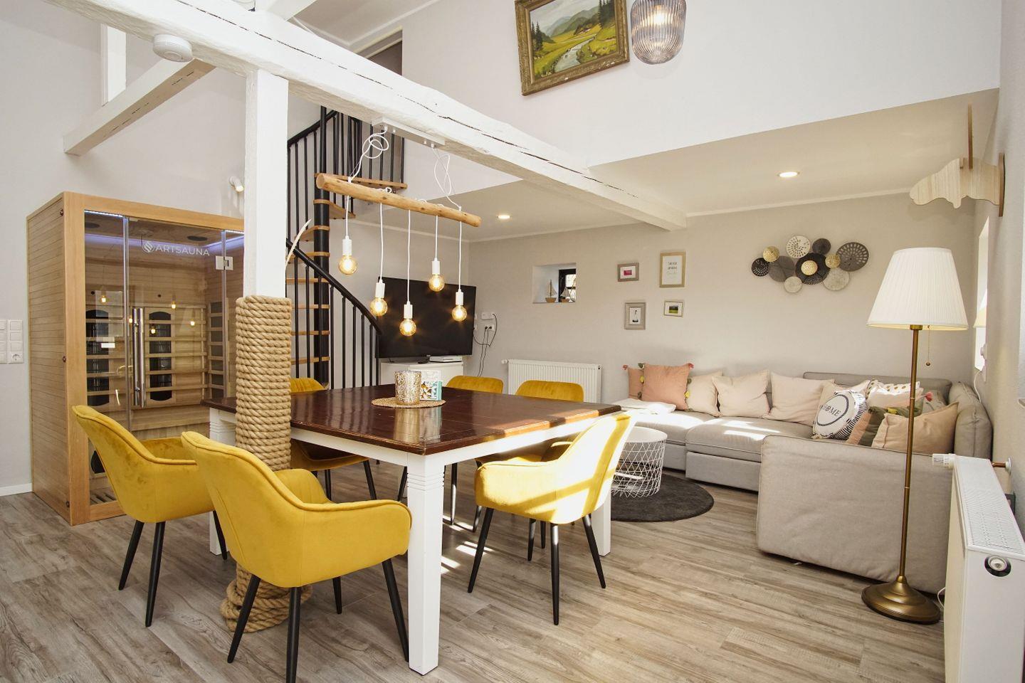 Gemütliche Maisonette-Ferienwohnung mit Sauna nahe dem Meer und freiem Zugang zum Erlebnisbad in idyllischem Middelhagen.