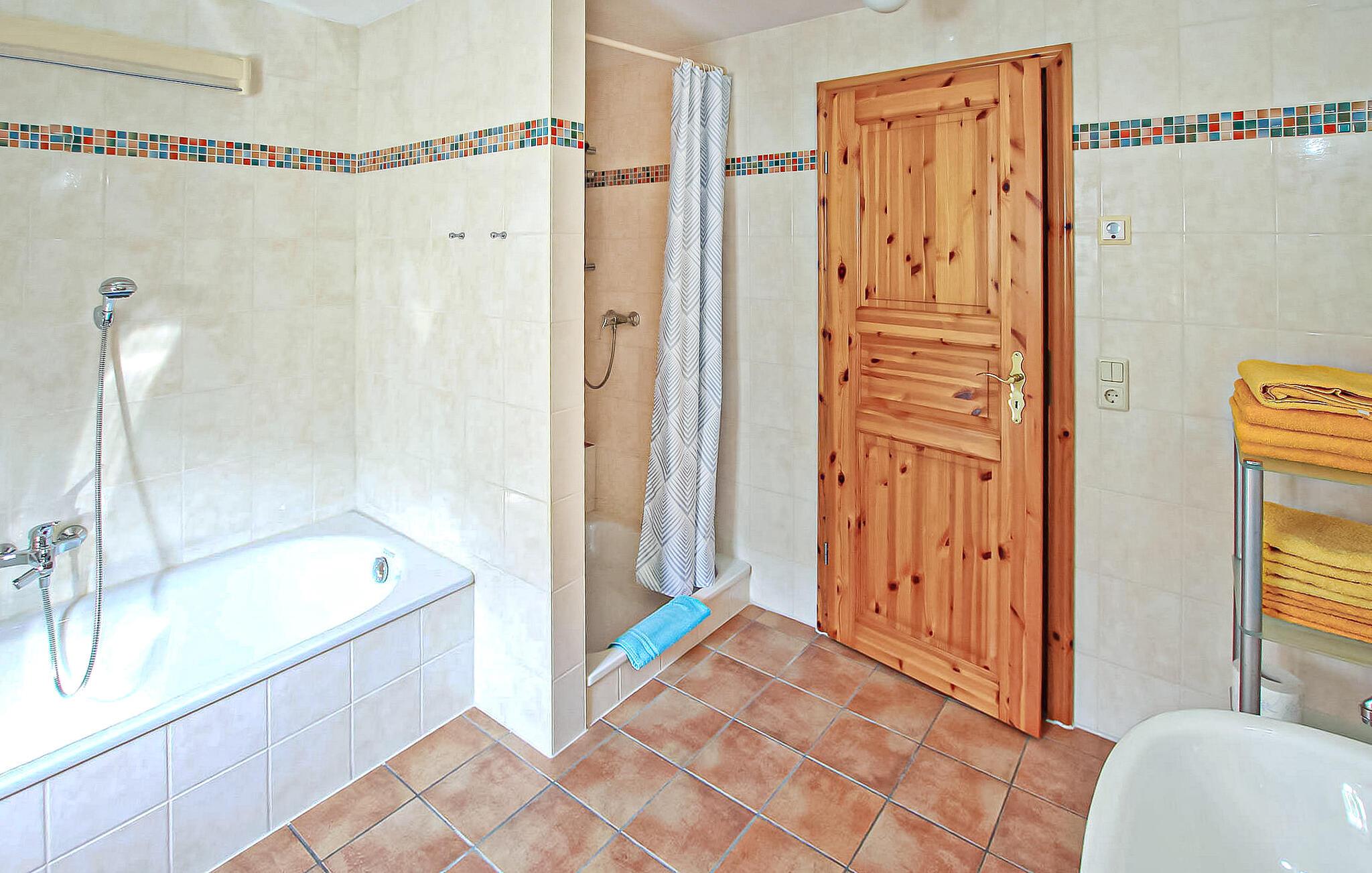 - WC mit warmem und kaltem Wasser, Dusche und Badewanne