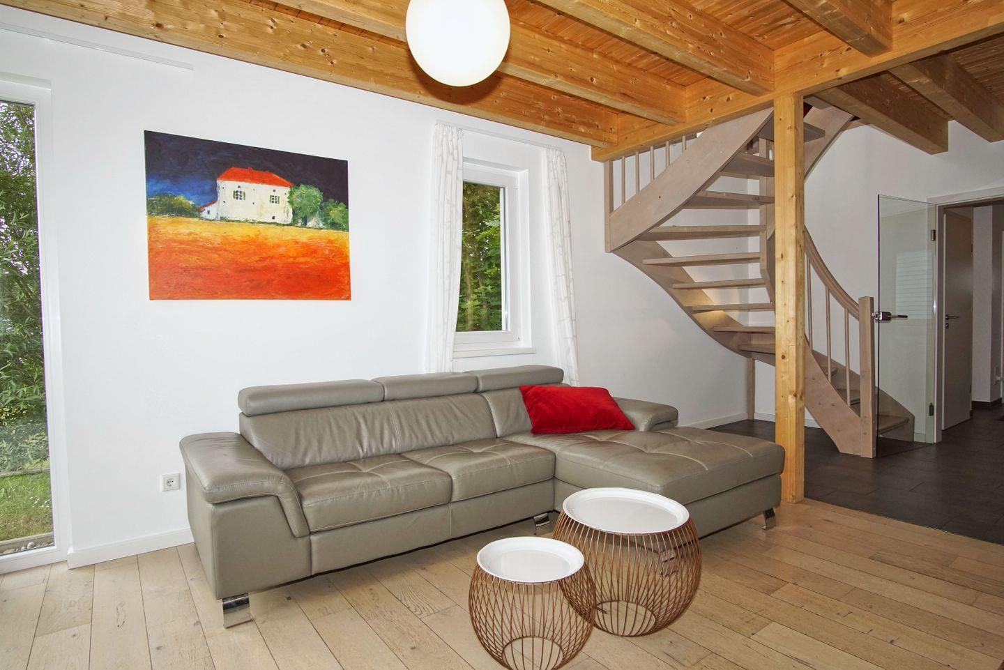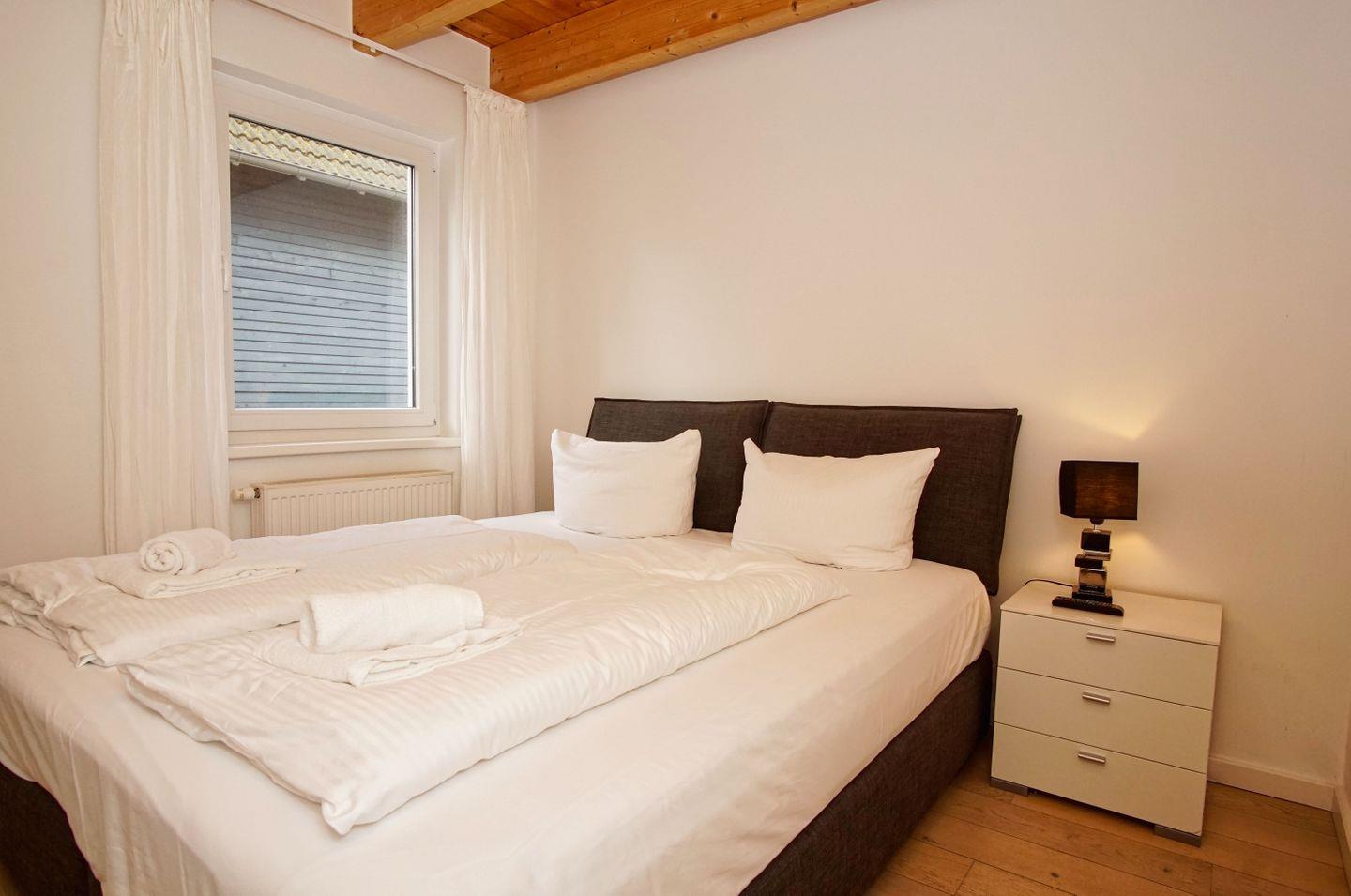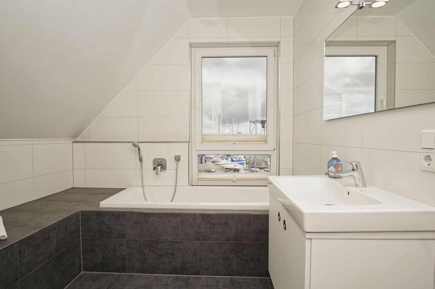 Die Haushälften sind top modern eingerichtet und komfortabel ausgestattet. Flachbild-TV im Wohnzimmer und in jedem Schlafzimmer, voll ausgestattete Küche, 2 Badezimmer, hauseigene Sauna, Terrasse mit Blick auf den Hafen und die Ostsee und vieles mehr versprechen einen traumhaften Urlaub auf Rügen.