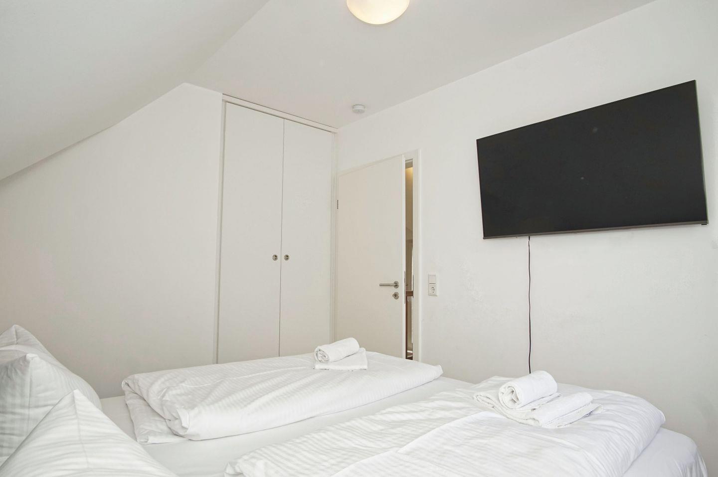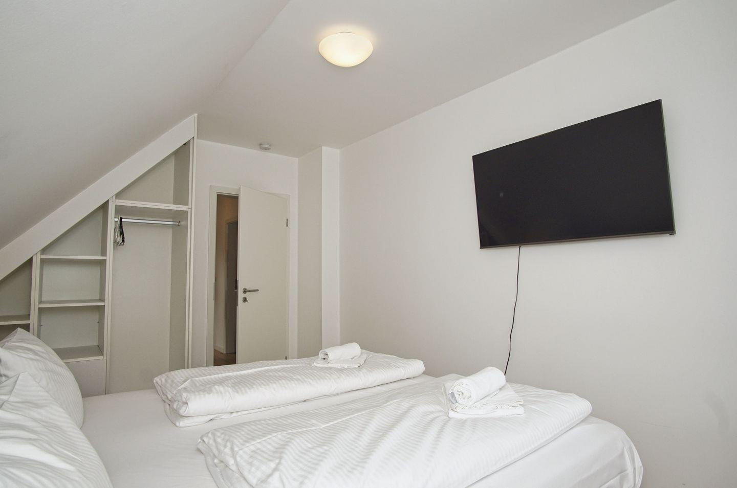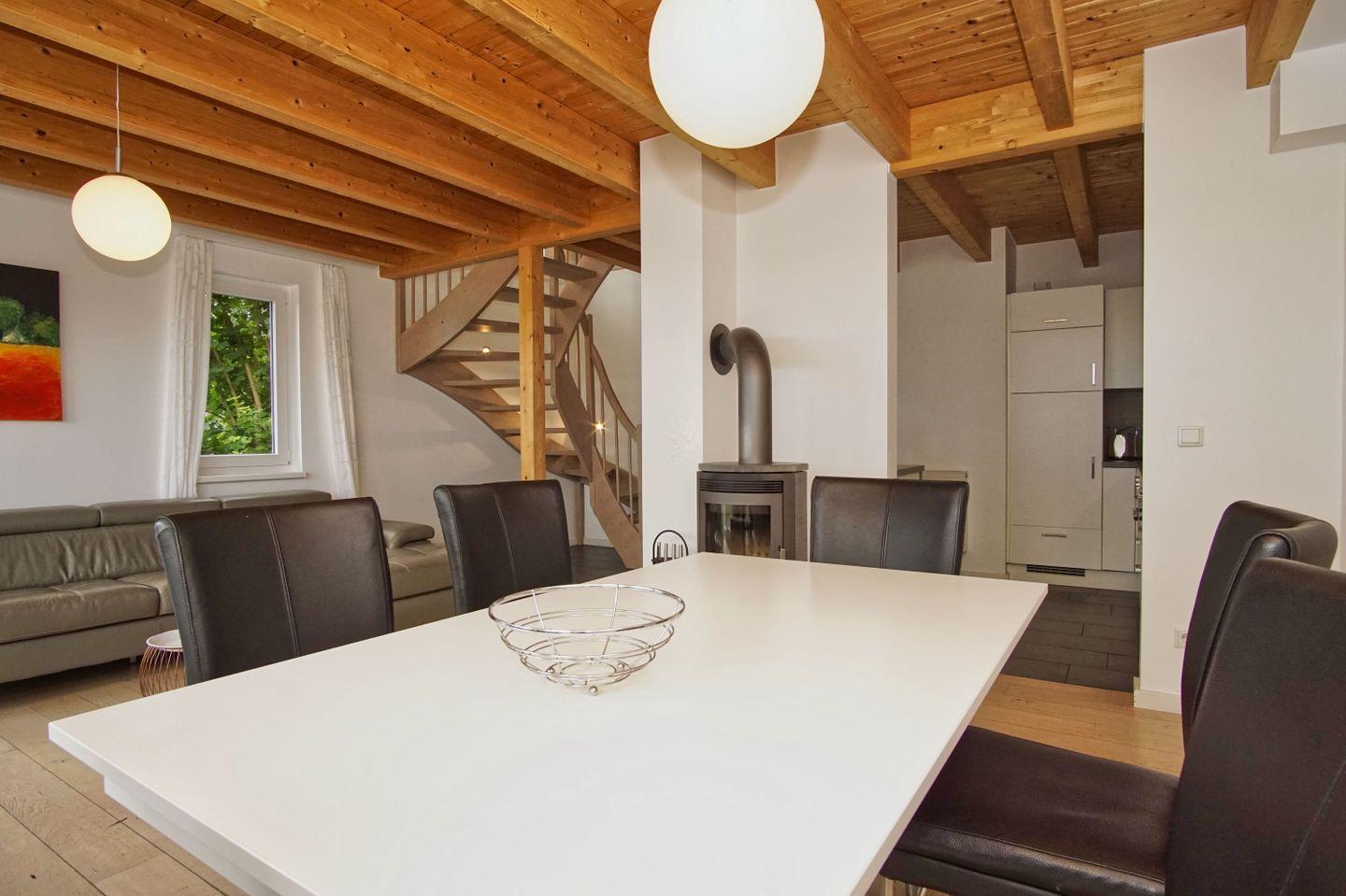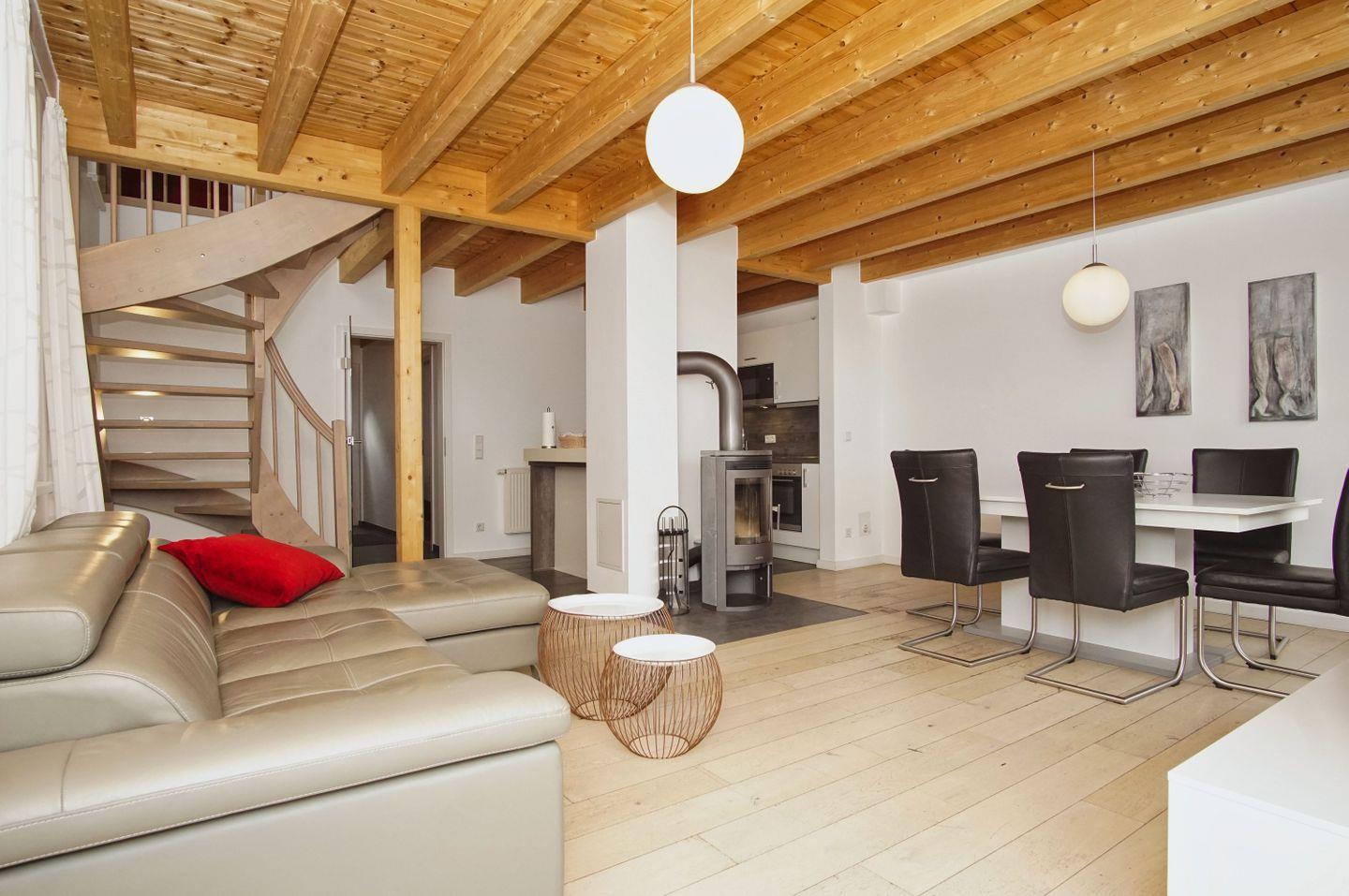 Die Haushälften sind top modern eingerichtet und komfortabel ausgestattet. Flachbild-TV im Wohnzimmer und in jedem Schlafzimmer, voll ausgestattete Küche, 2 Badezimmer, hauseigene Sauna, Terrasse mit Blick auf den Hafen und die Ostsee und vieles mehr versprechen einen traumhaften Urlaub auf Rügen.