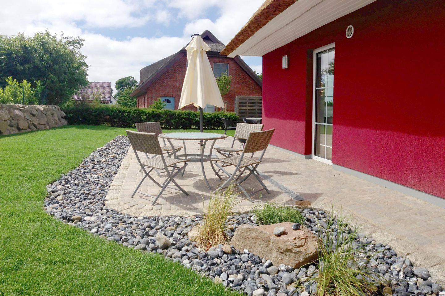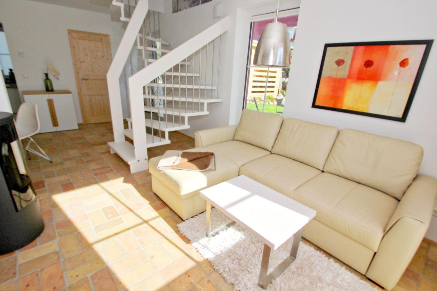 Schickes Ferienhaus Falke mit Meerblick, Kamin, Terrasse und Garten in ruhiger Lage auf Rügen.