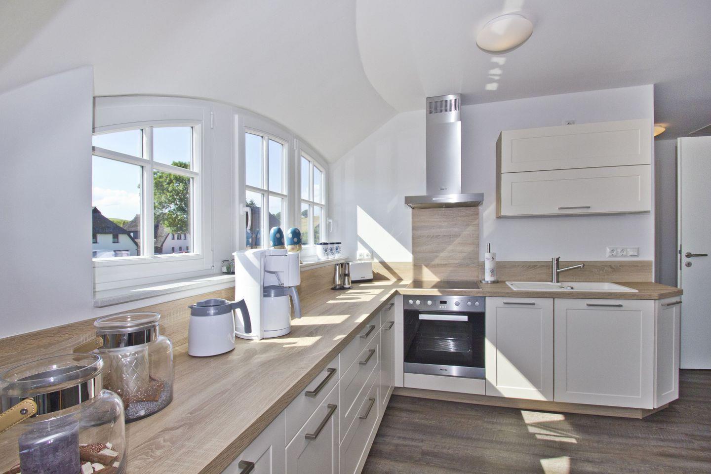 KÜCHE// offene Küche, 4-Platten Ceranherd, Spülmaschine, Kühlschrank mit Gefrierfach, Backofen, Toaster, Wasserkocher, Kaffeemaschine, reichlich Besteck, Geschirr und Küchenutensilien ++