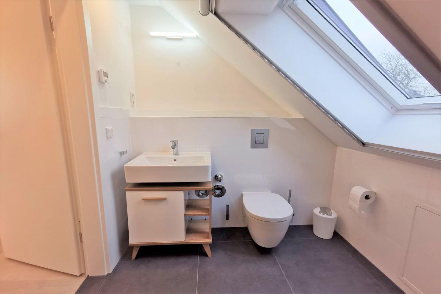 BAD // Badezimmer mit Tageslicht, Dusche, Waschtisch, WC und Föhn ++